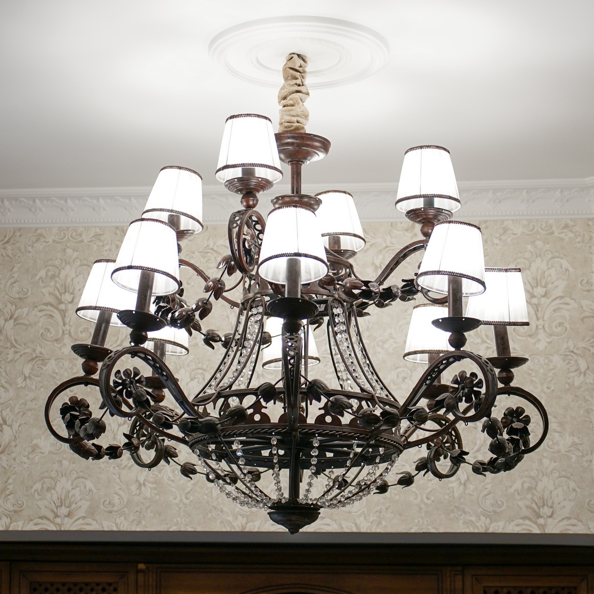 Кованая люстра в классическом стиле из металла с бронзовым патинированием