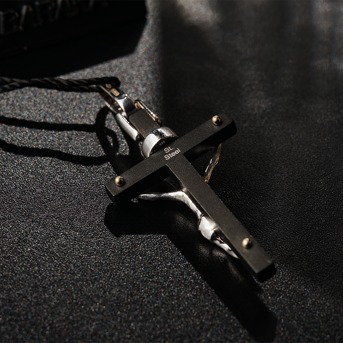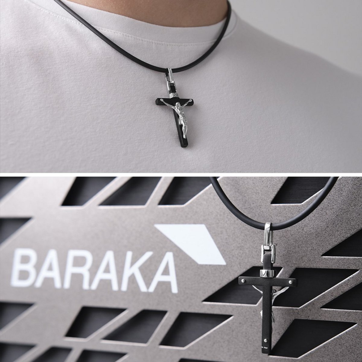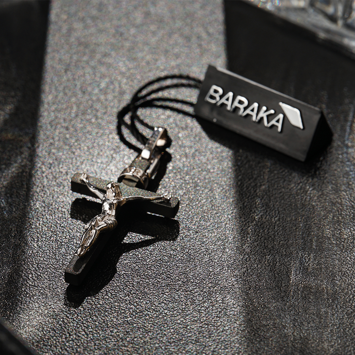 Крест Baraka Cyborg Ceramic из нержавеющей стали с черным PVD-покрытием и белым золотом