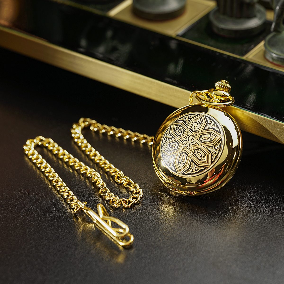 Карманные часы "Treasure" из дамасской стали и позолоты от бренда Anframa