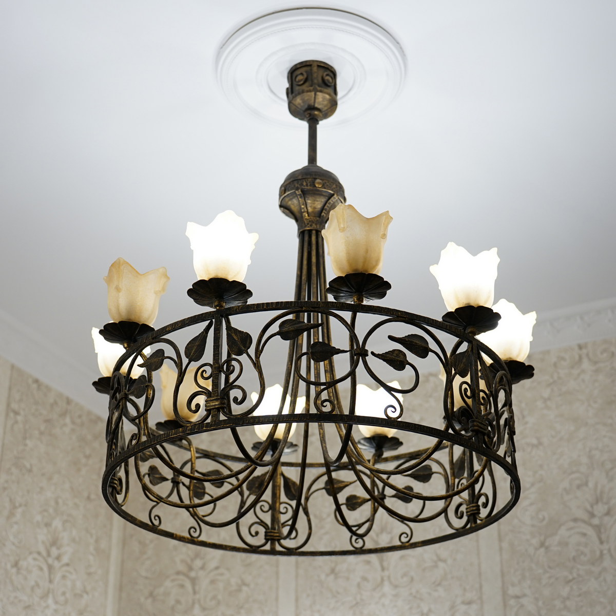 Люстра в классическом стиле из металла с художественной ковкой и декоративным патинированием