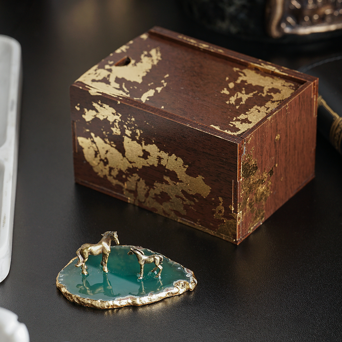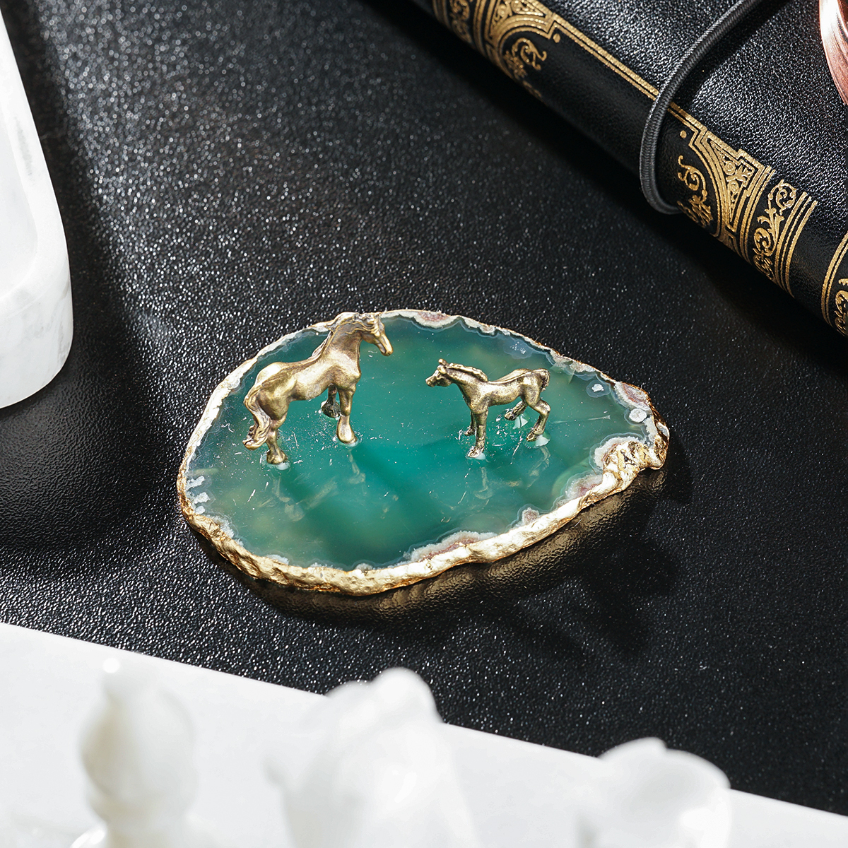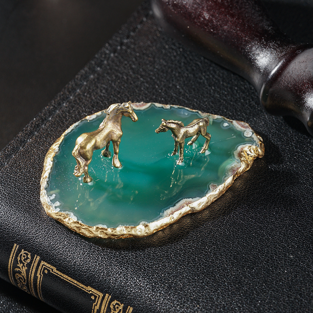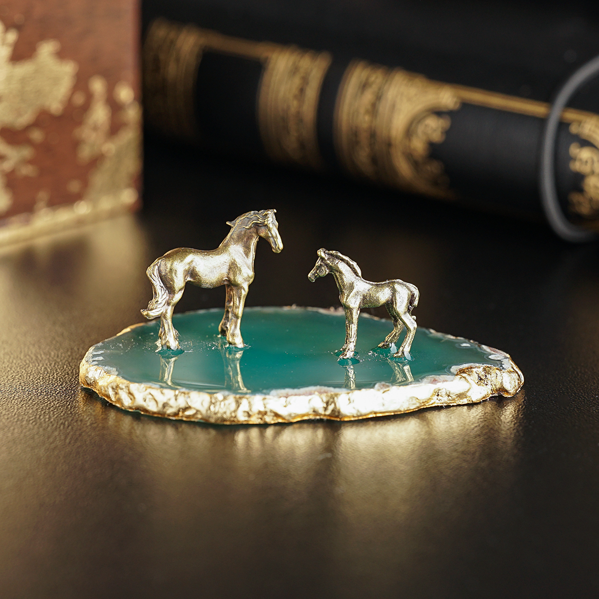 Миниатюра лошади на подставке из агата с золотой поталью "Breath of the wind" (зеленый)