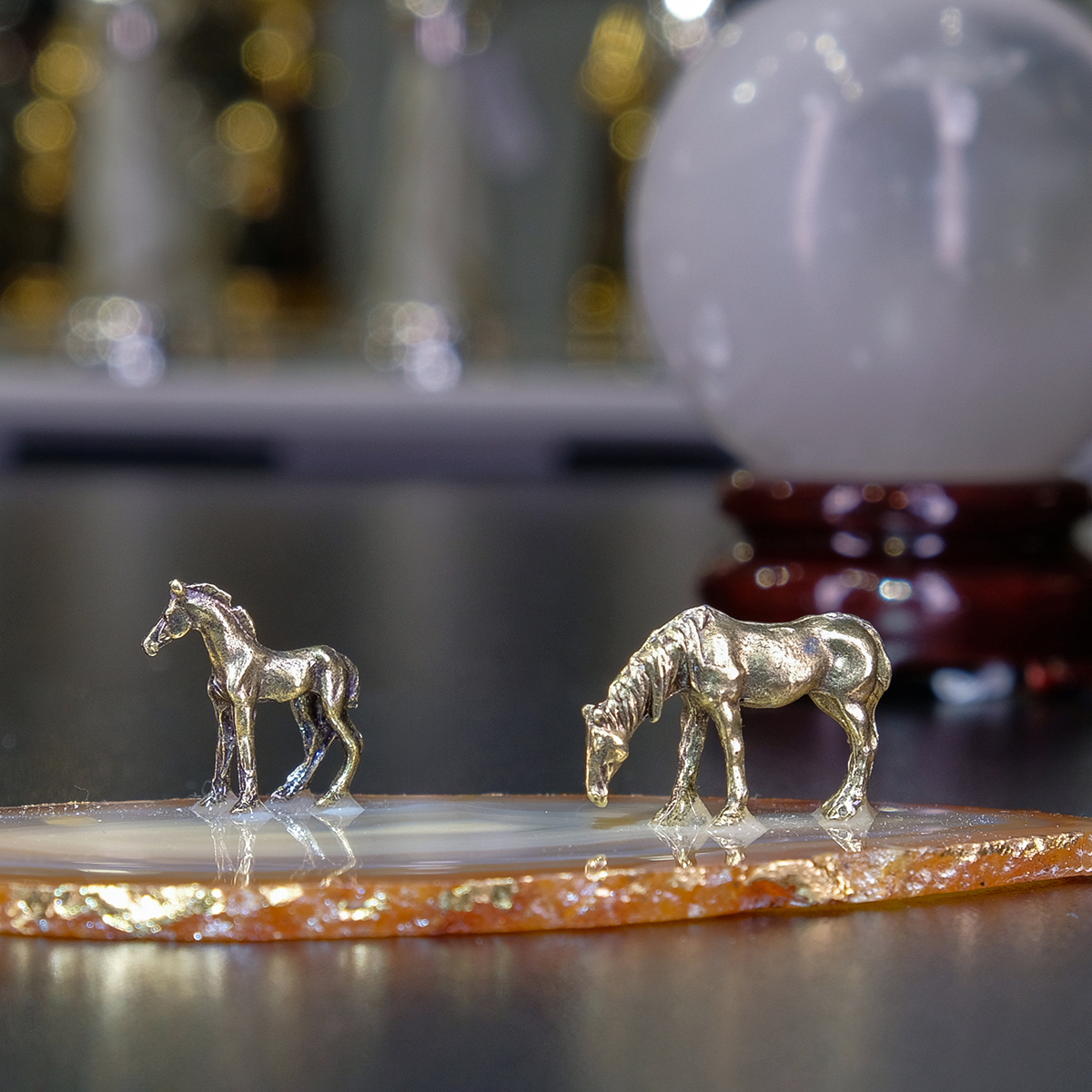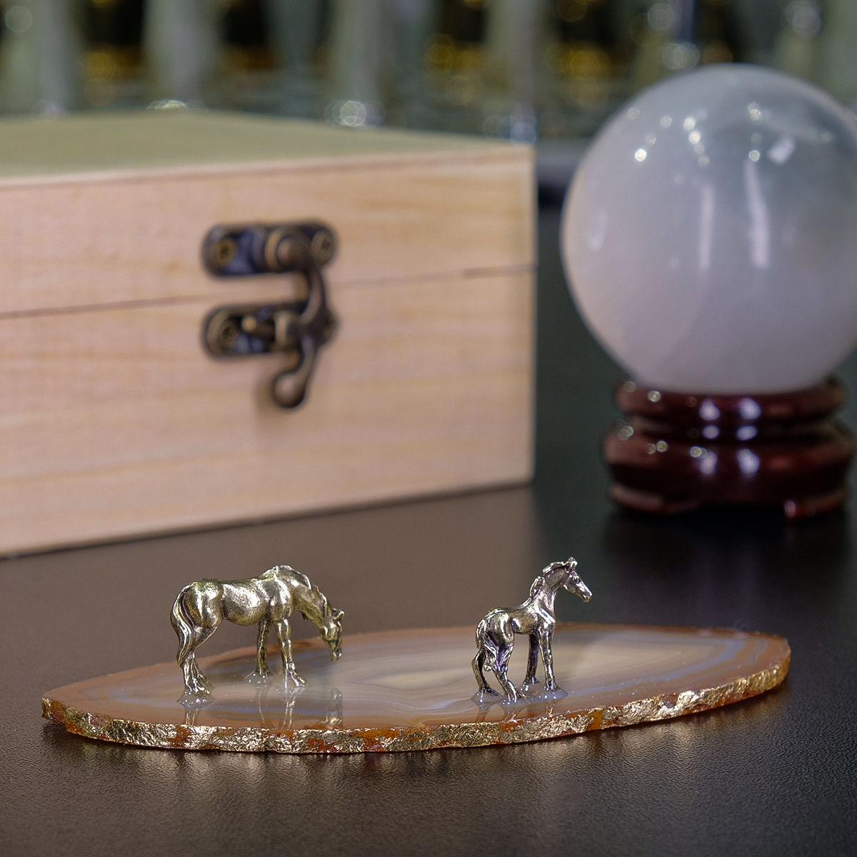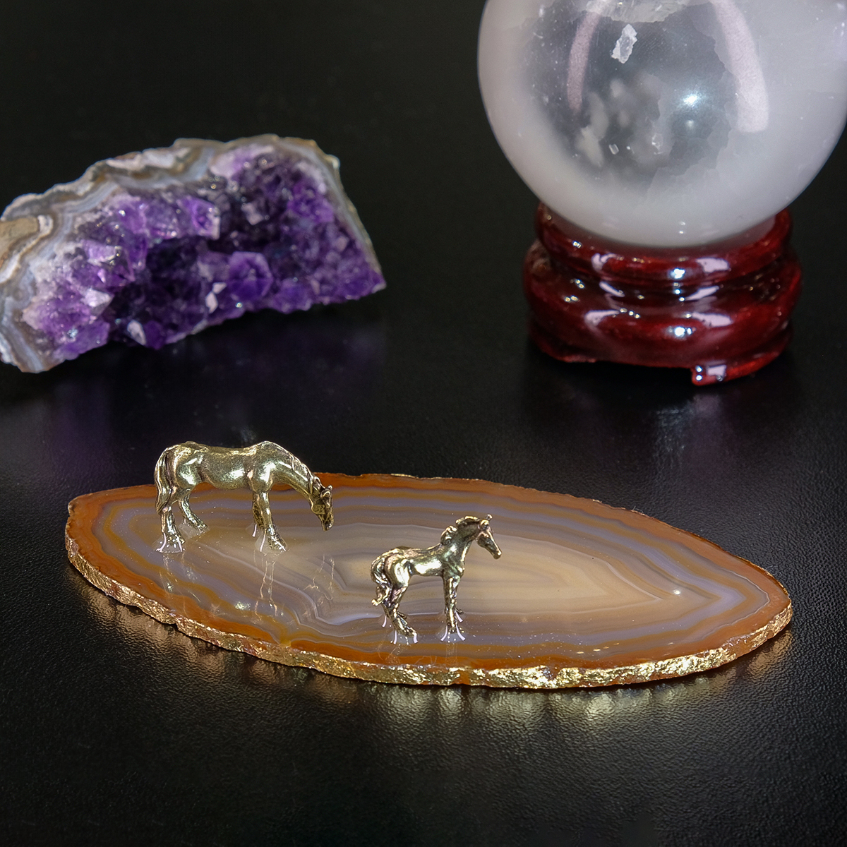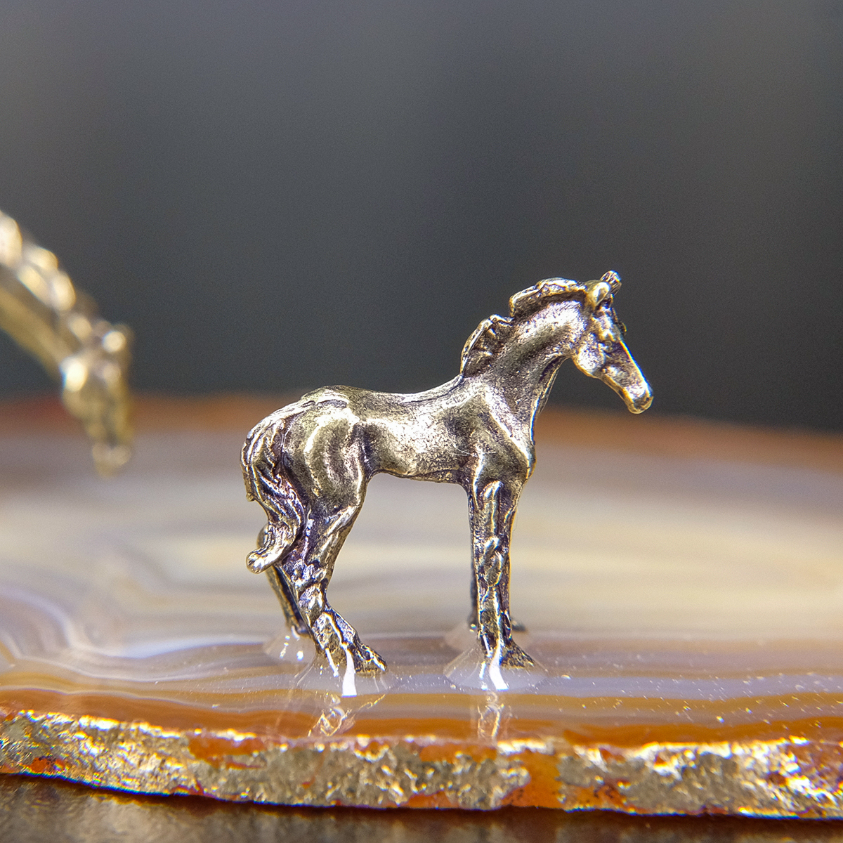 Миниатюра с двумя фигурками лошадей на подставке из агата с золотой талью "Line of movement" (медово-карамельный)