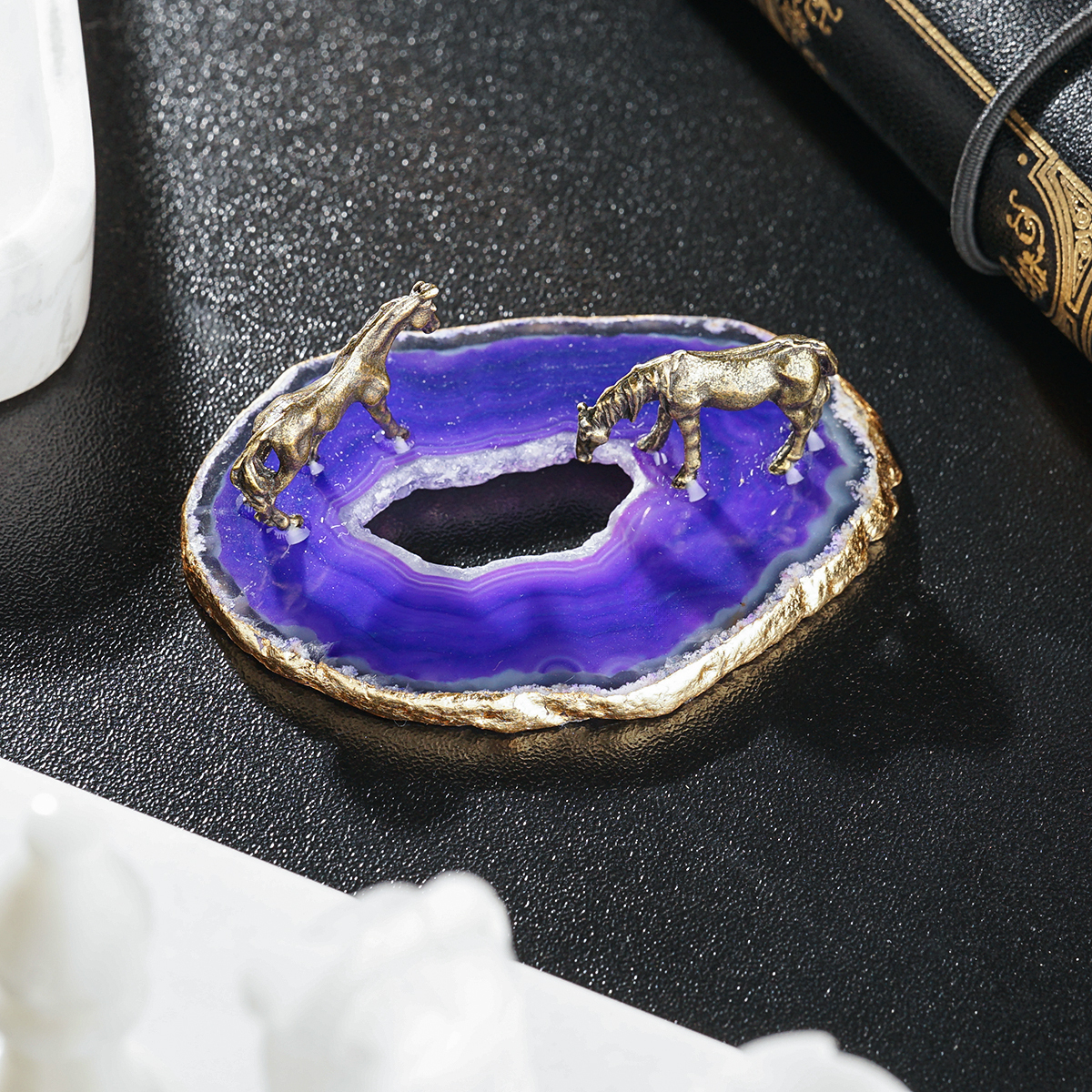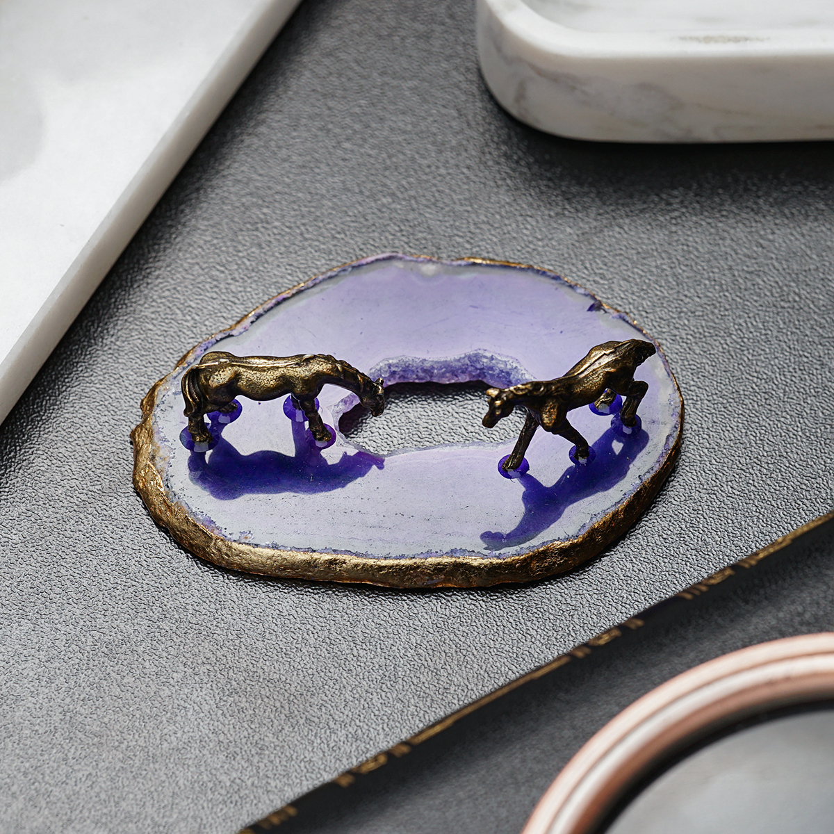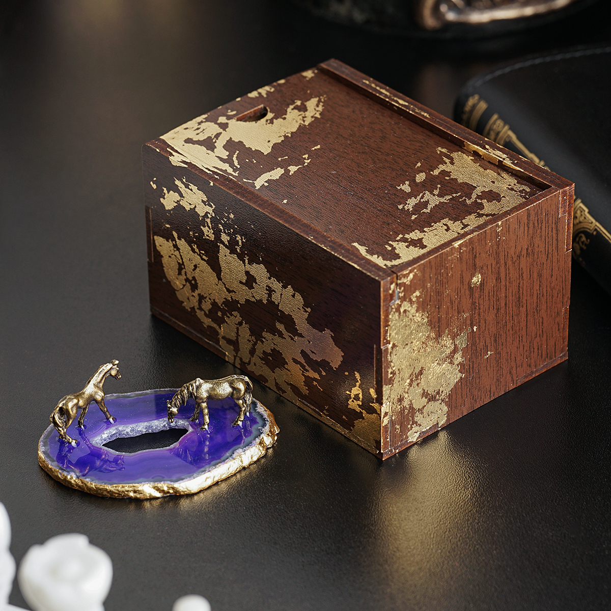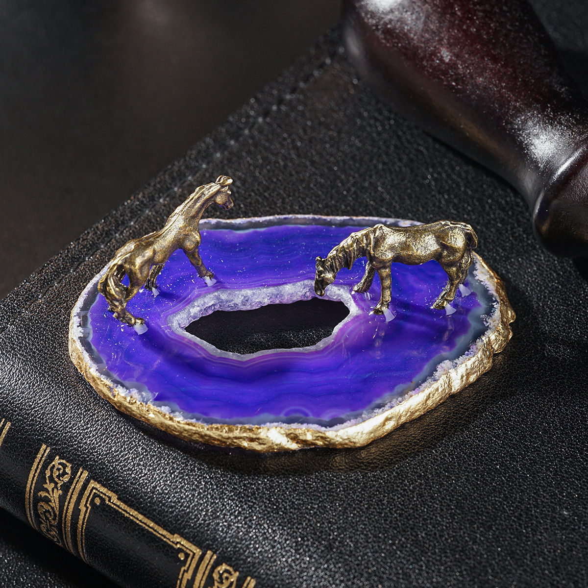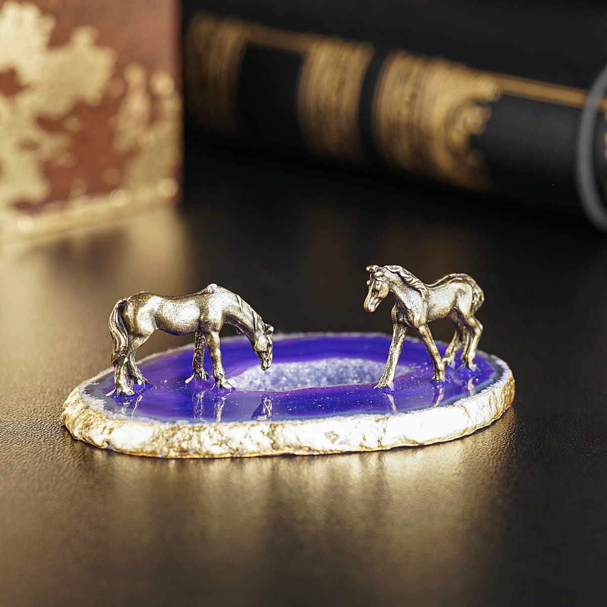 Миниатюра лошади на подставке из агата с золотой поталью "Breath of the wind" (темно-фиолетовый)