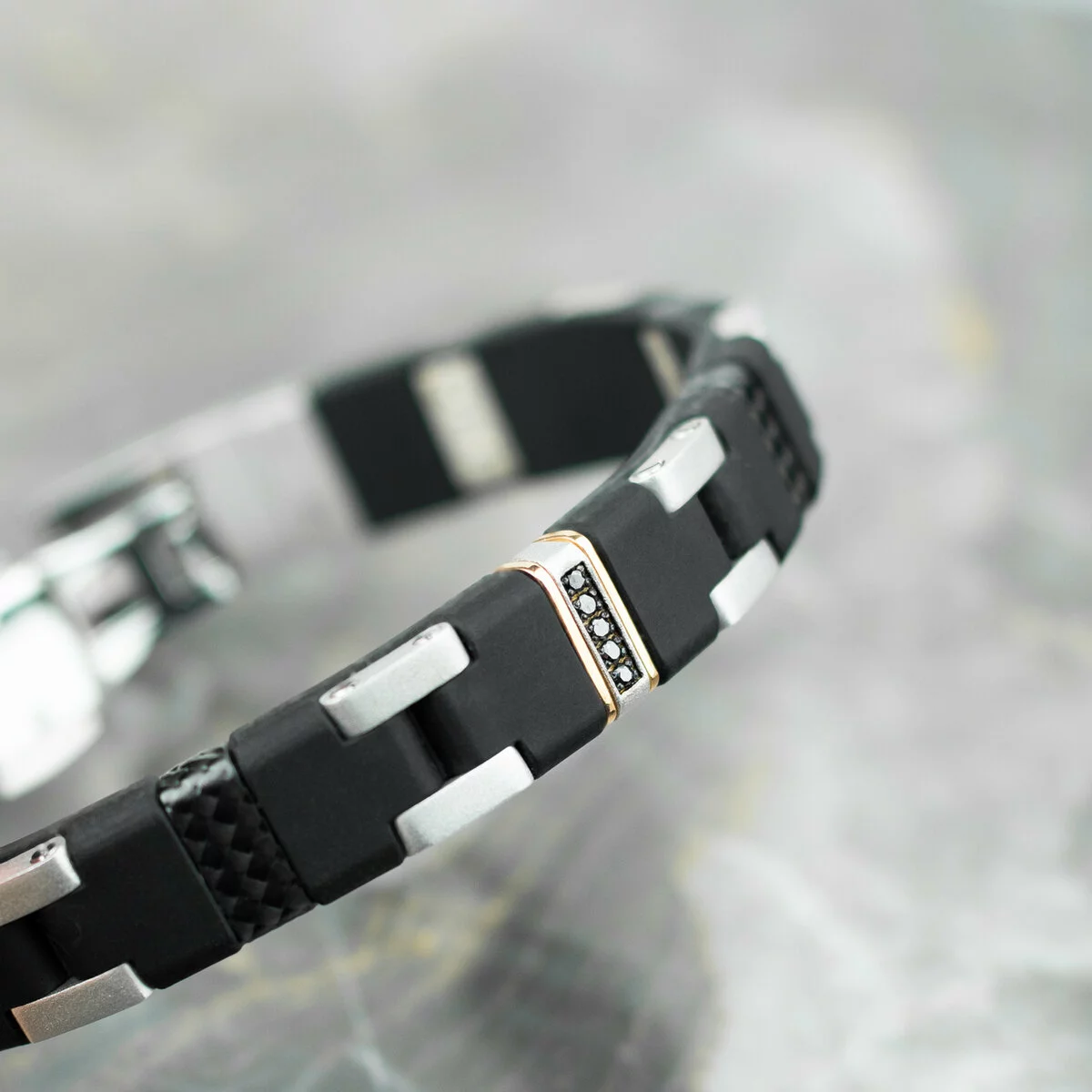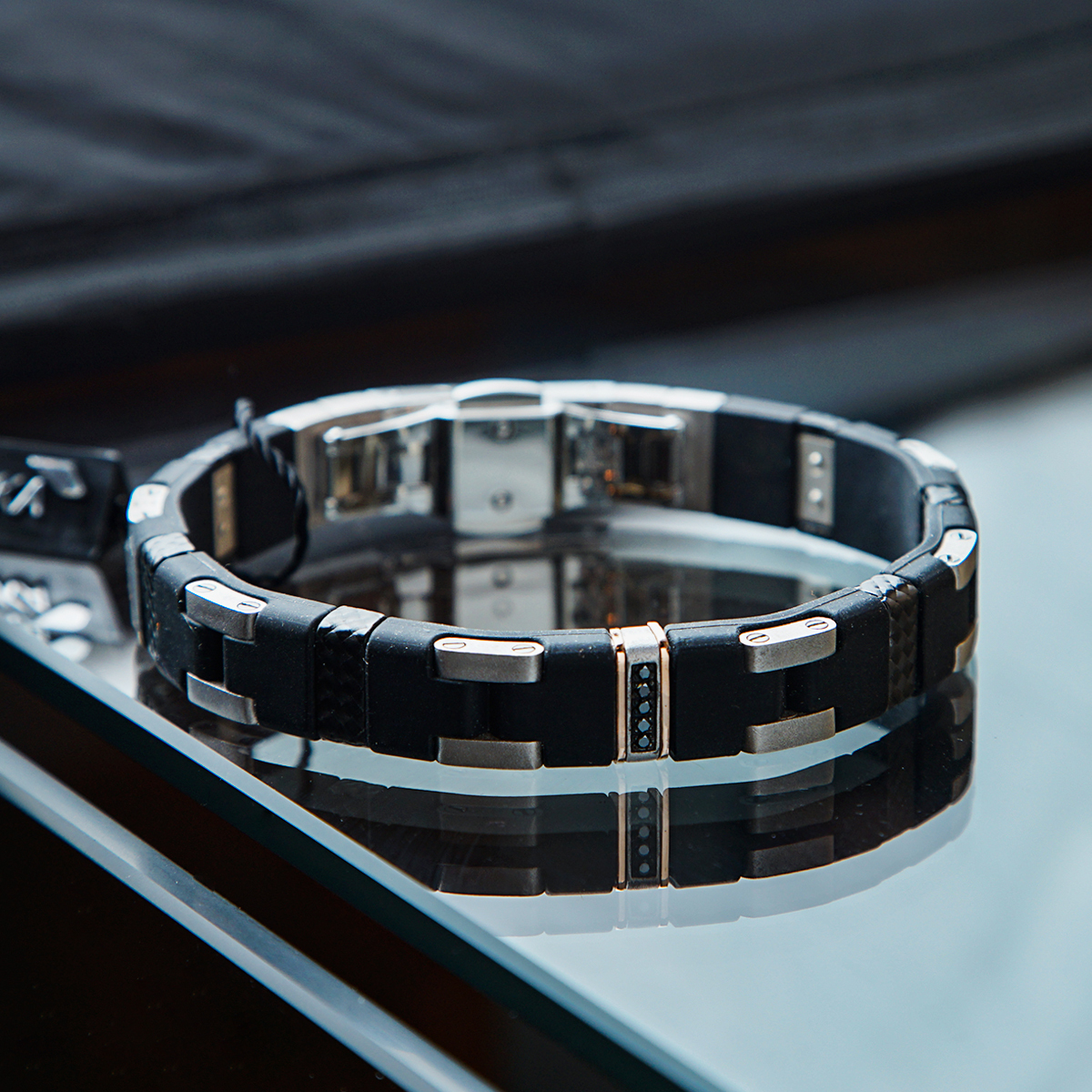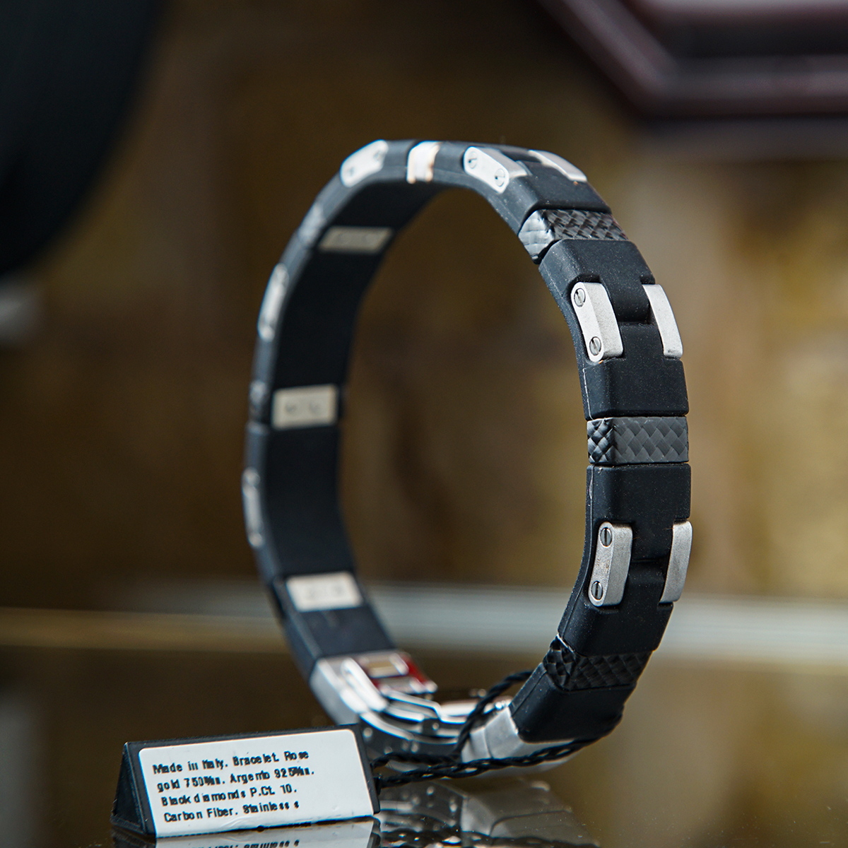 Мужской браслет с бриллиантами "Fiber" черные брилианты 0.10 карата (5 шт) от Baraka