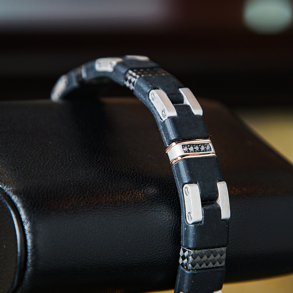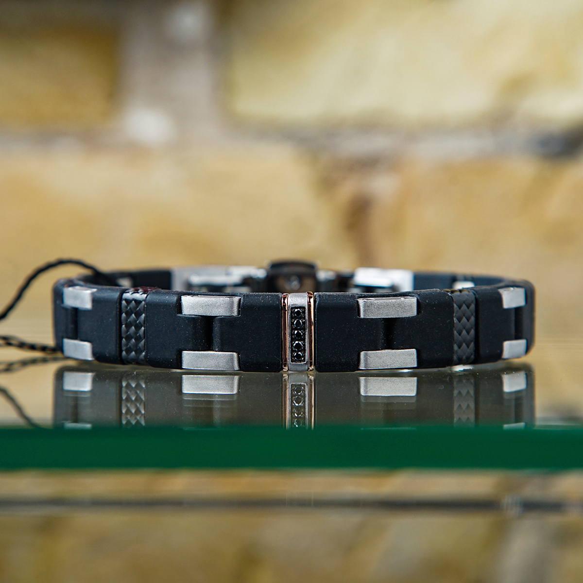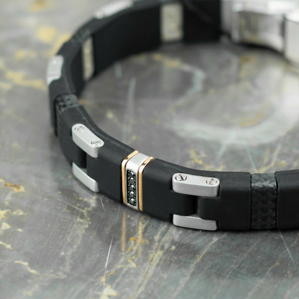 Мужской браслет с бриллиантами "Fiber" черные брилианты 0.10 карата (5 шт) от Baraka