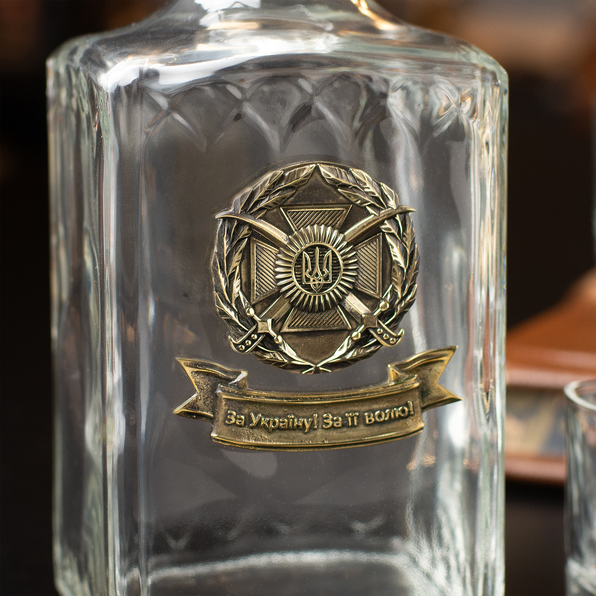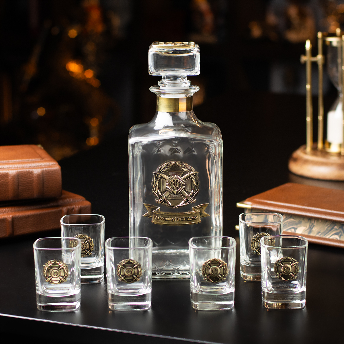 Набор для крепких напитков с символикой Сухопутных войск Вооруженных Сил Украины (штоф и 6 рюмок)