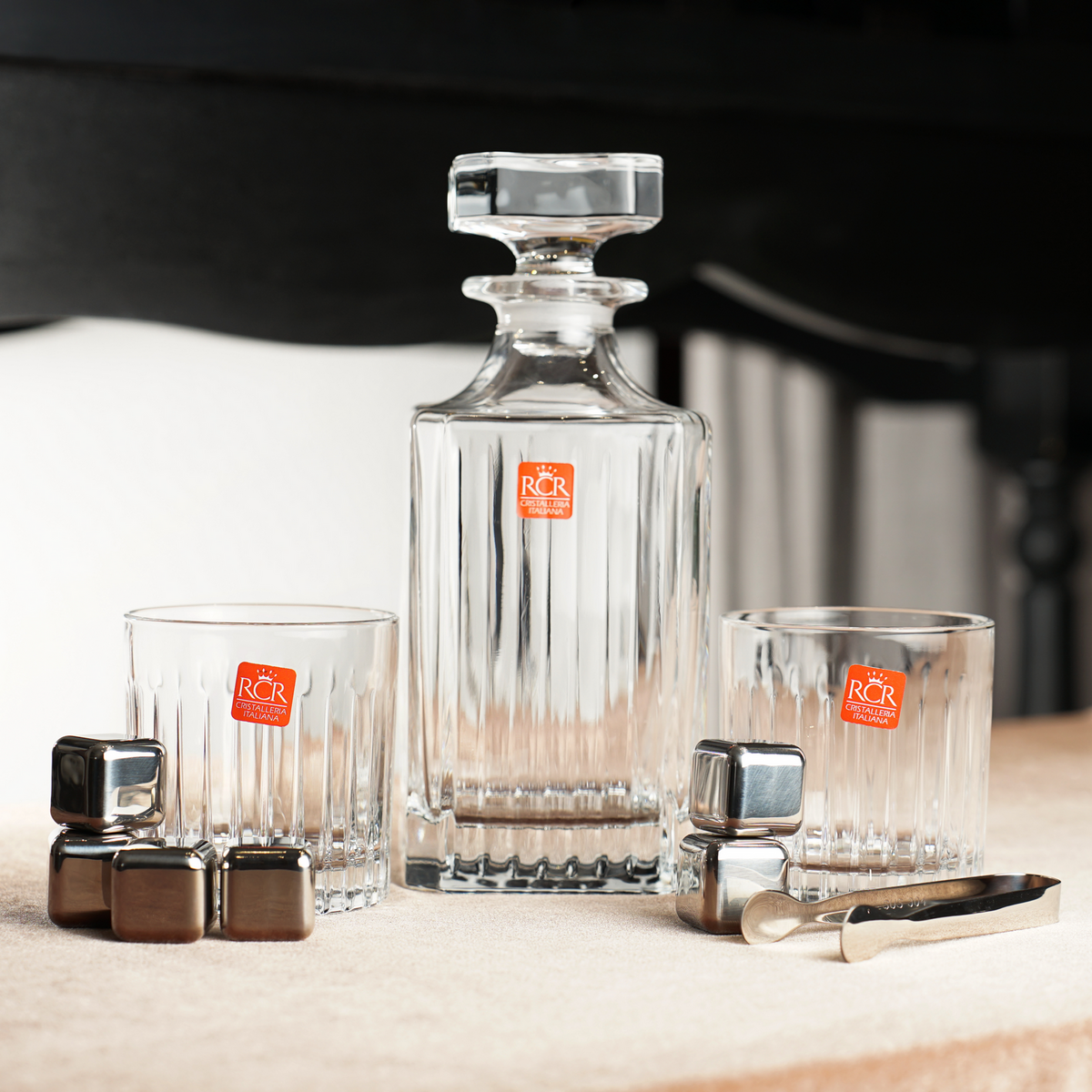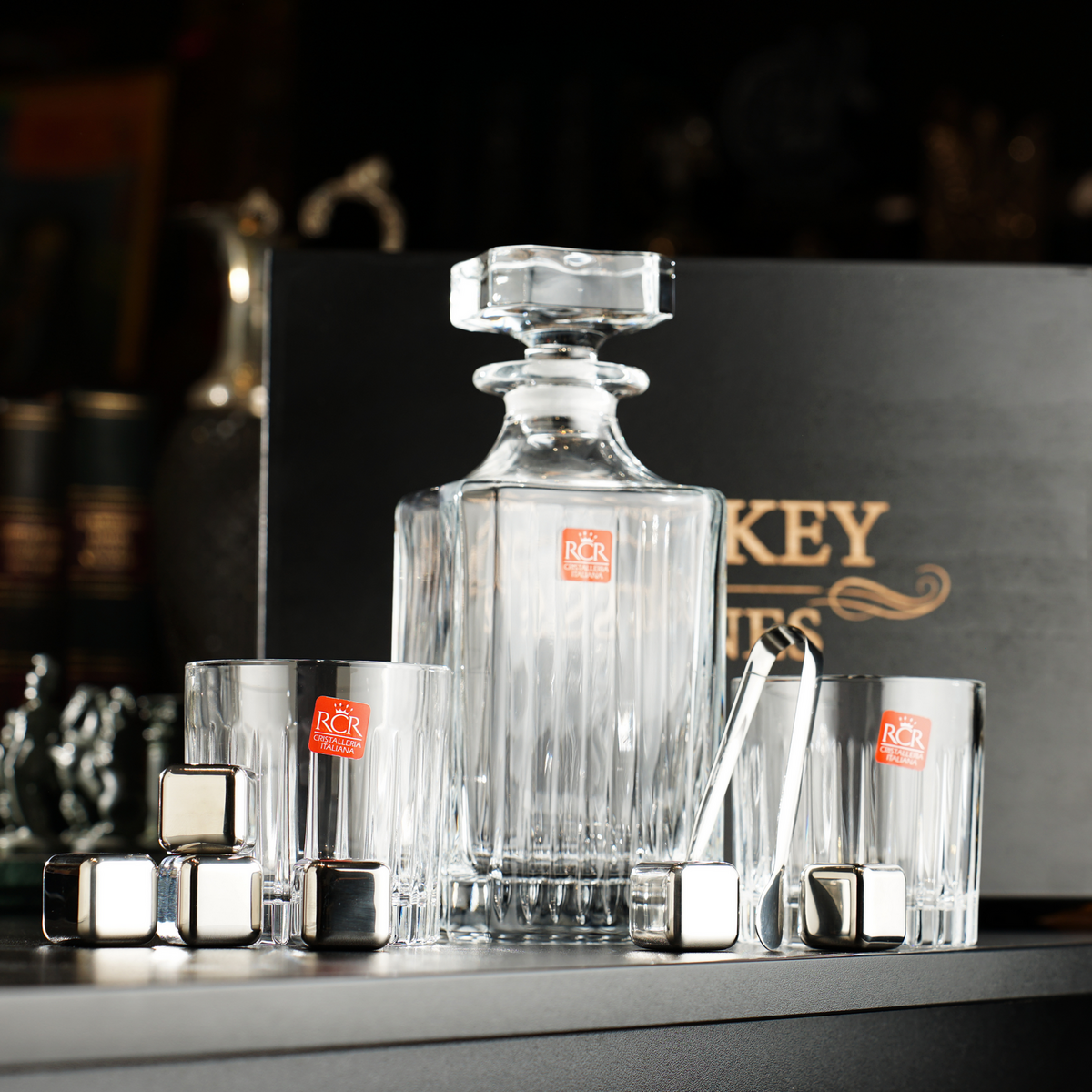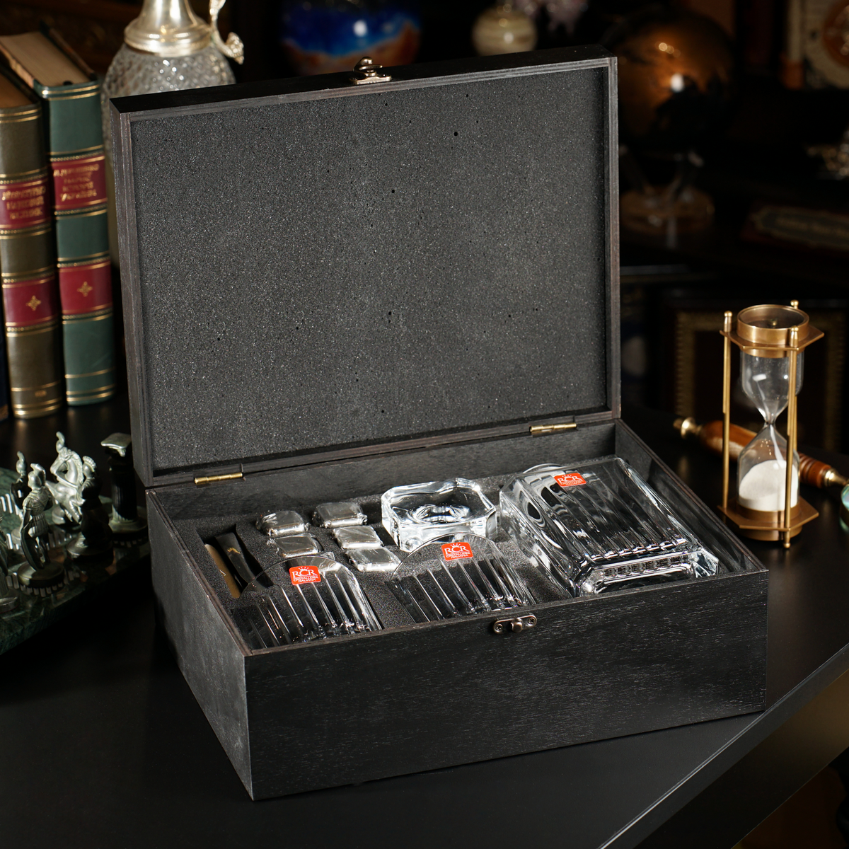 Набор для виски Blacky (2 бокала с гравировкой, 6 кубиков, декантер, щипцы для льда) в деревянной коробке