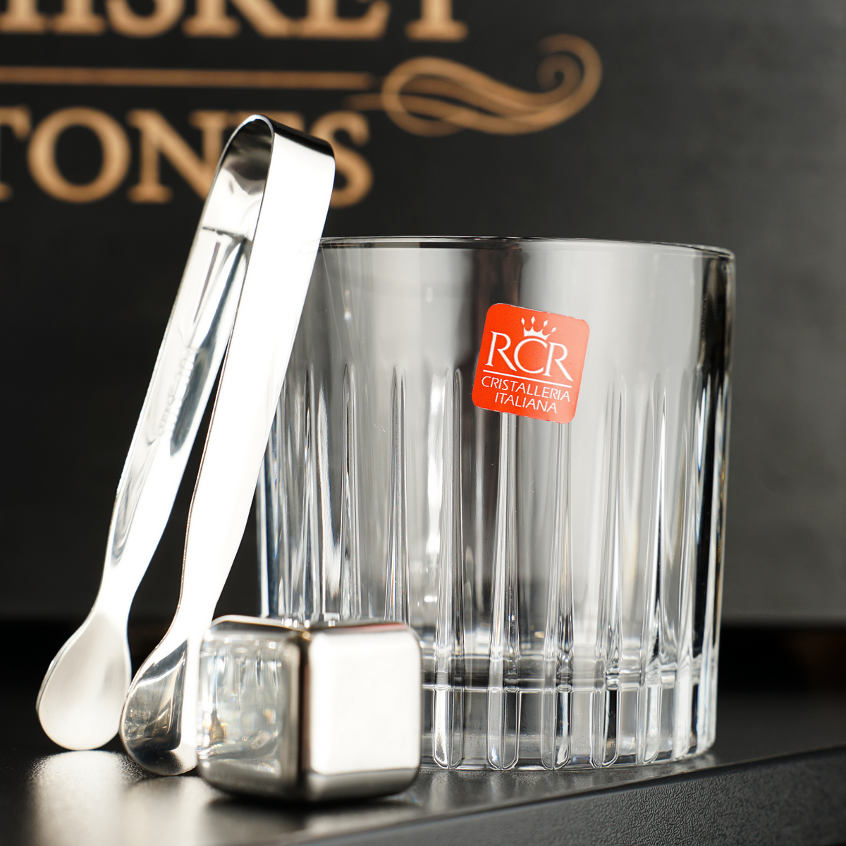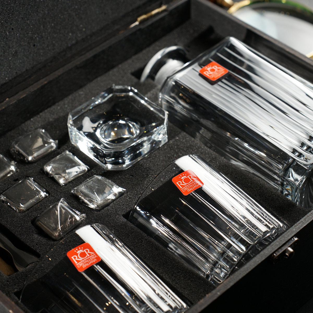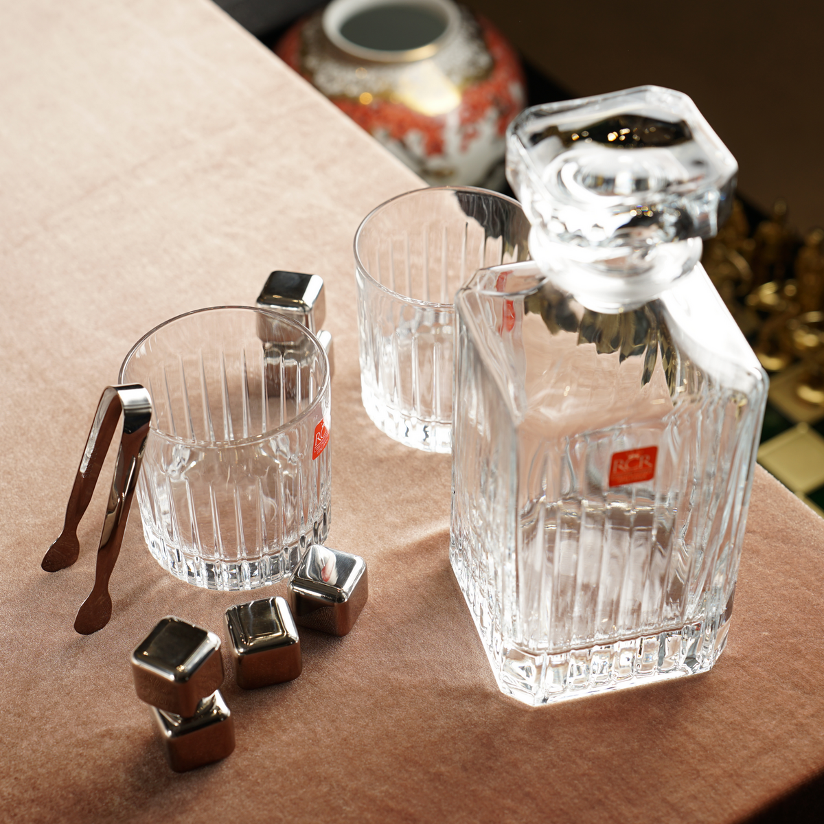 Набор для виски Blacky (2 бокала с гравировкой, 6 кубиков, декантер, щипцы для льда) в деревянной коробке