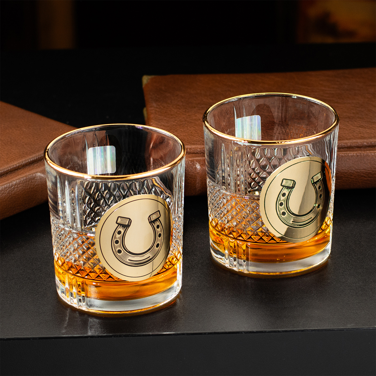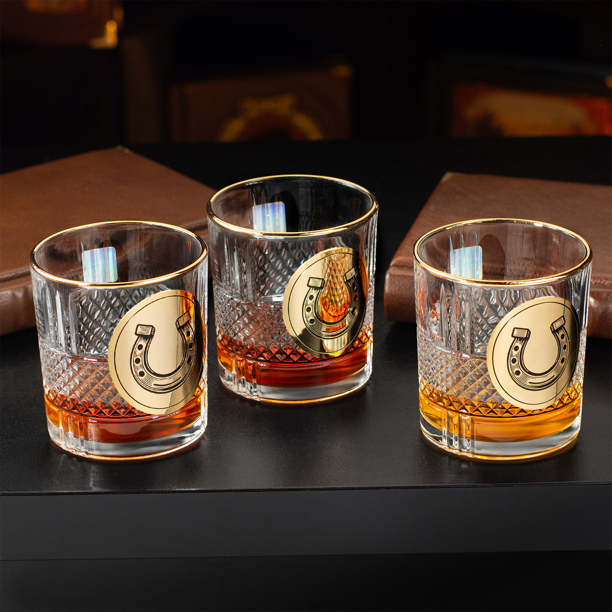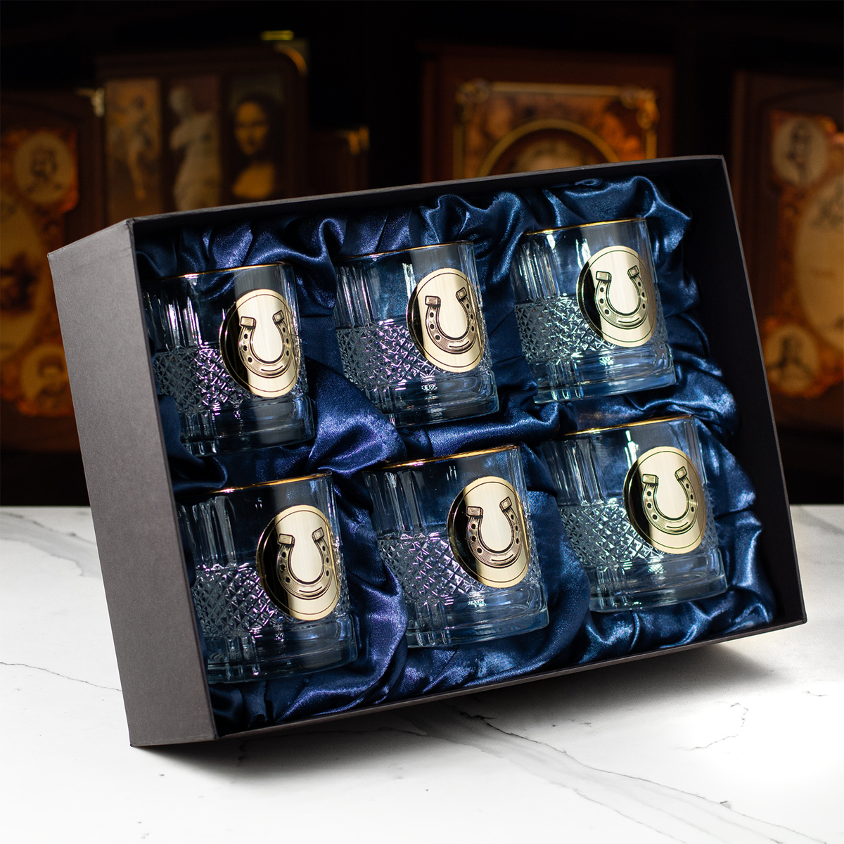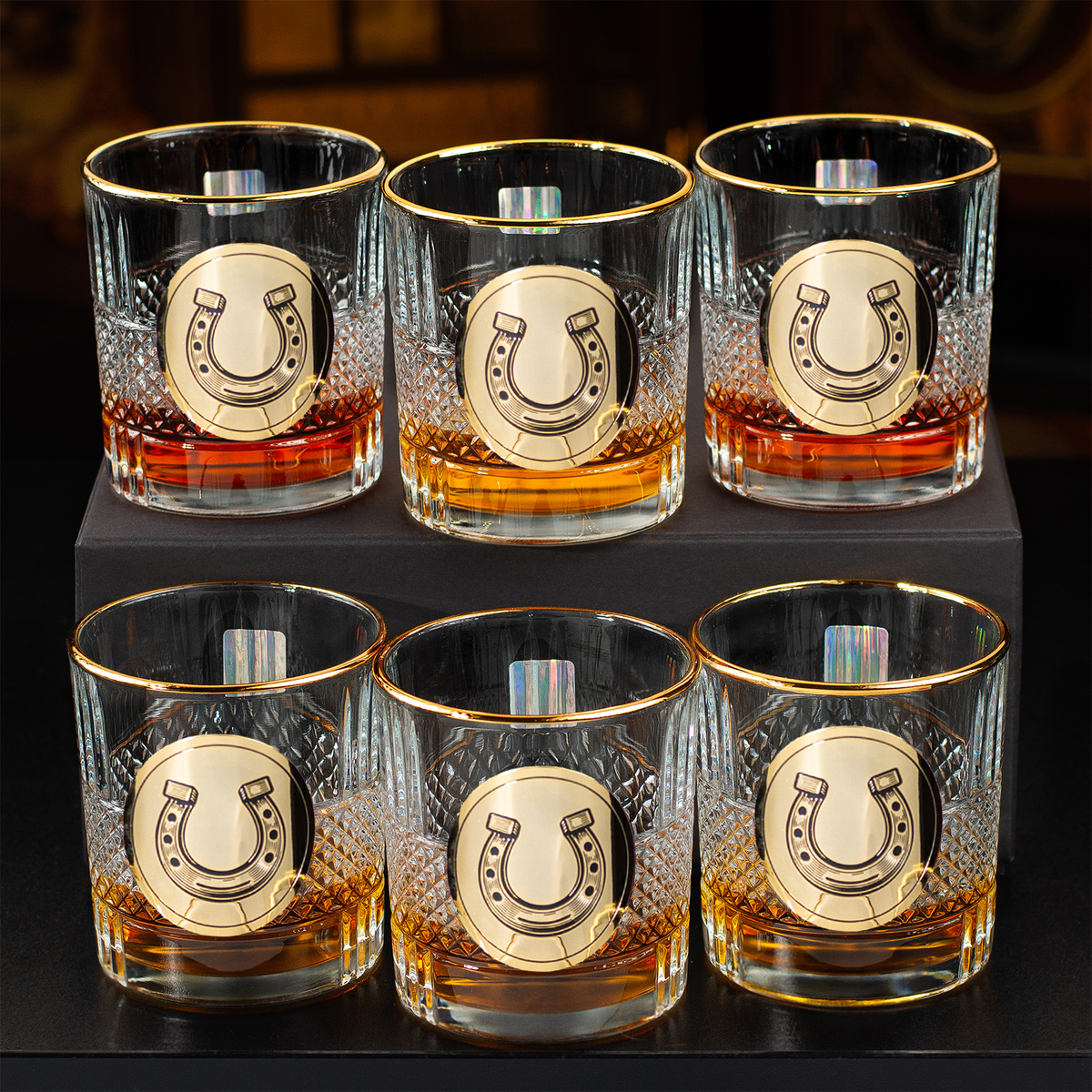 Набор для виски "Horseshoe of luck" из 6 хрустальных стаканов с позолотой и эмалями от BIANCANEVE