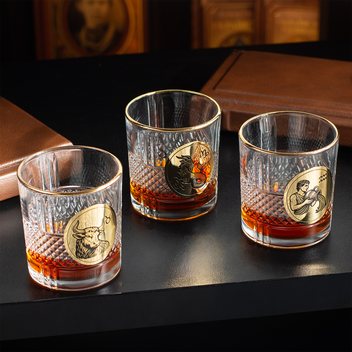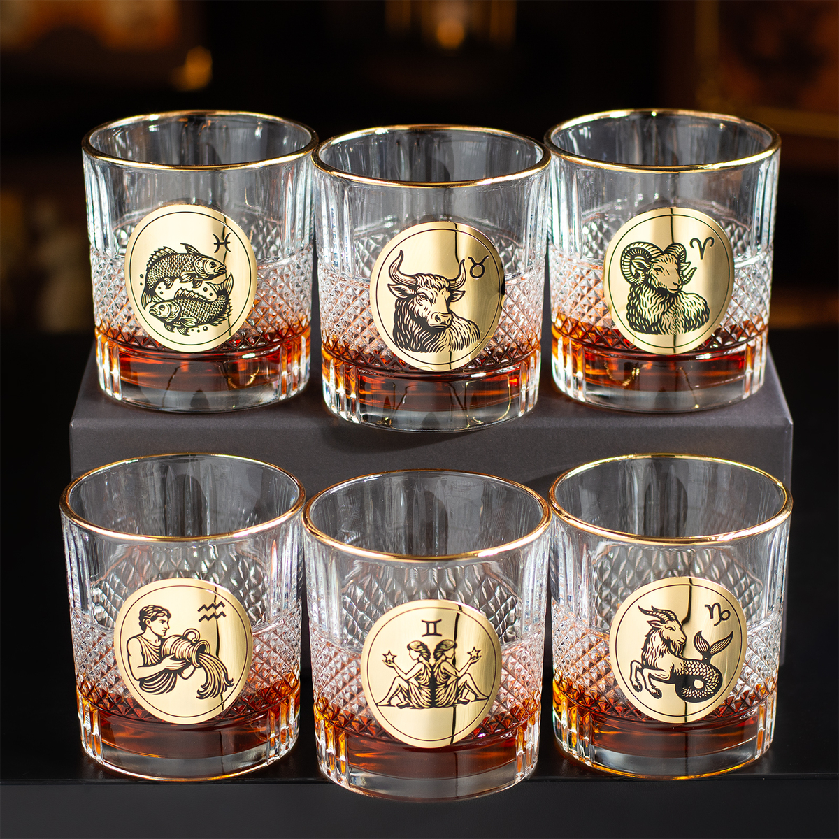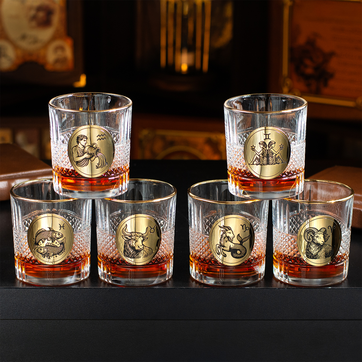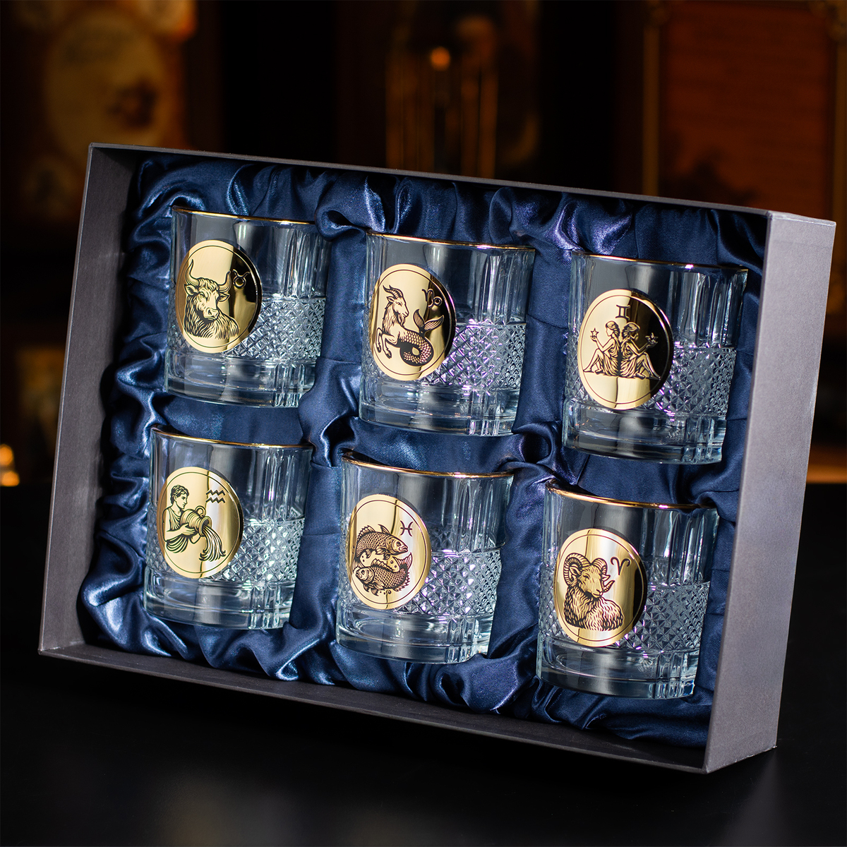 Набор для виски из 6 хрустальных стаканов с позолотой и эмалями «Знаки Зодиака. Первое полугодие» от BIANCANEVE