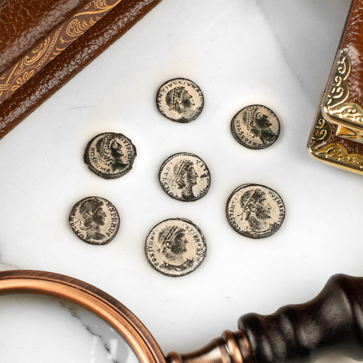 Набор из 7 бронзовых монет поздней Римской империи, 330-350 годы н.э. (копии)