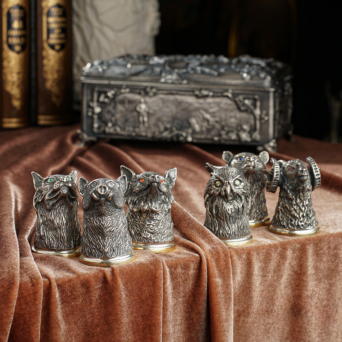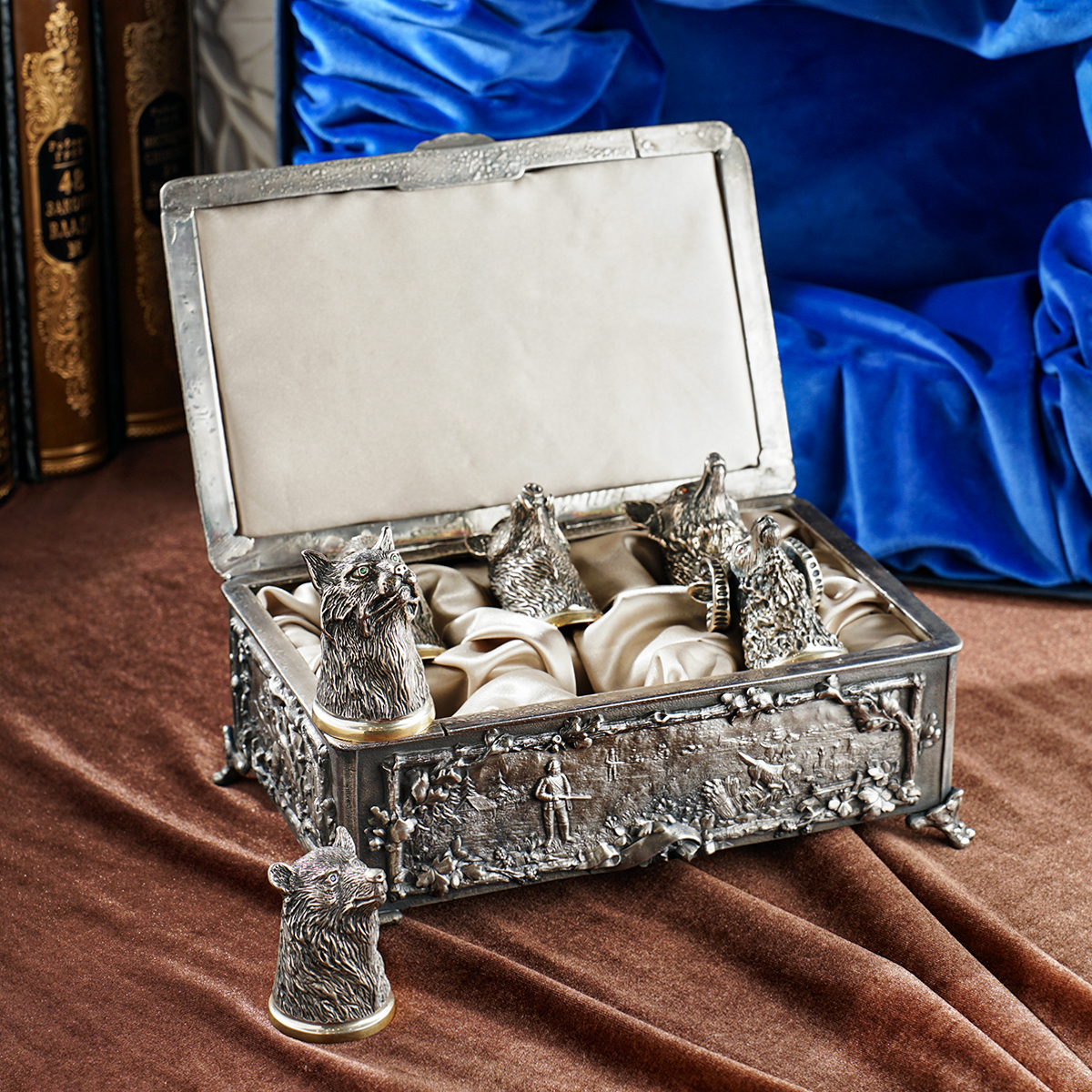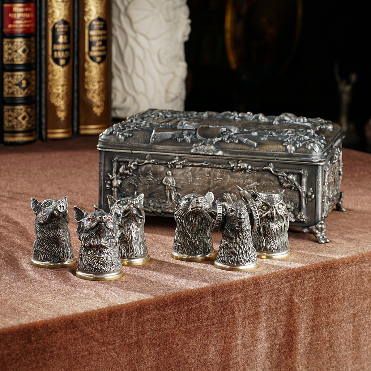 Набор "Охотничий Трофей" из серебряного ларца с ритонами от Ювелирного Дома Андрея Ковалика