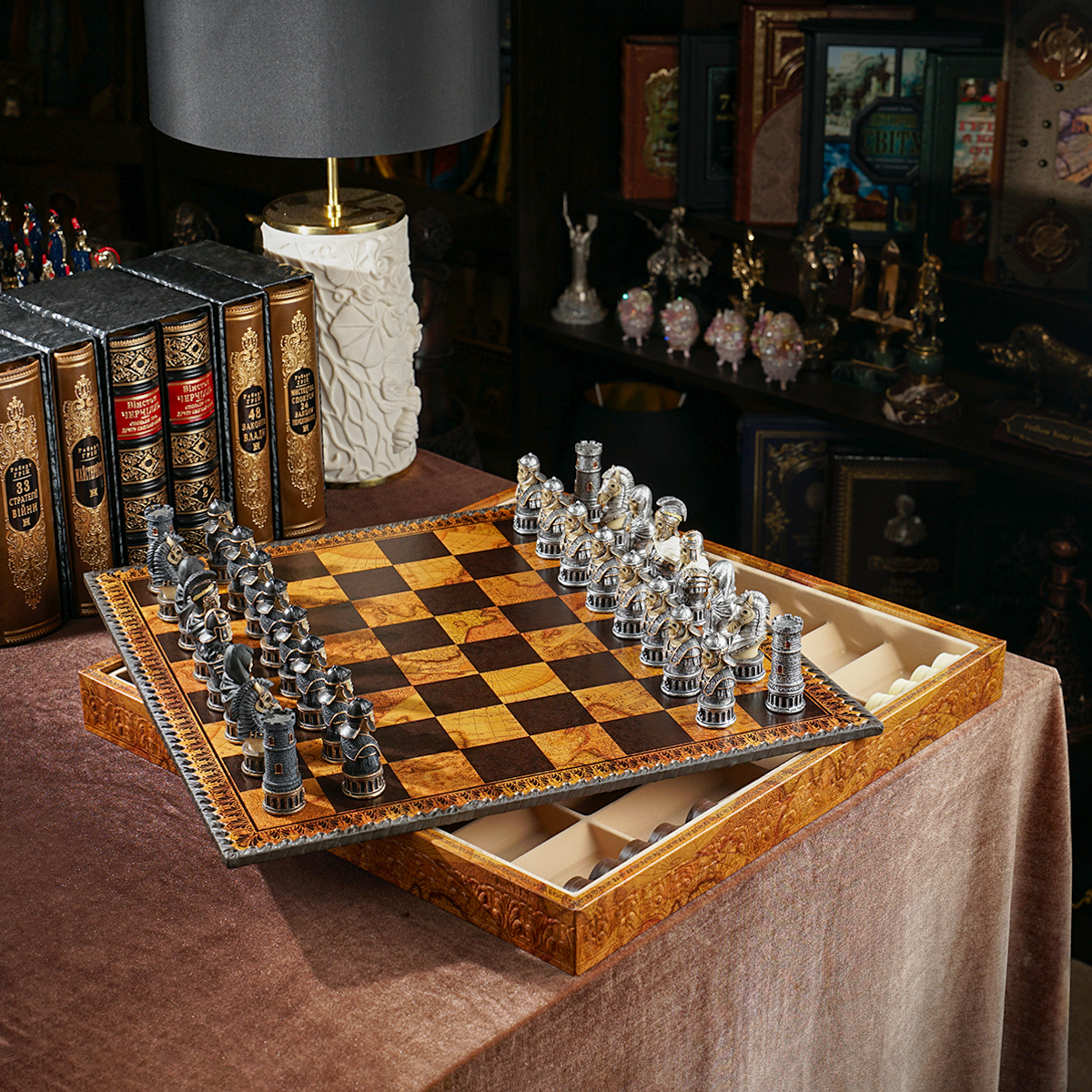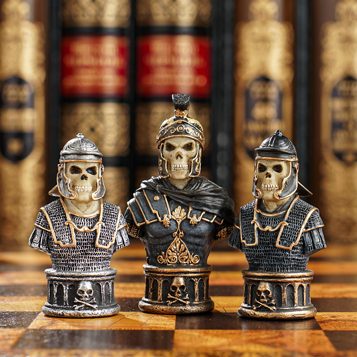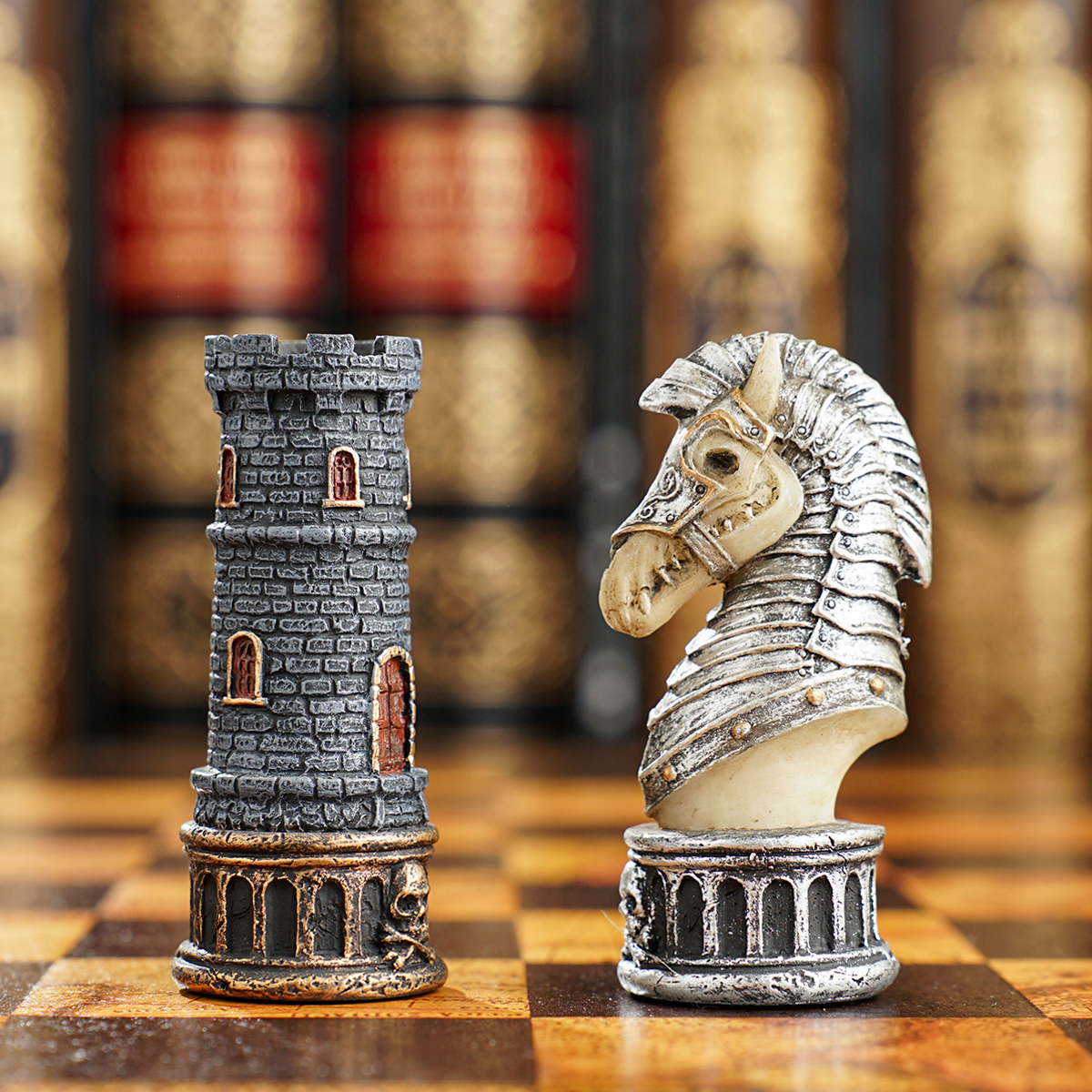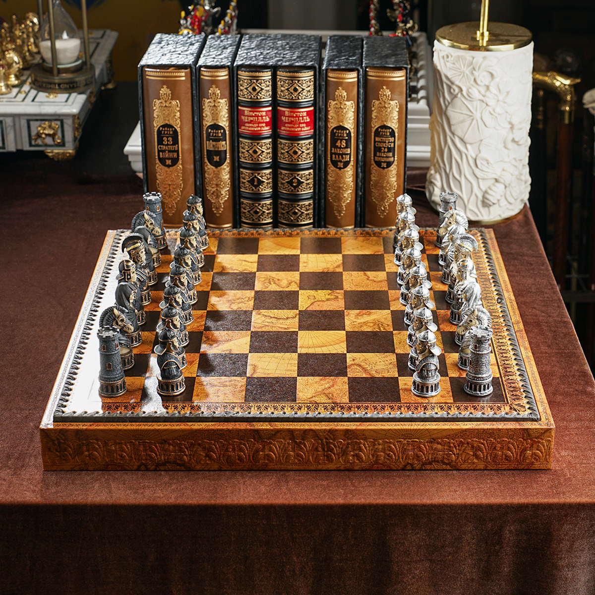 Набор ручной работы "Maneuver" с доской 3 в 1 для шахмат, нардов и шашек из кожзама и фигурками из смолы от Italfama