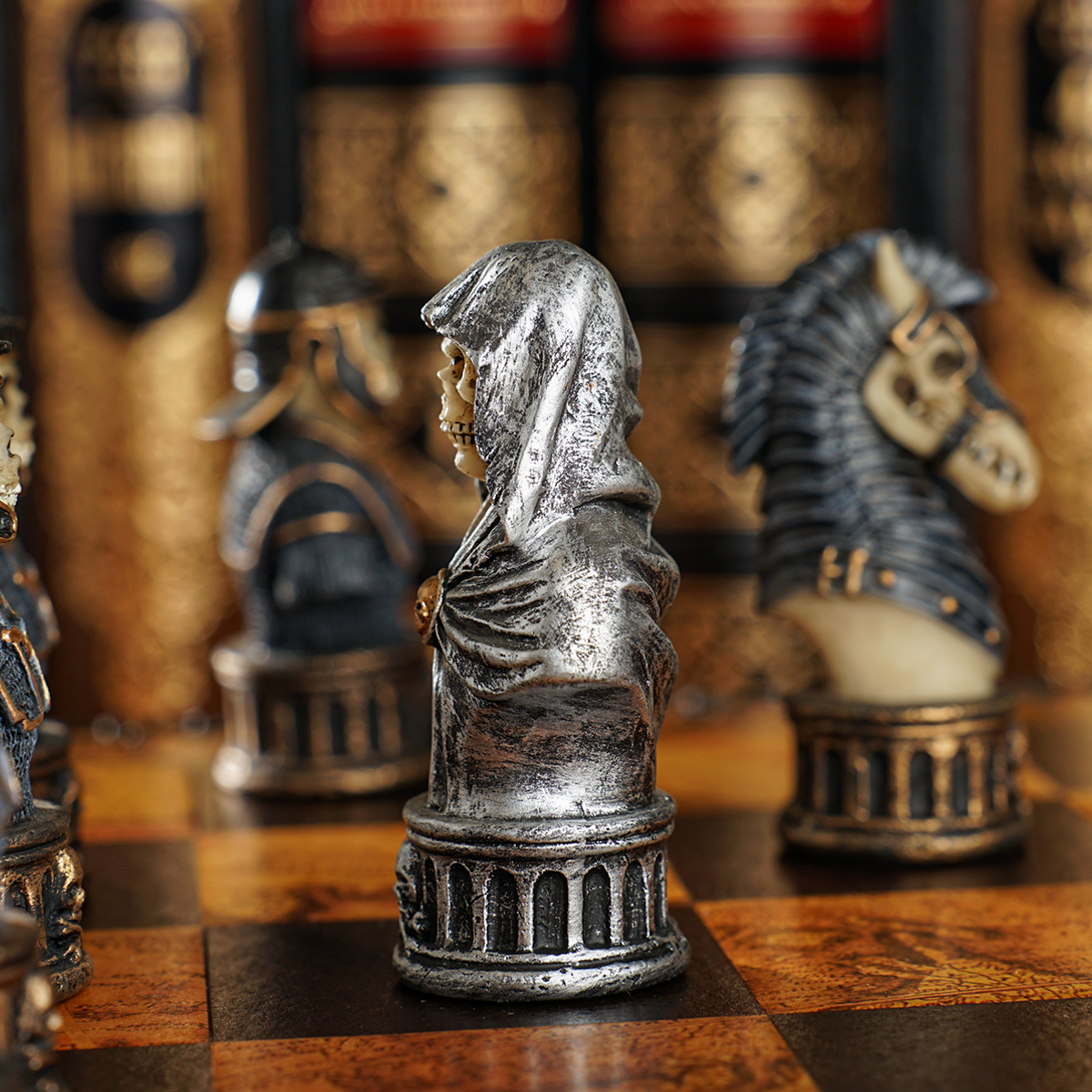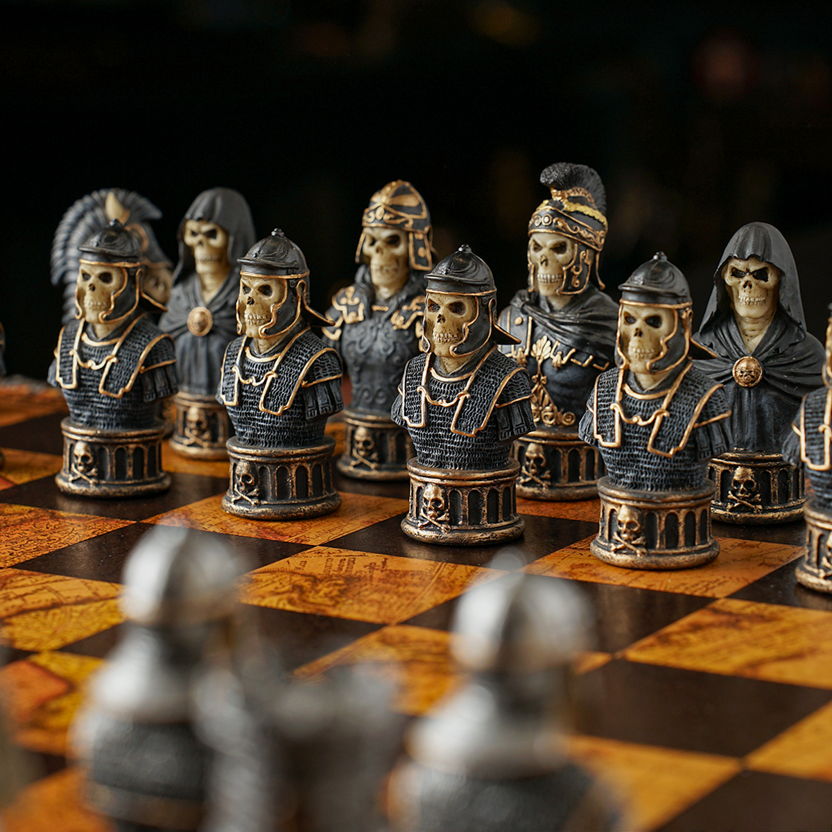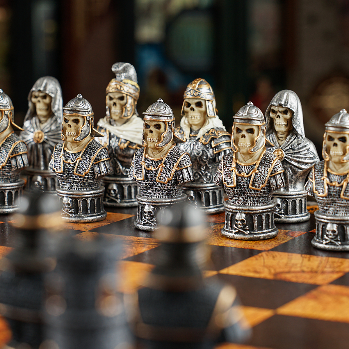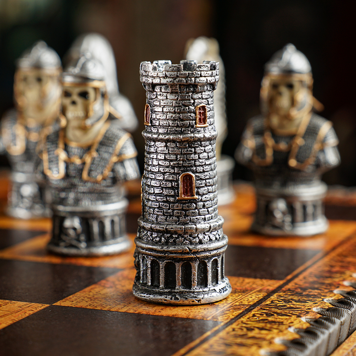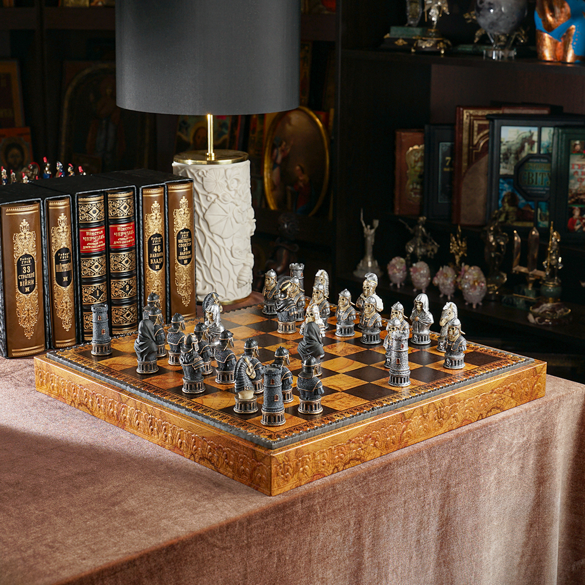 Набор ручной работы "Maneuver" с доской 3 в 1 для шахмат, нардов и шашек из кожзама и фигурками из смолы от Italfama