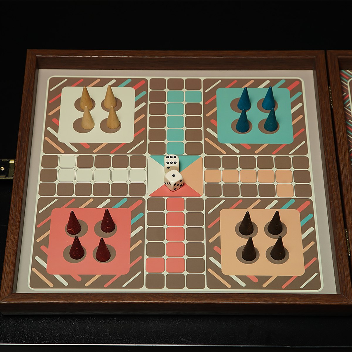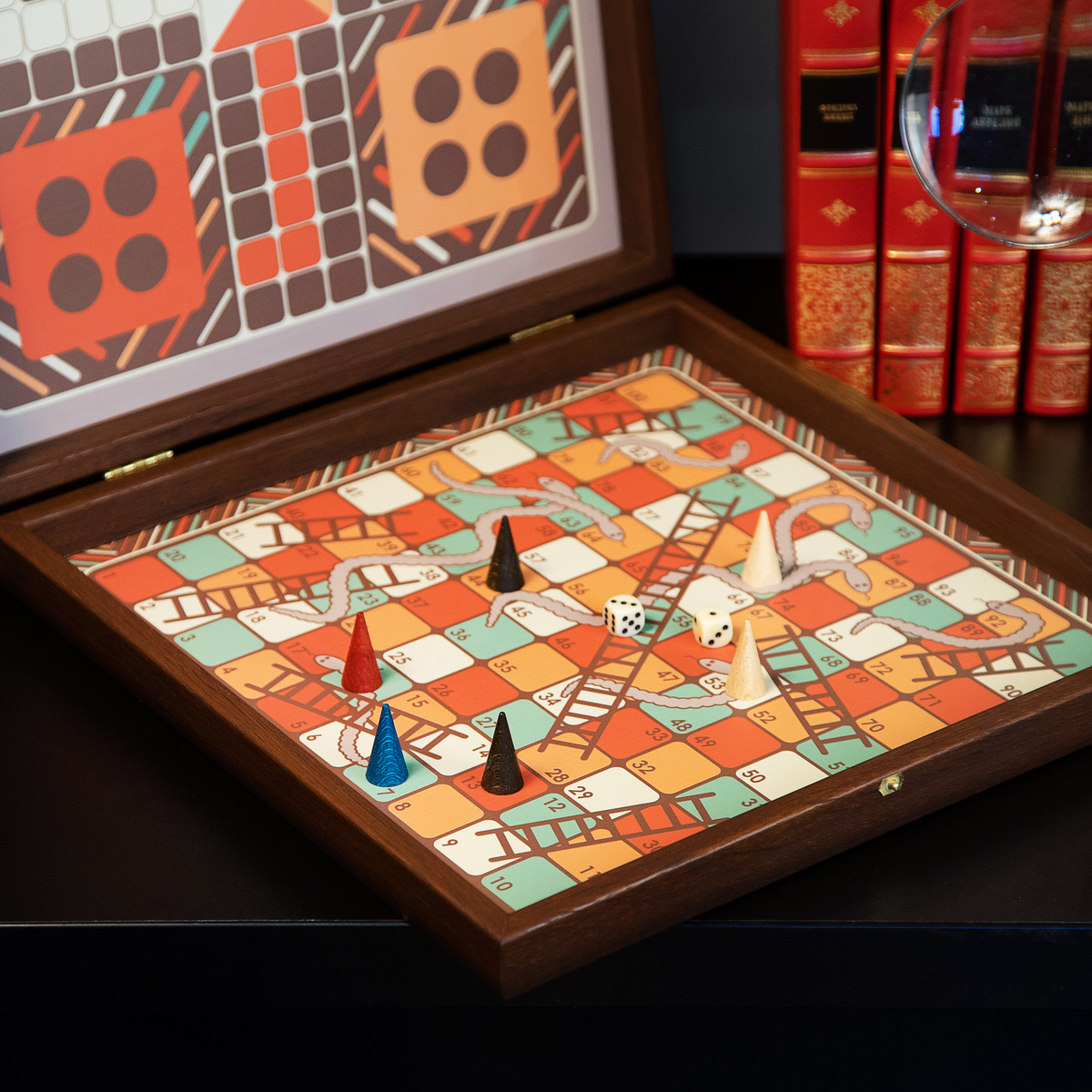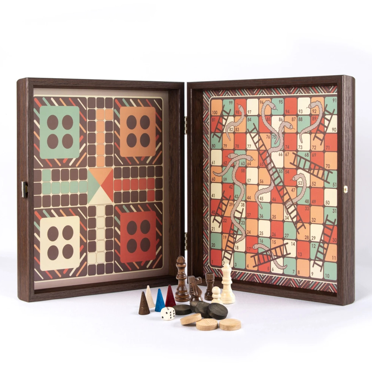 Набор настольных игр 4 в 1 (шахматы, нарды, лудо, змеи и лестницы) в винтажном стиле
