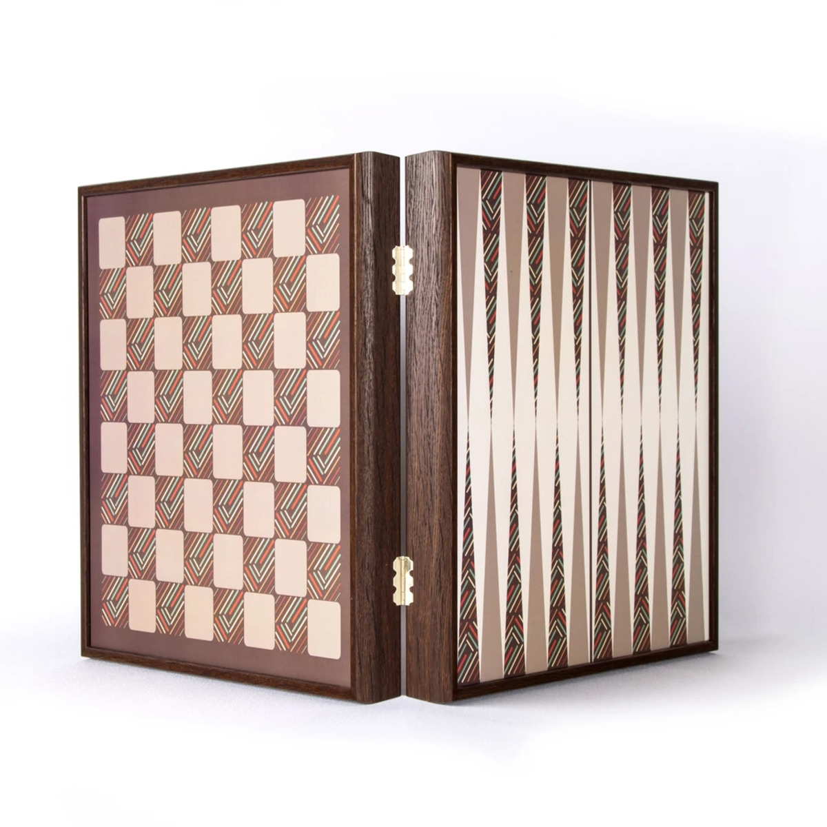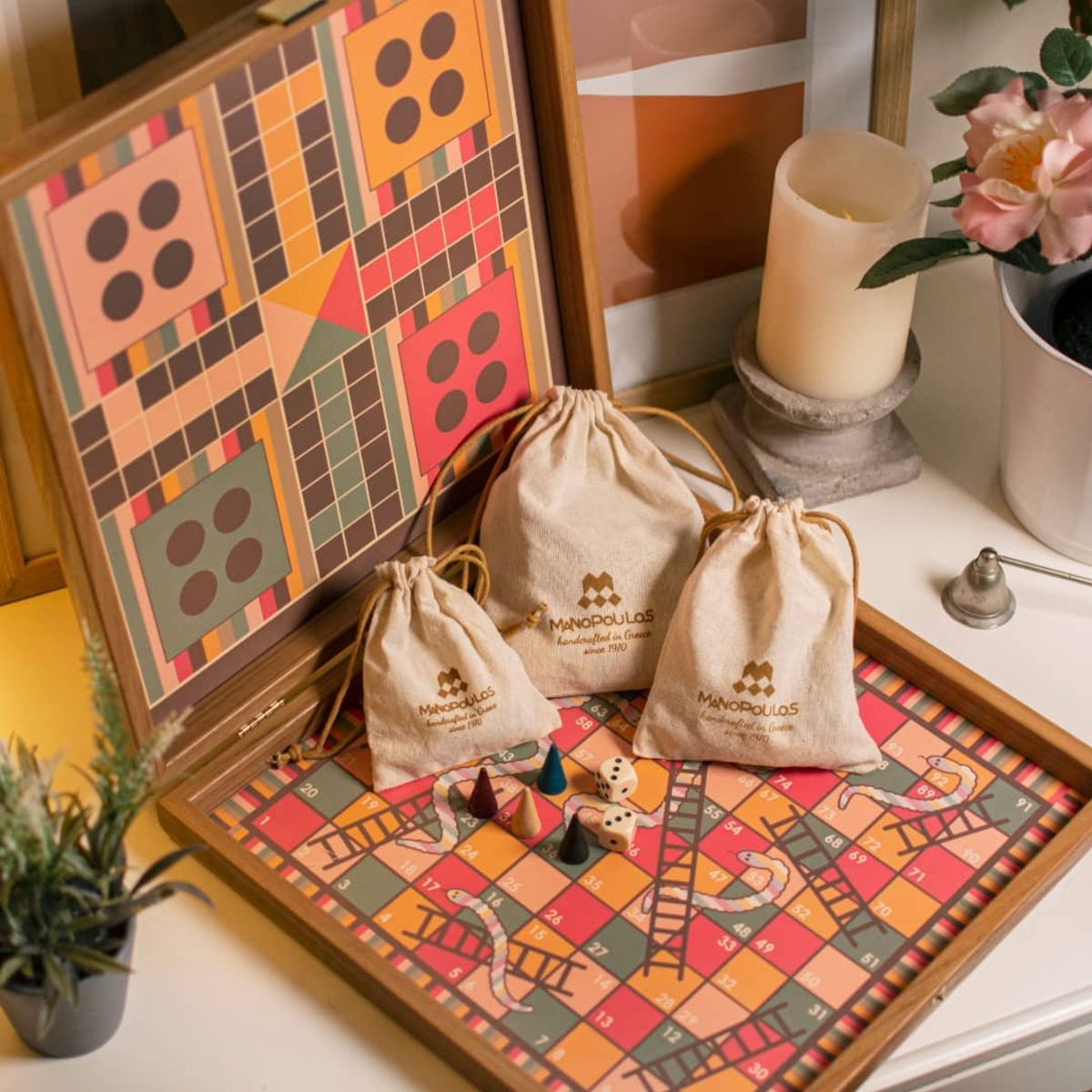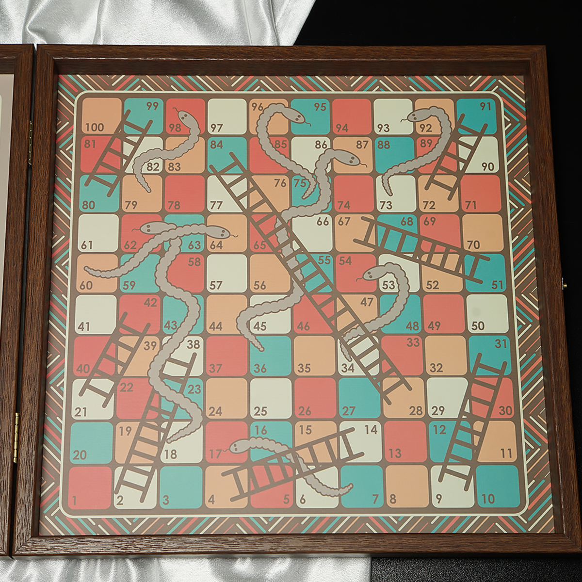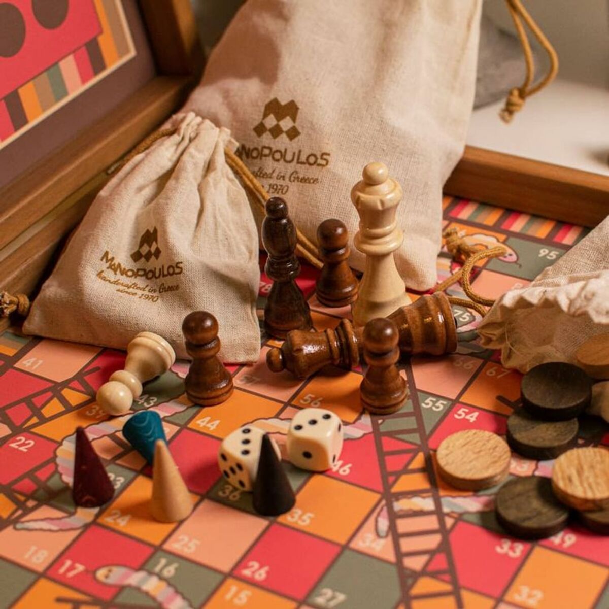 Набор настольных игр 4 в 1 (шахматы, нарды, лудо, змеи и лестницы) в винтажном стиле