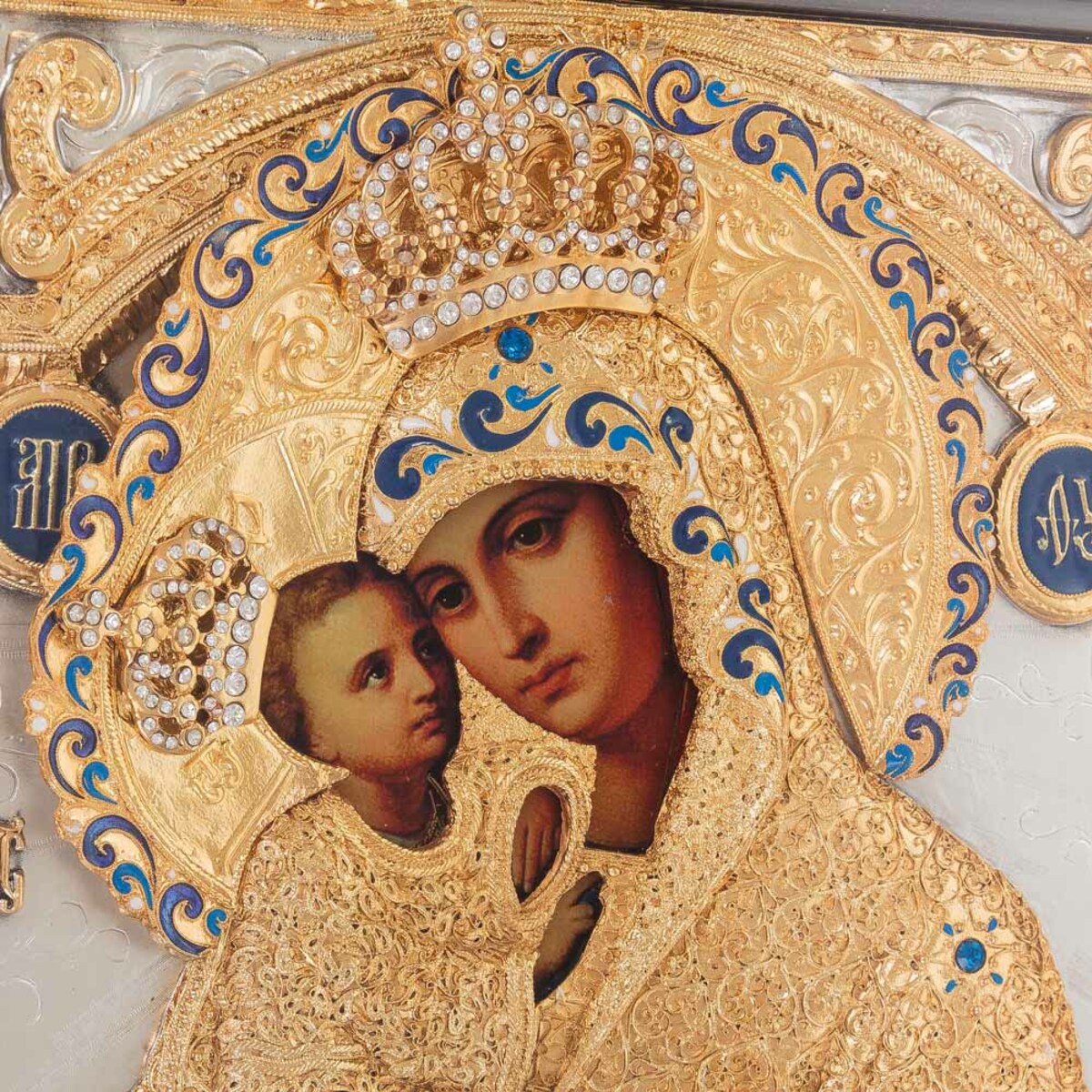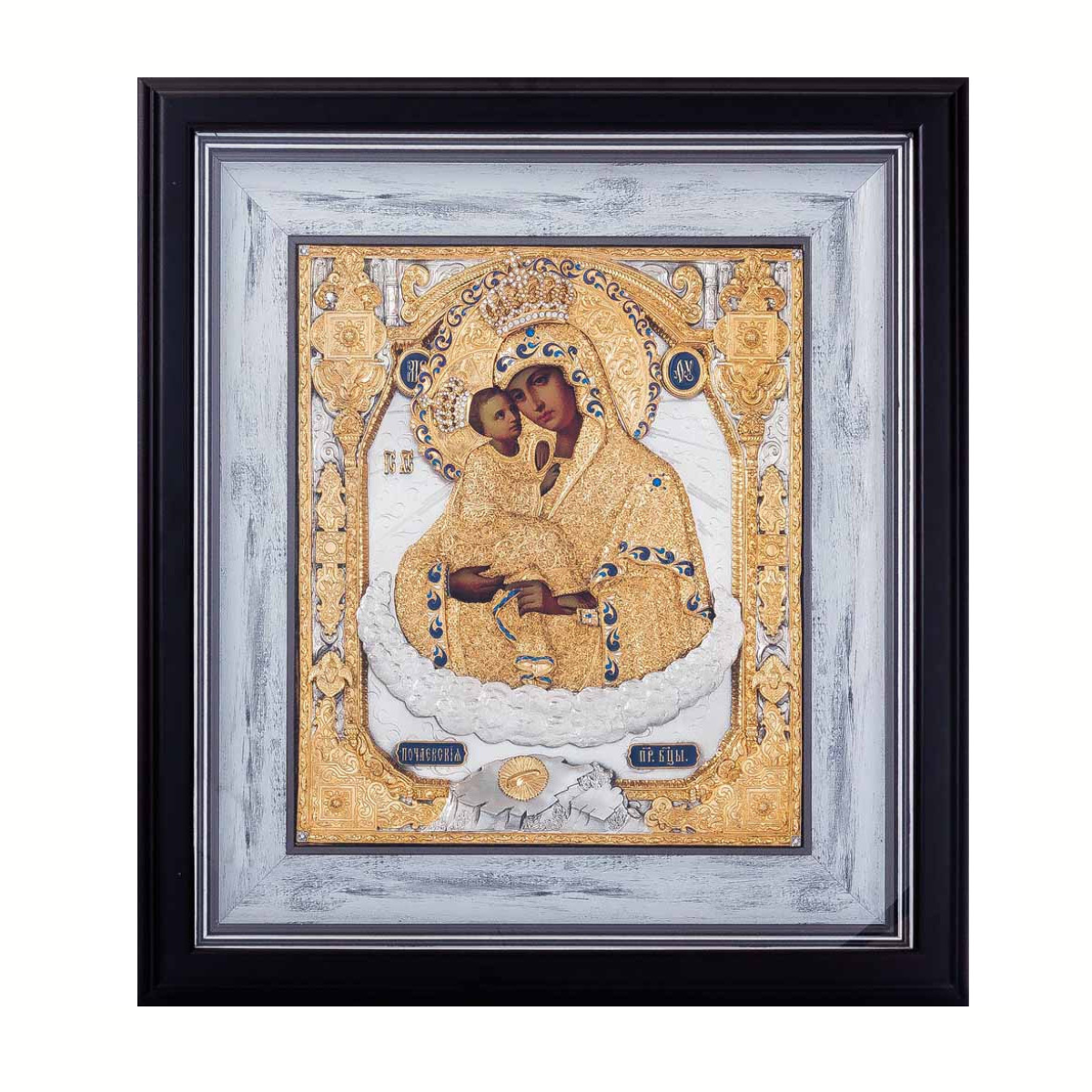 Почаевская медная икона Божией Матери с эмалями, серебрением и позолотой