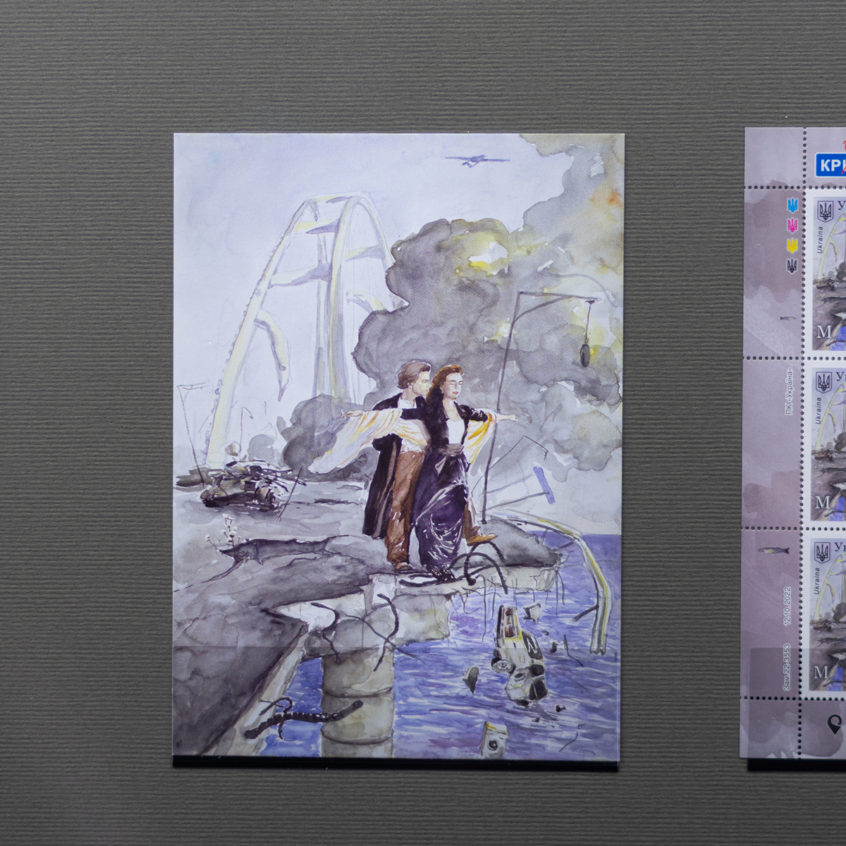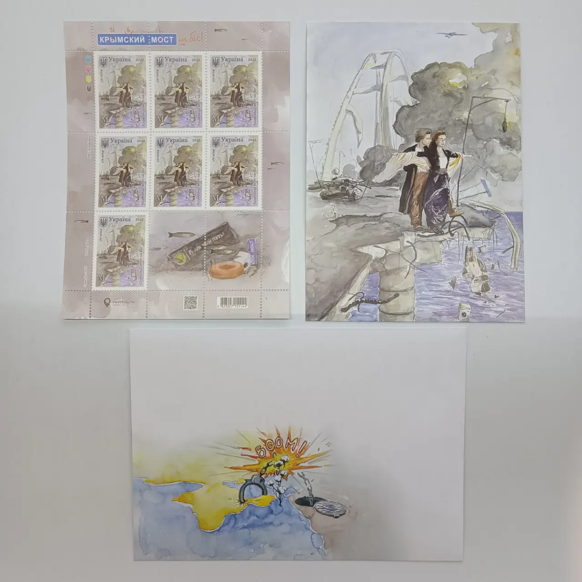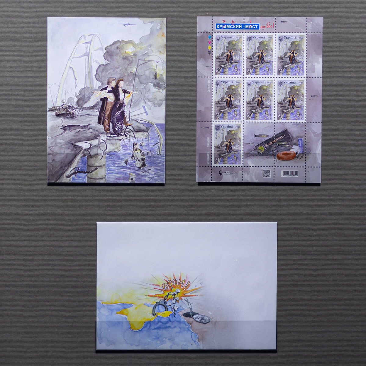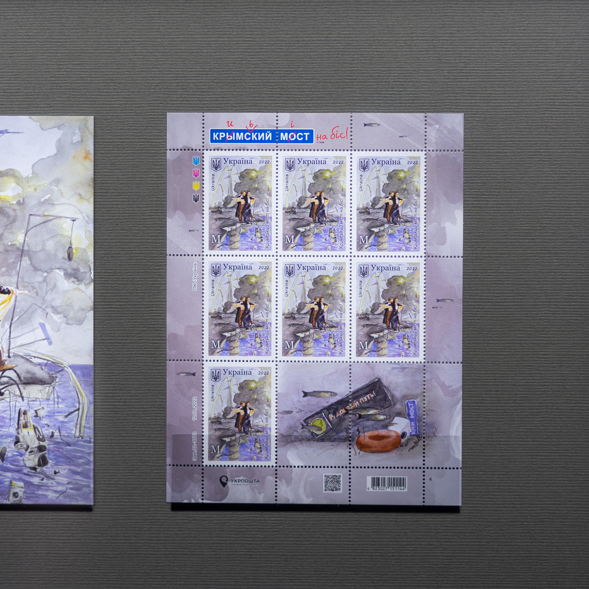 Почтовый набор «Крымский мост на бис» (шесть марок, конверт, карточка)