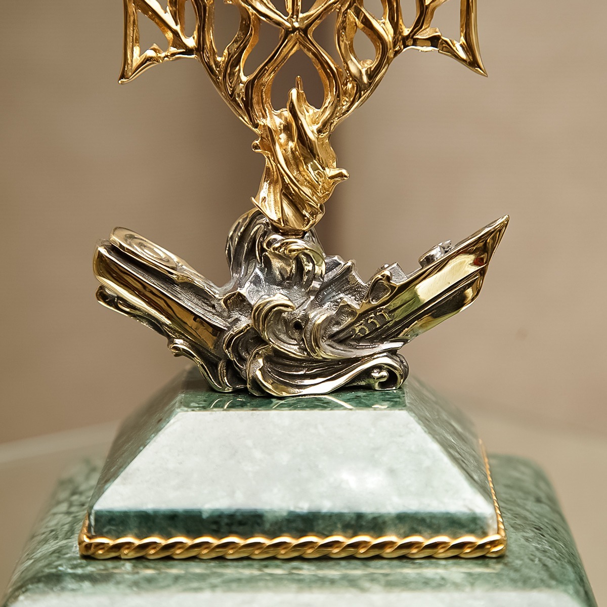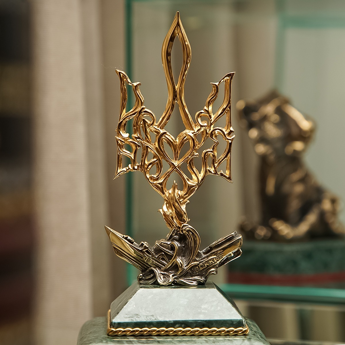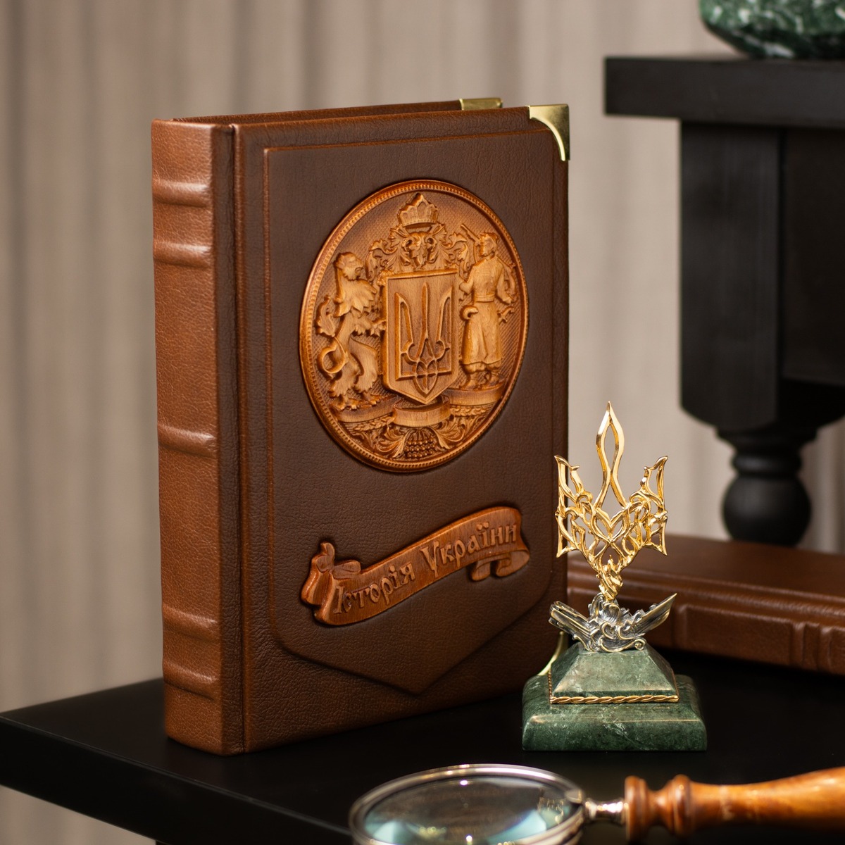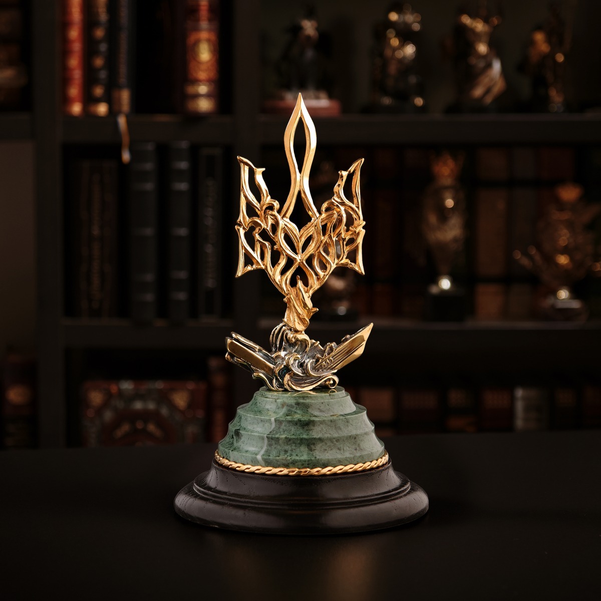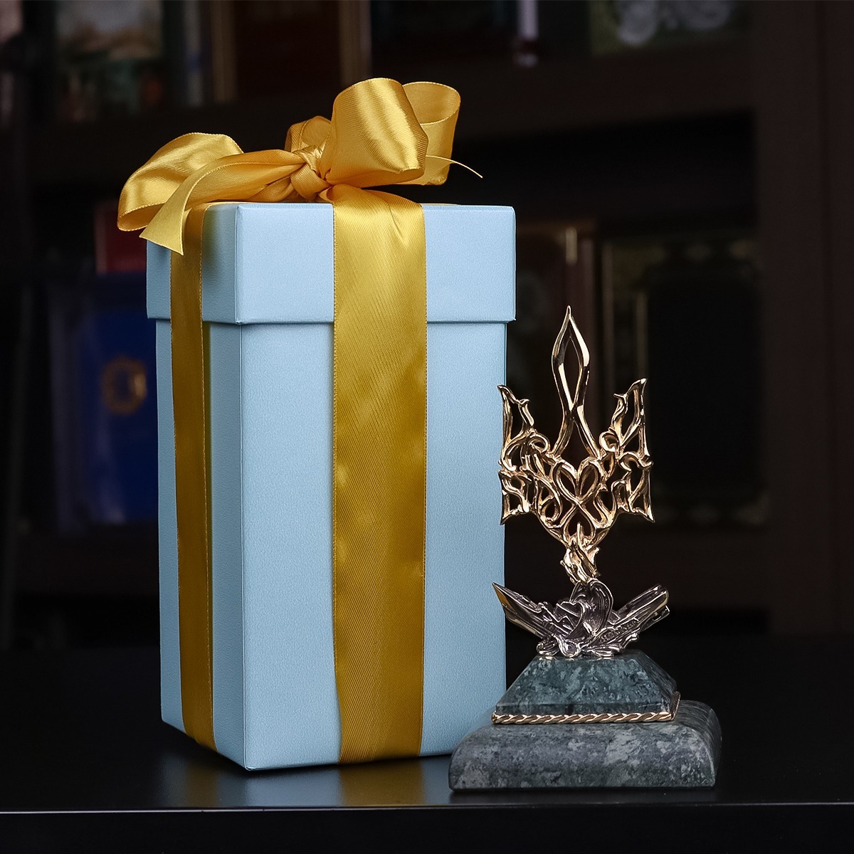Подарочный комплект - авторская статуэтка Герб Украины Тризуб с позолотой и серебрением и подарочное издание "История Украины", Н. Аркас