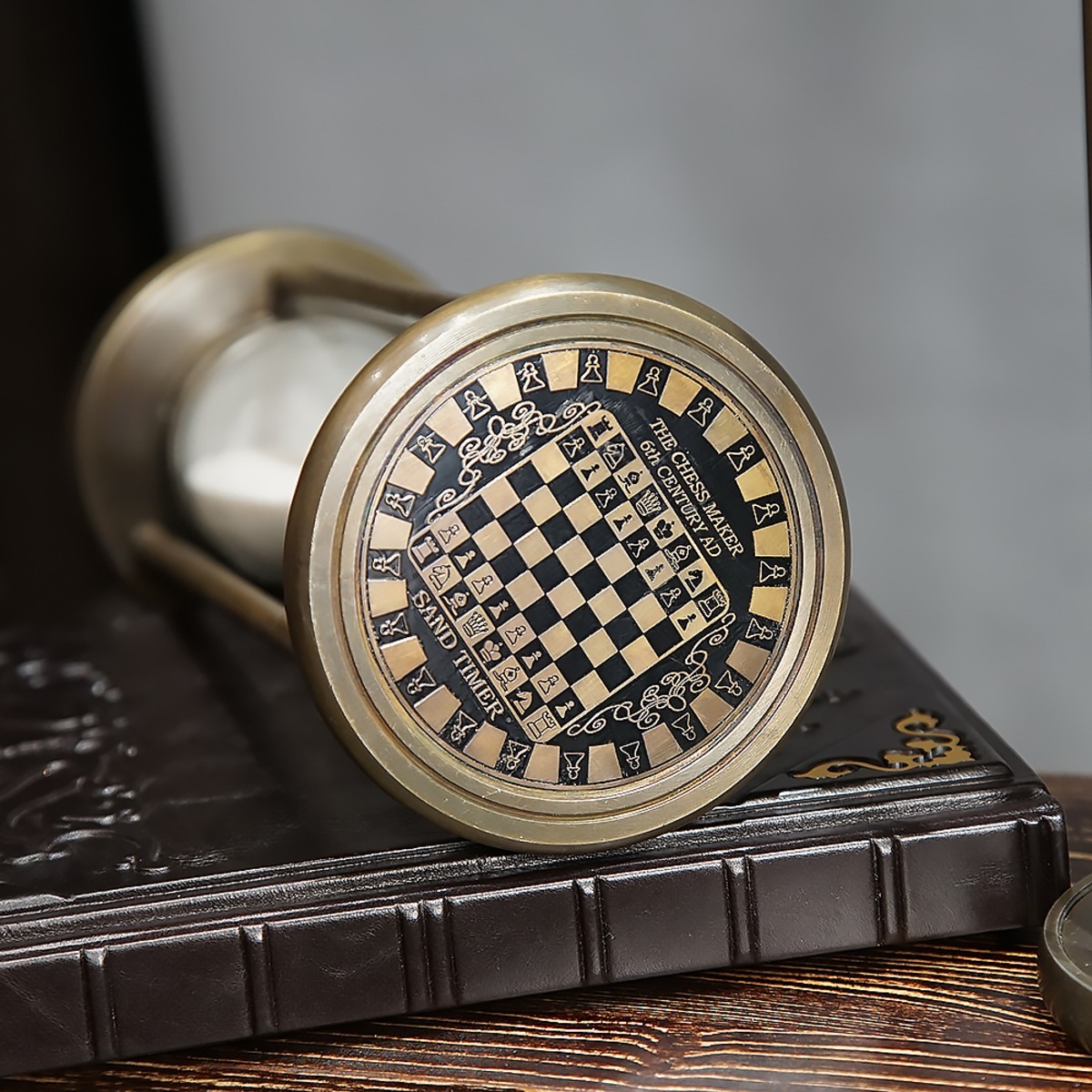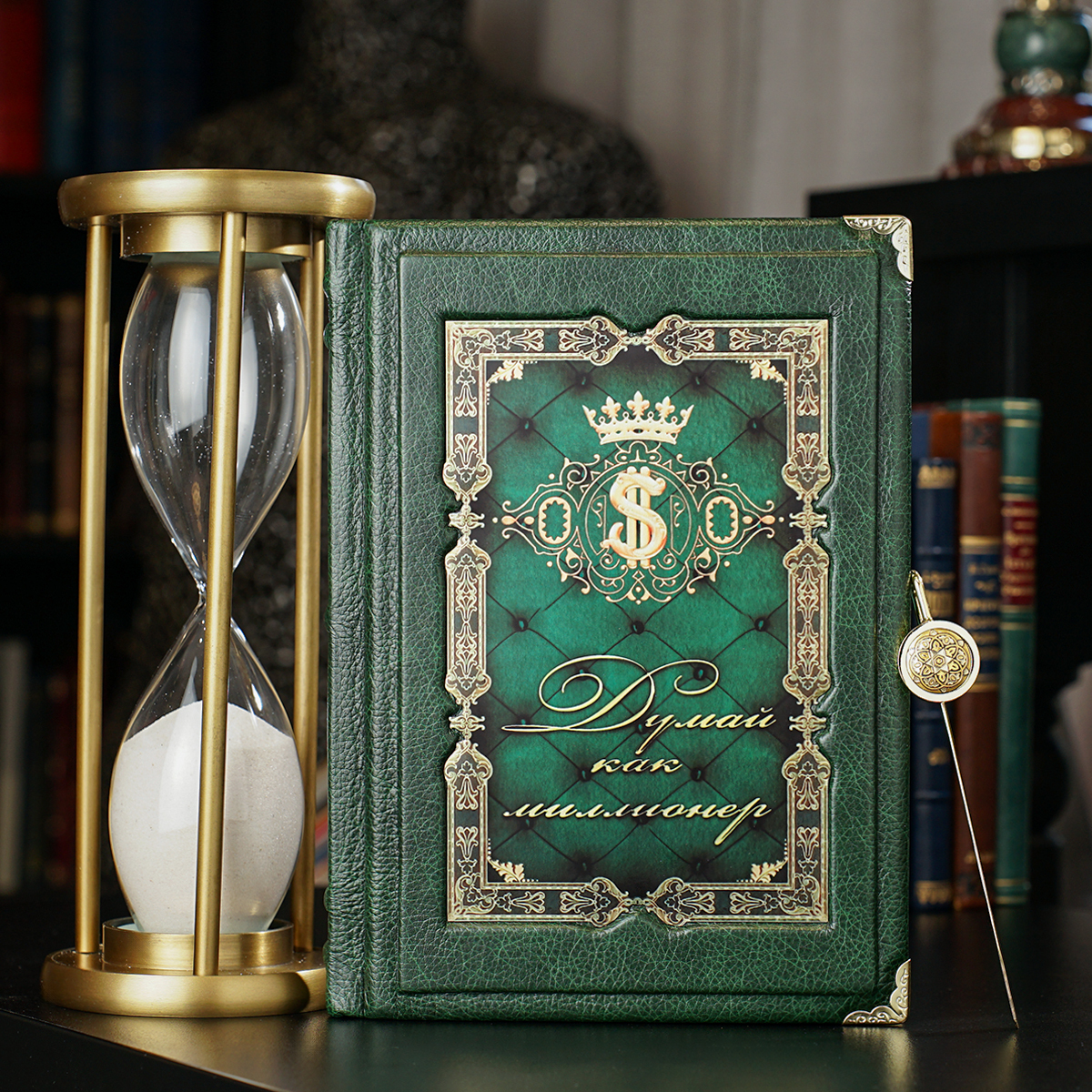 Подарочный комплект - винтажные песочные часы "Время шахмат", закладка для книги с восточным орнаментом от Anframa и книга "Думай как миллионер", Т. Харв Экер