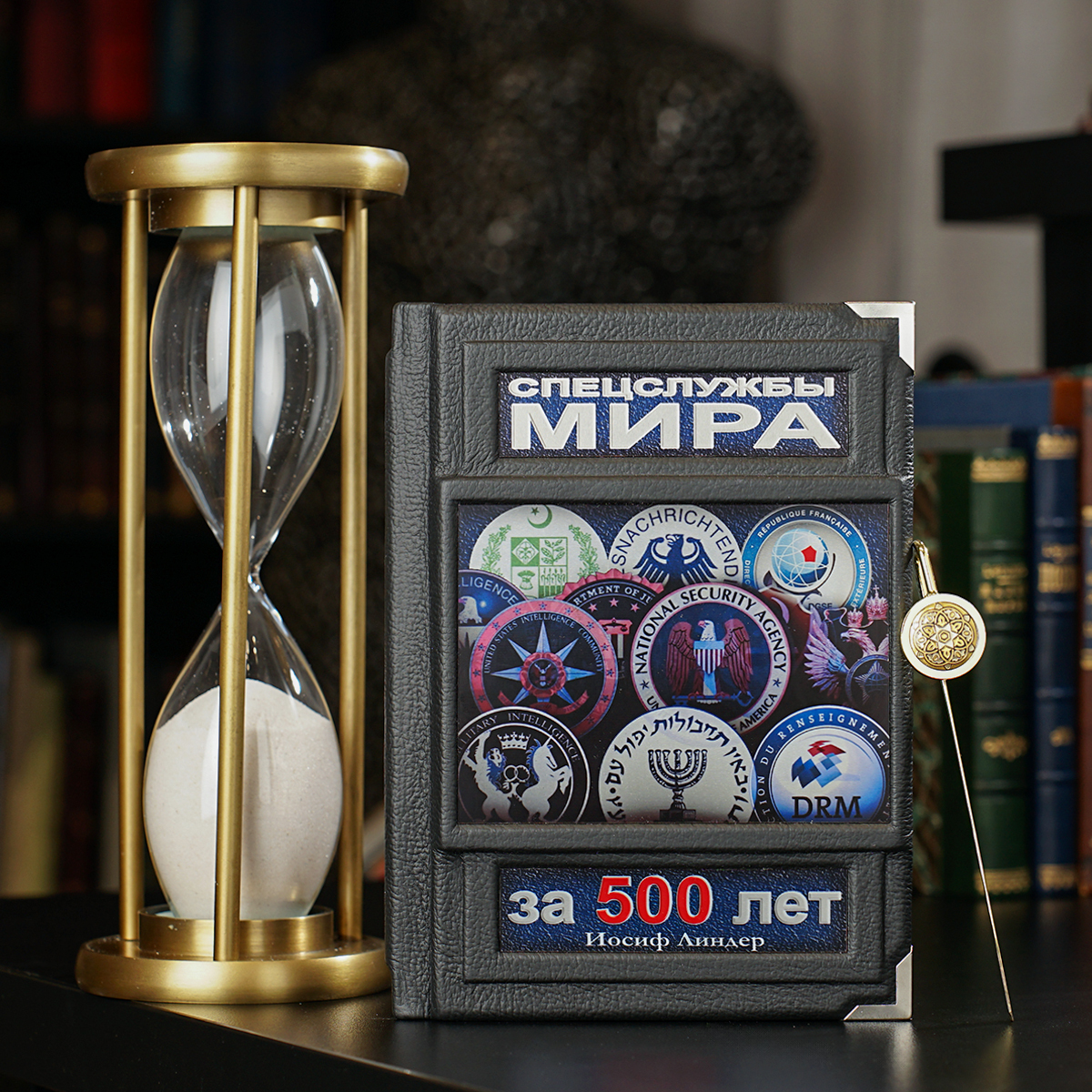 Подарочный комплект - винтажные песочные часы "Время шахмат", закладка для книги с восточным орнаментом от Anframa и книга "Спецслужбы мира"