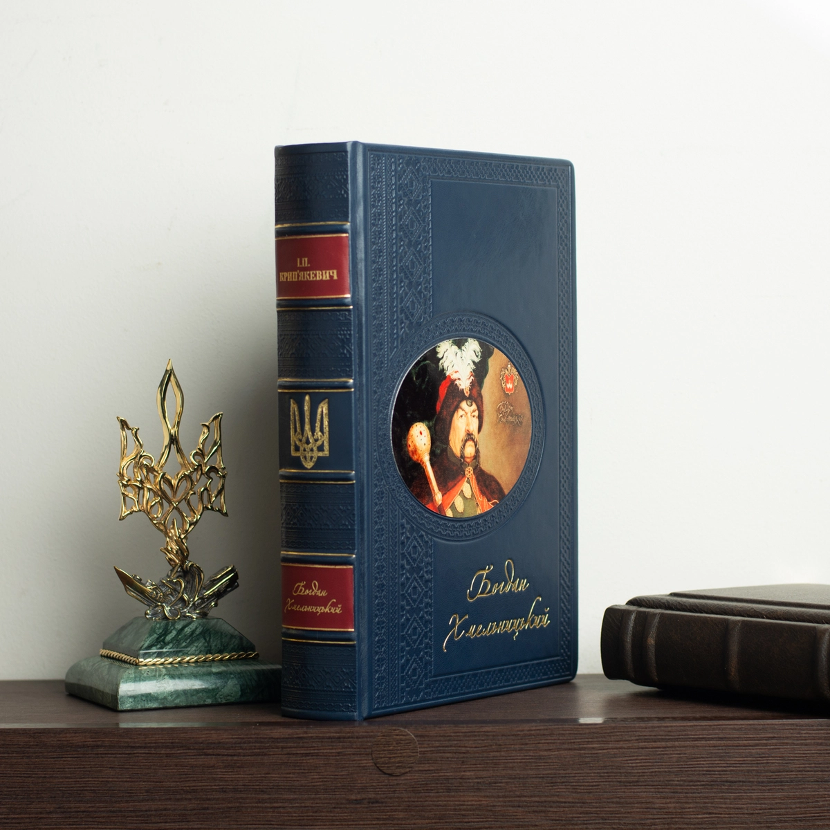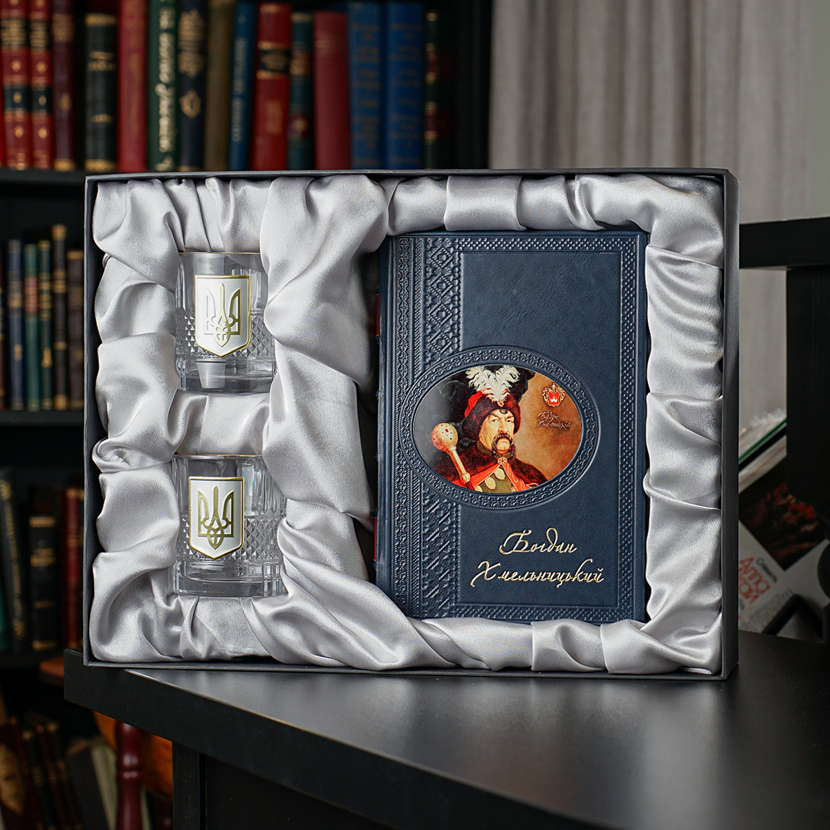 Подарочный комплект хрустальные бокалы с позолотой и серебром "Тризуб" и книга И.П. Крипьякевич "Богдан Хмельницкий" (на украинском языке)