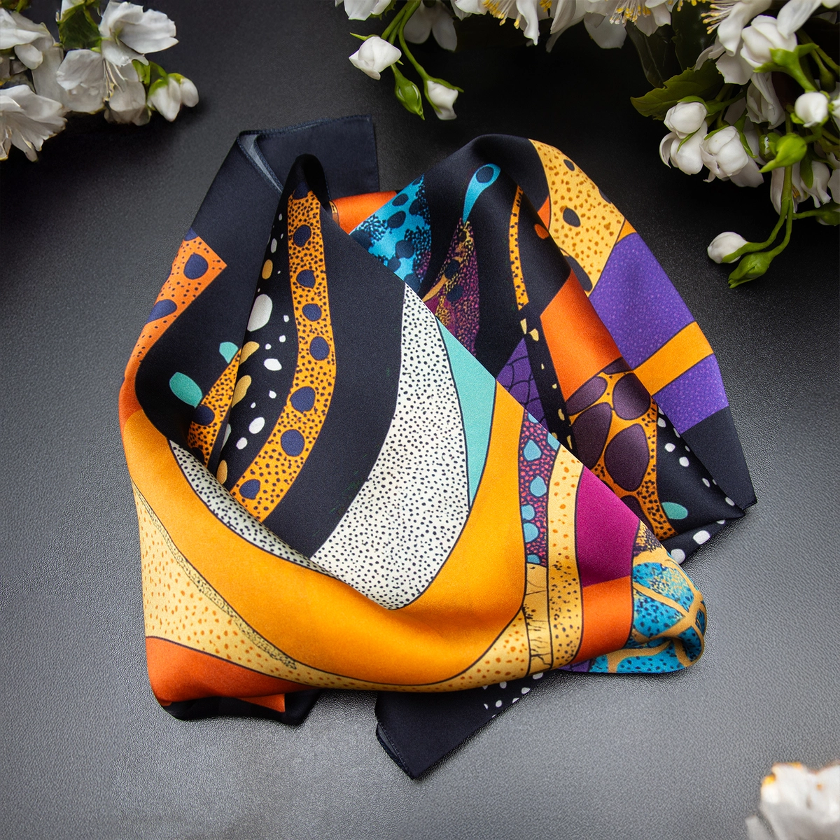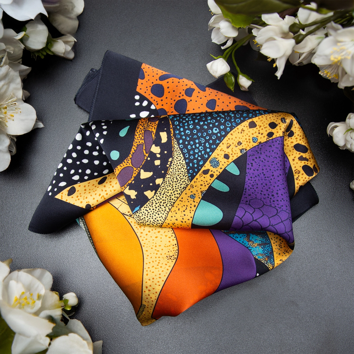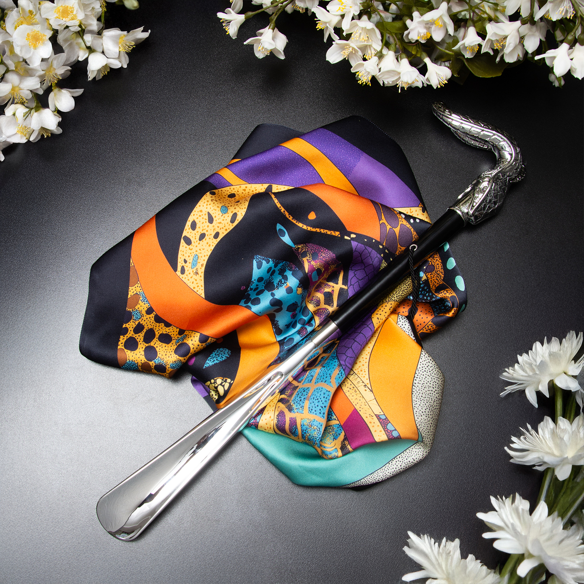 Подарочный комплект платок из шелка "Змеиный вихрь" от FAMA и рожок для обуви "Snake" от Pasotti