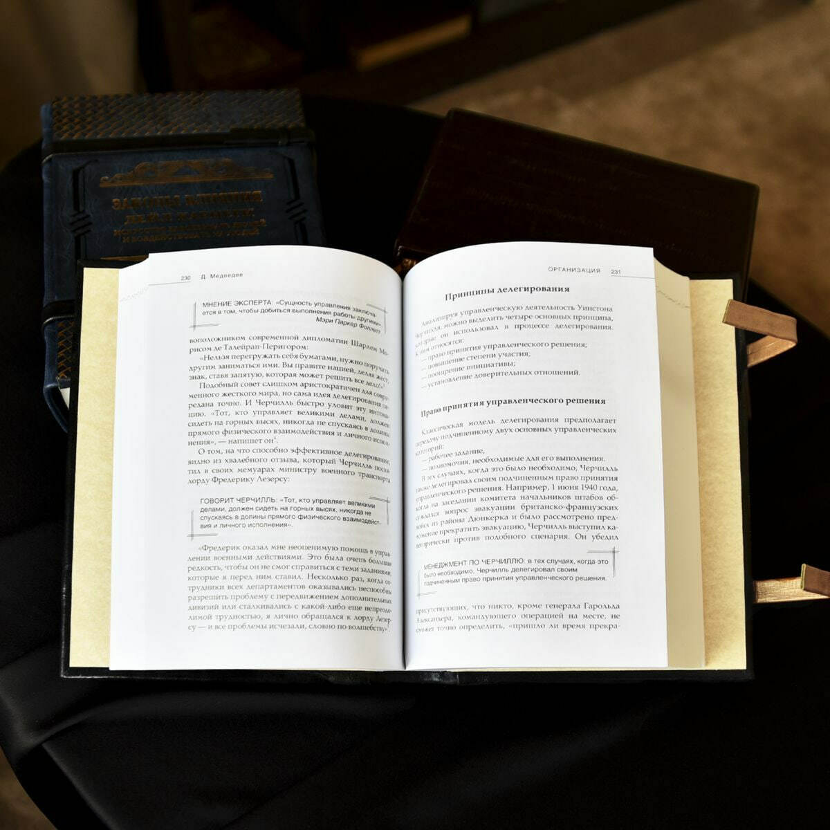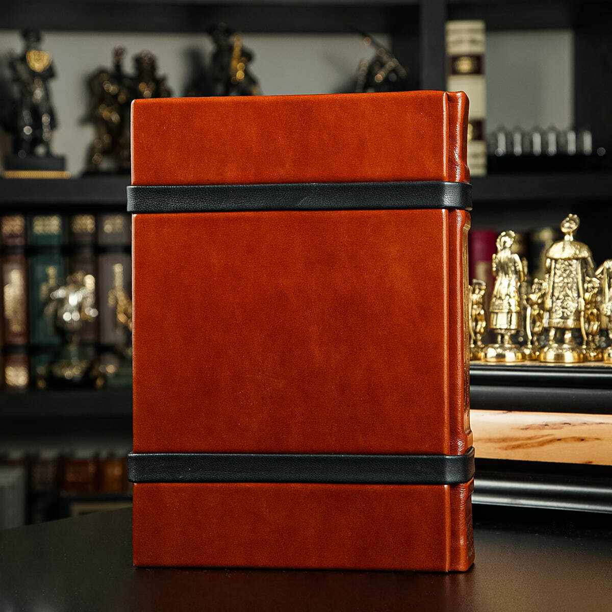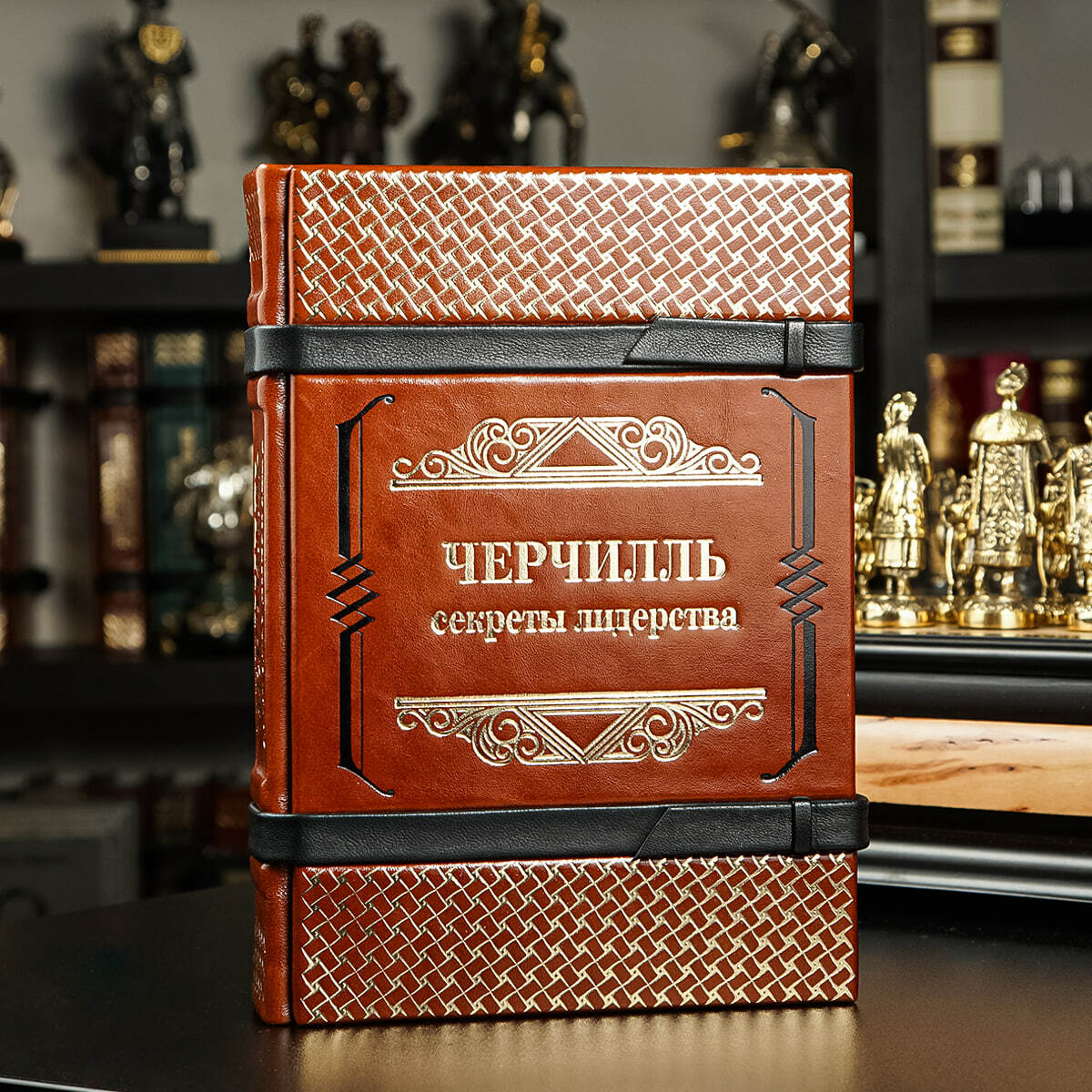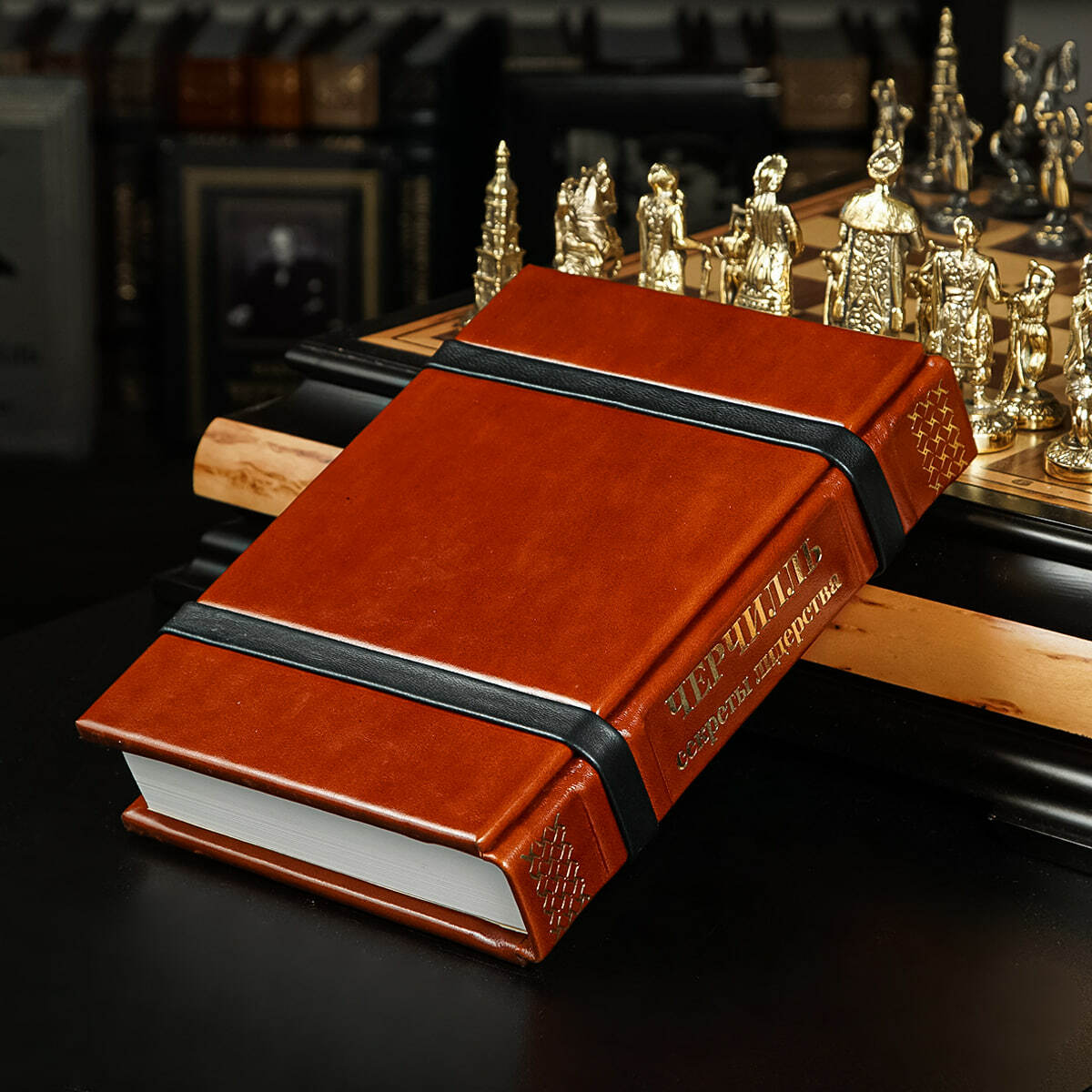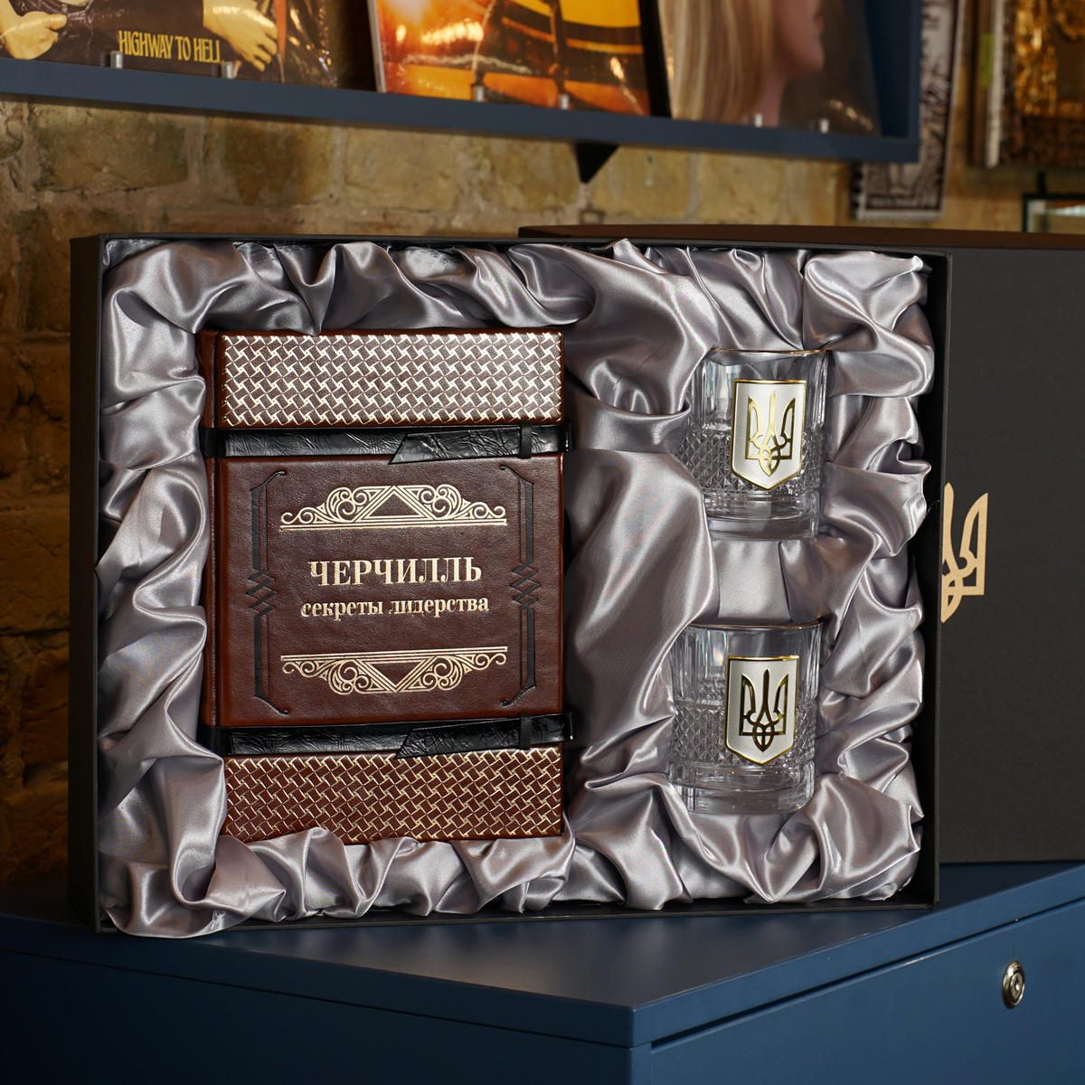 Подарочный комплект – Книга "Черчилль: секреты лидерства" в коричневом переплете и Набор для виски "Тризуб" латунь пандора с позолотой и серебром (2 бокала) от BIANCANEVE