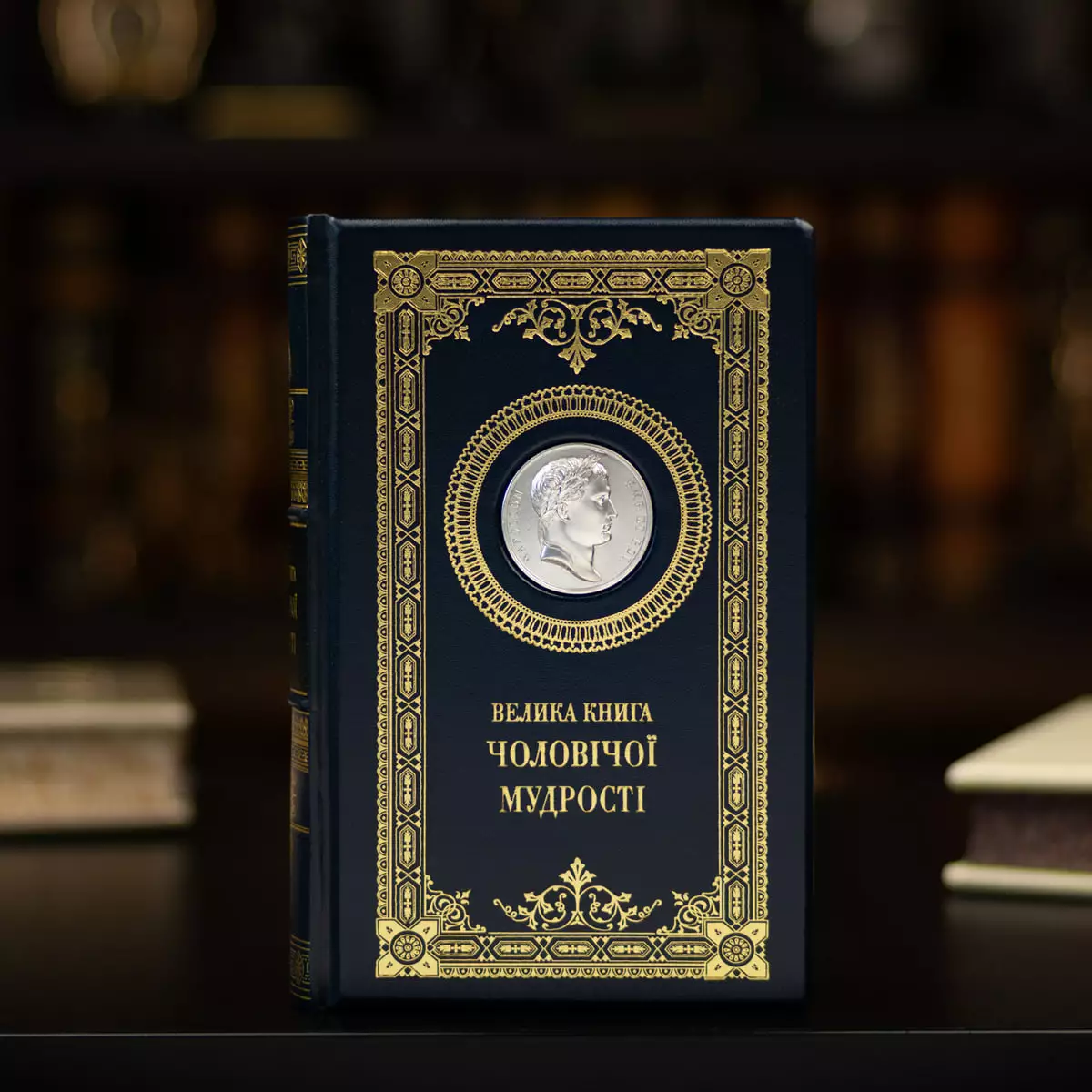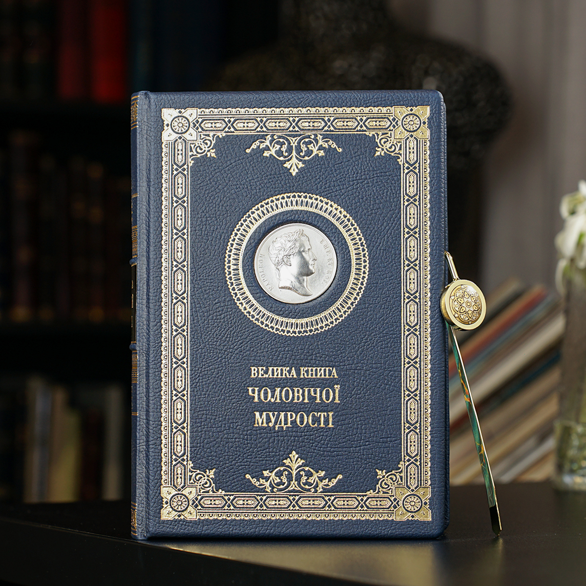 Подарочный комплект книга в коже "Большая книга мужской мудрости" (на украинском языке) и закладка для книги с восточным орнаментом от Anframa