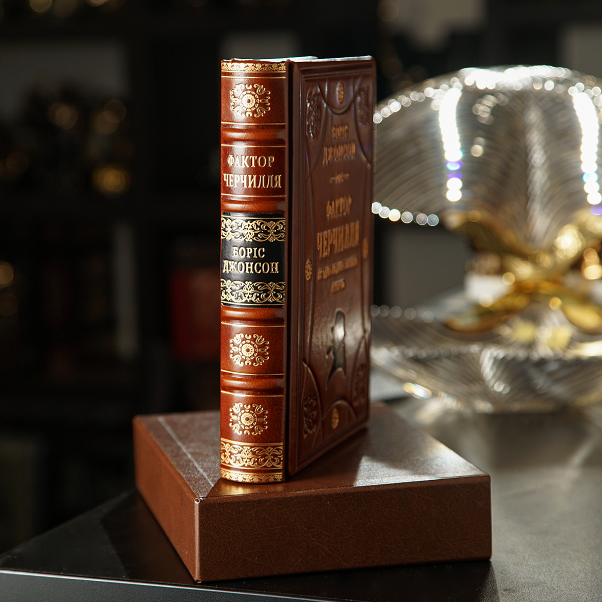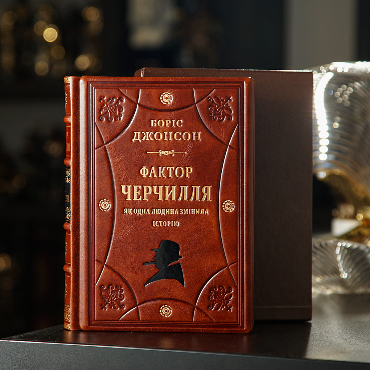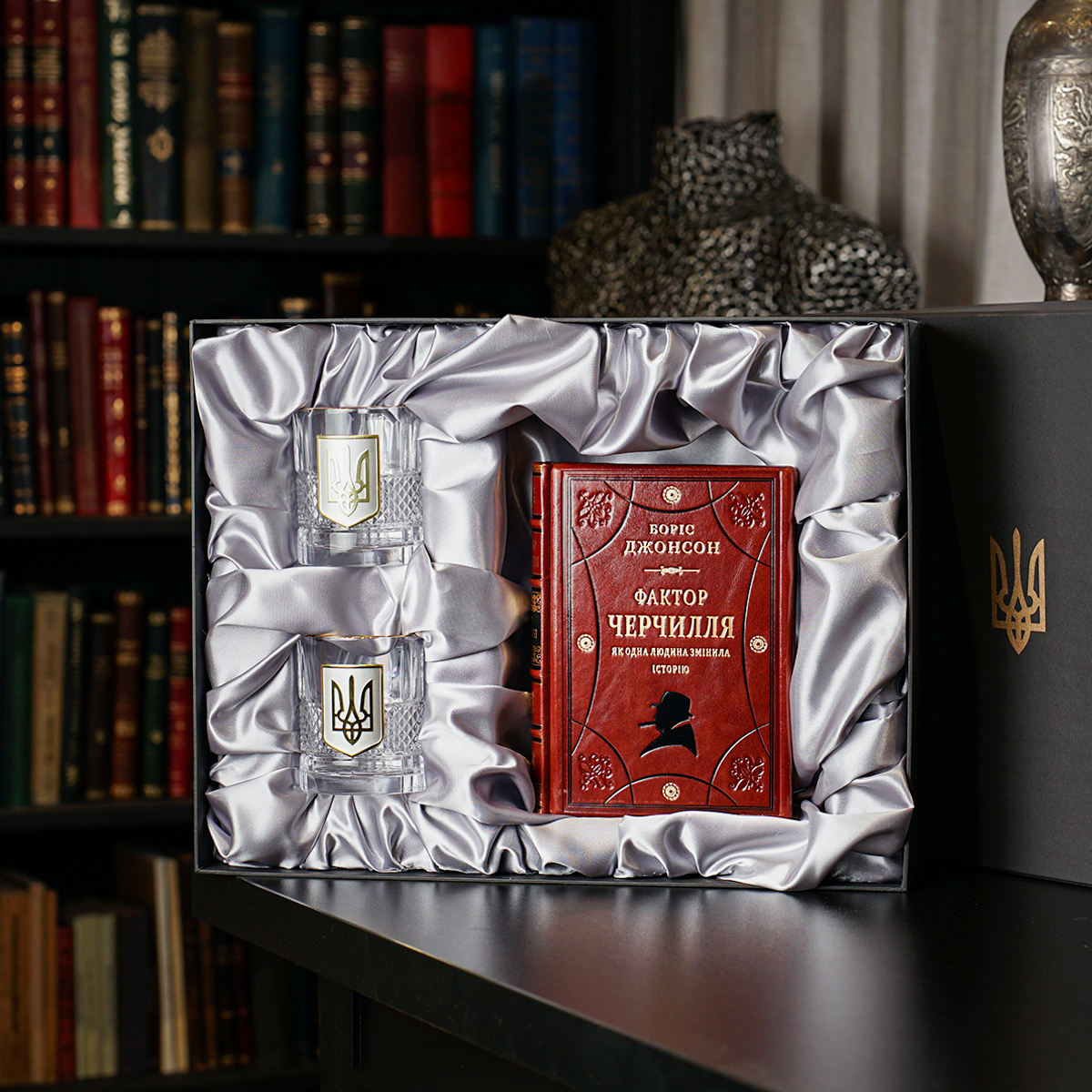 Подарочный комплект хрустальные бокалы с позолотой и серебром "Тризуб" и книга "Фактор Черчилля. Как один человек изменил историю", Борис Джонсон