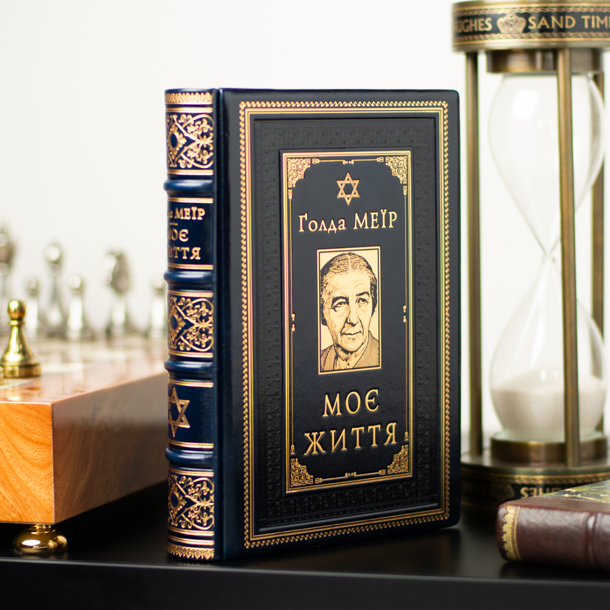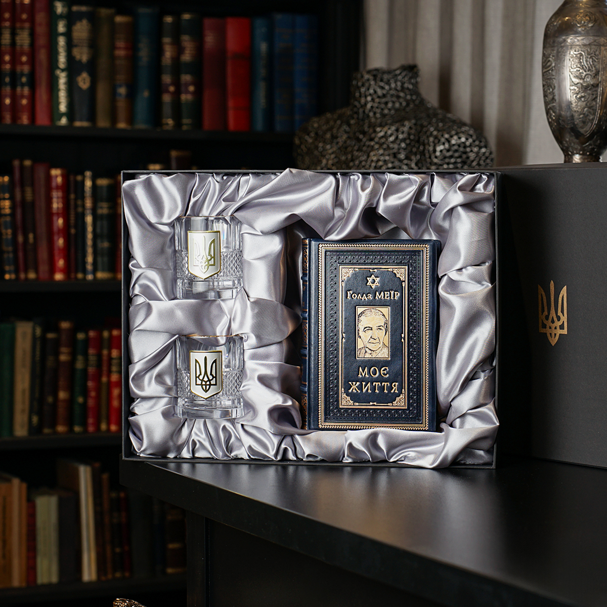 Подарочный комплект хрустальные бокалы с позолотой и серебром "Тризуб" и книга Голда Меир "Моя жизнь" (на украинском языке)