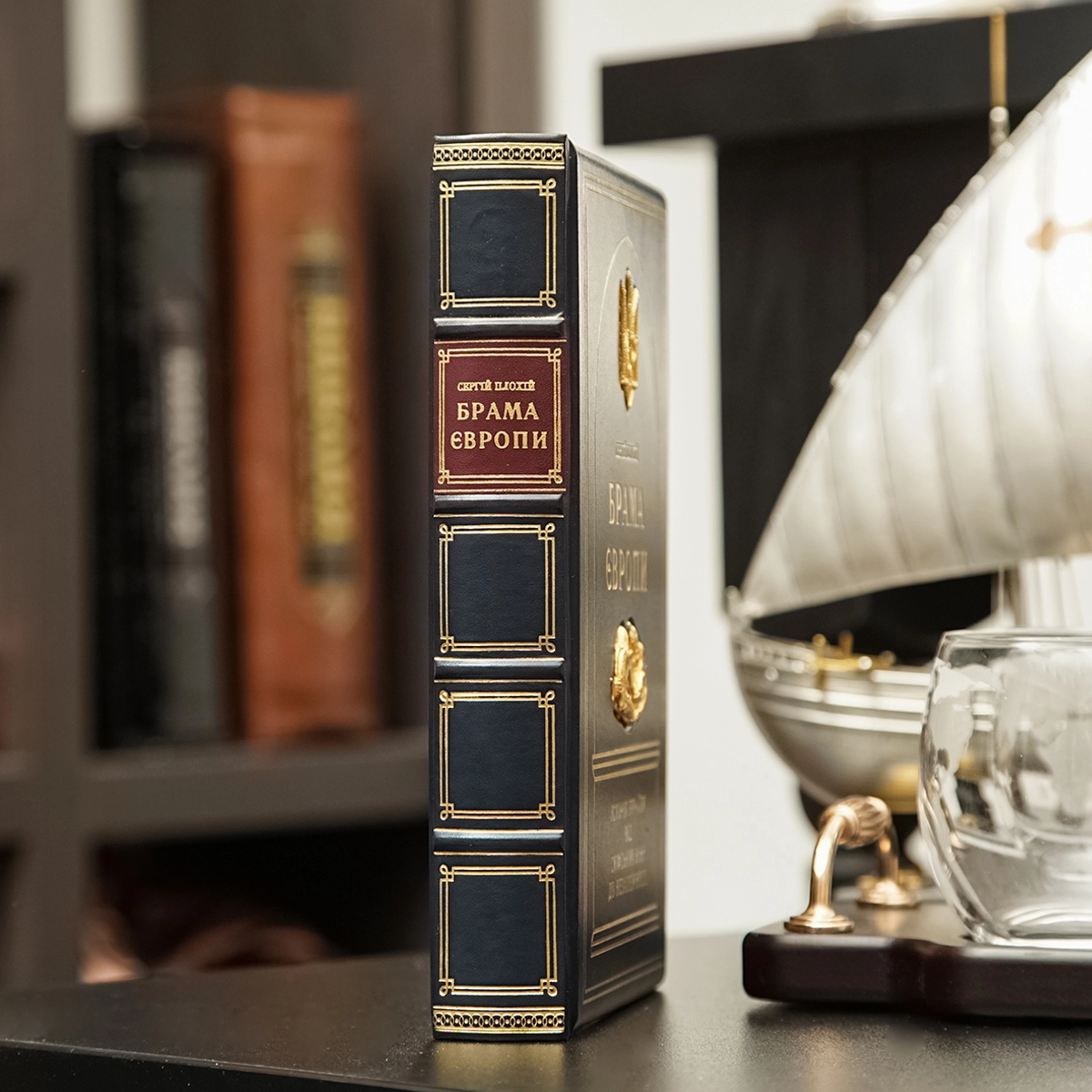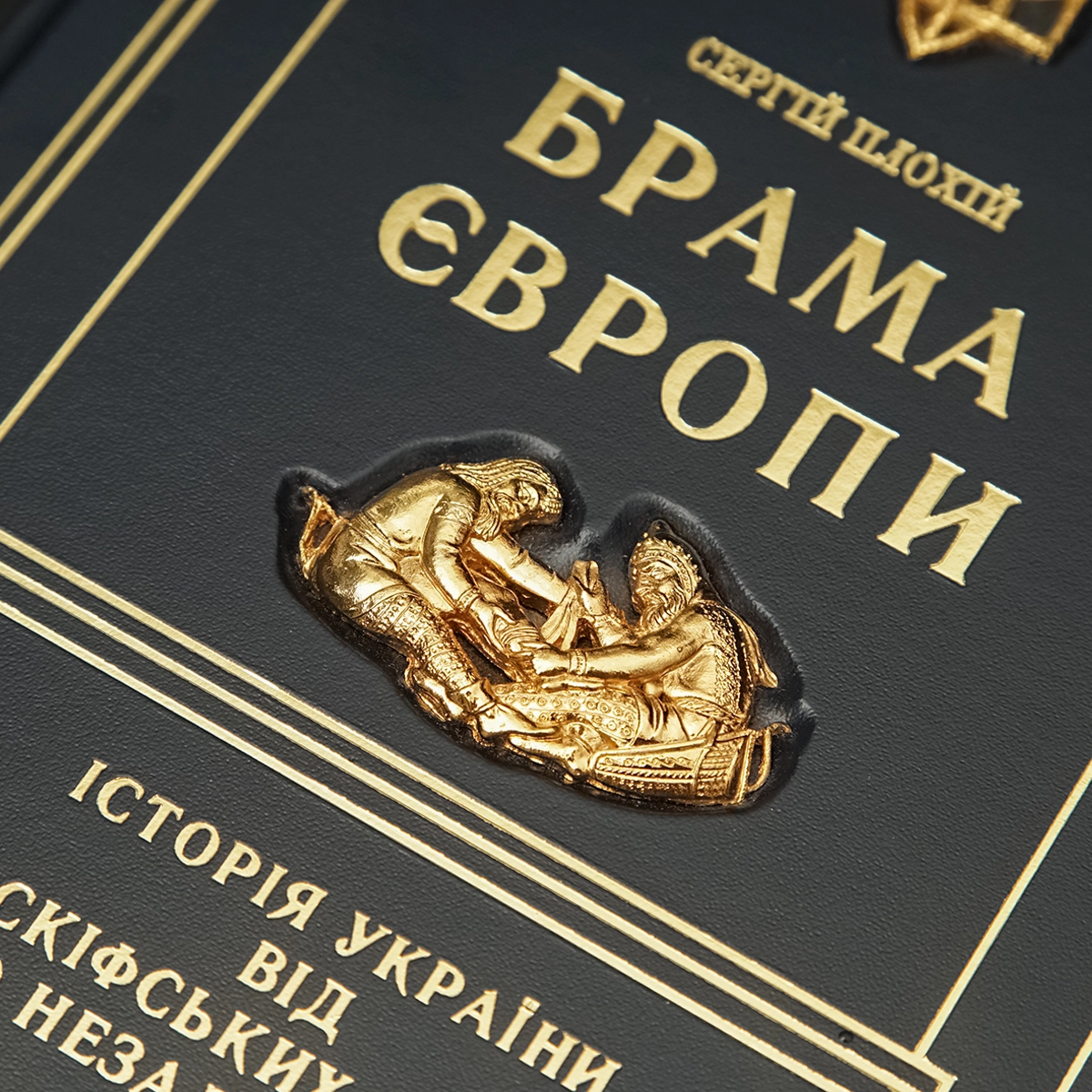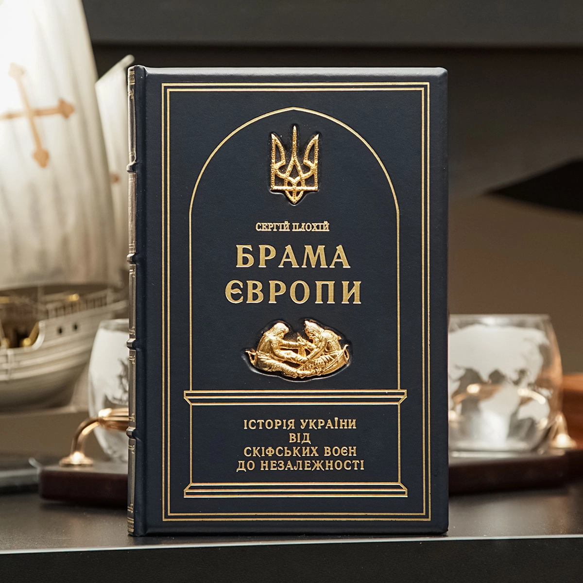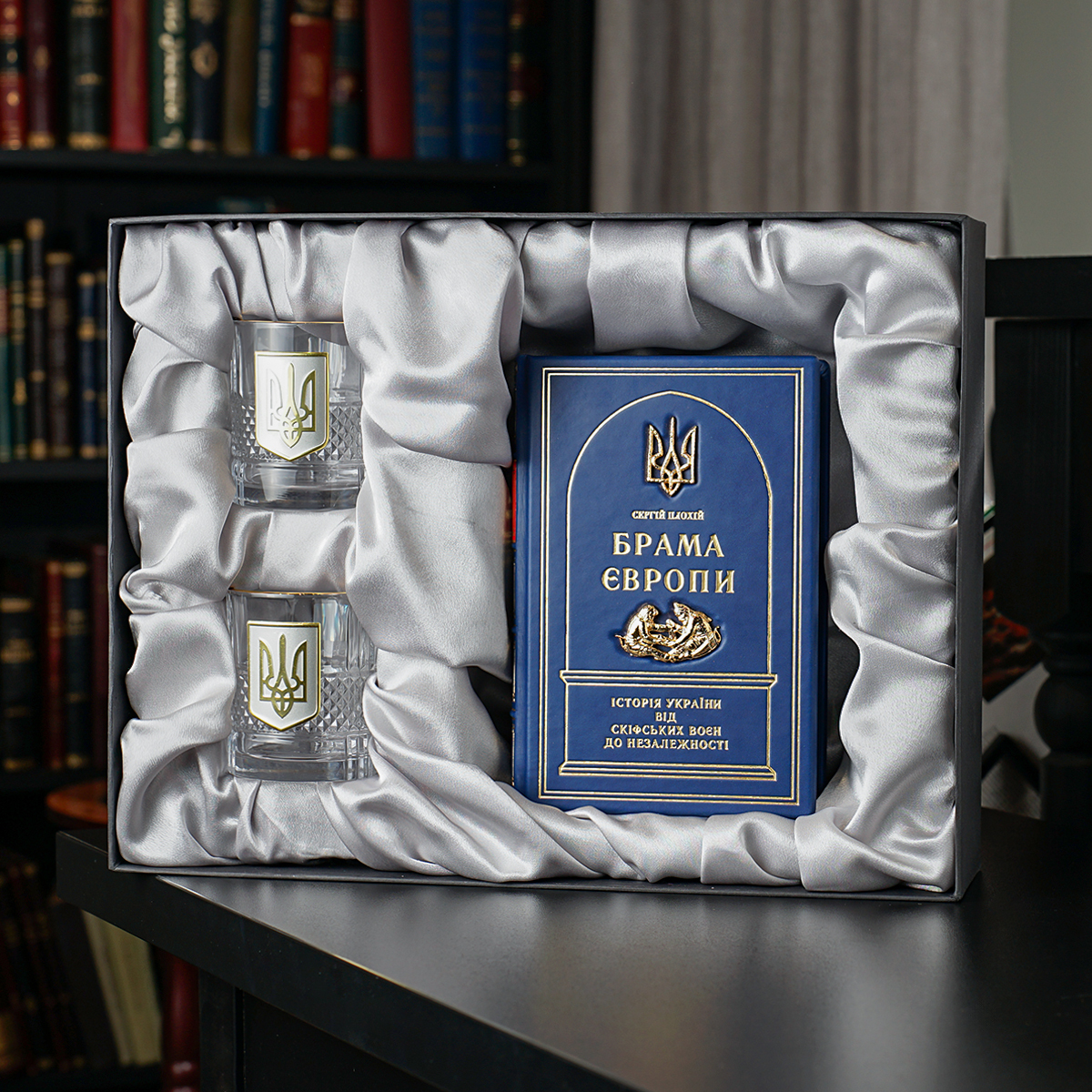 Подарочный комплект хрустальные бокалы с позолотой и серебром "Тризуб" и книга "Врата Европы" (на украинском языке)