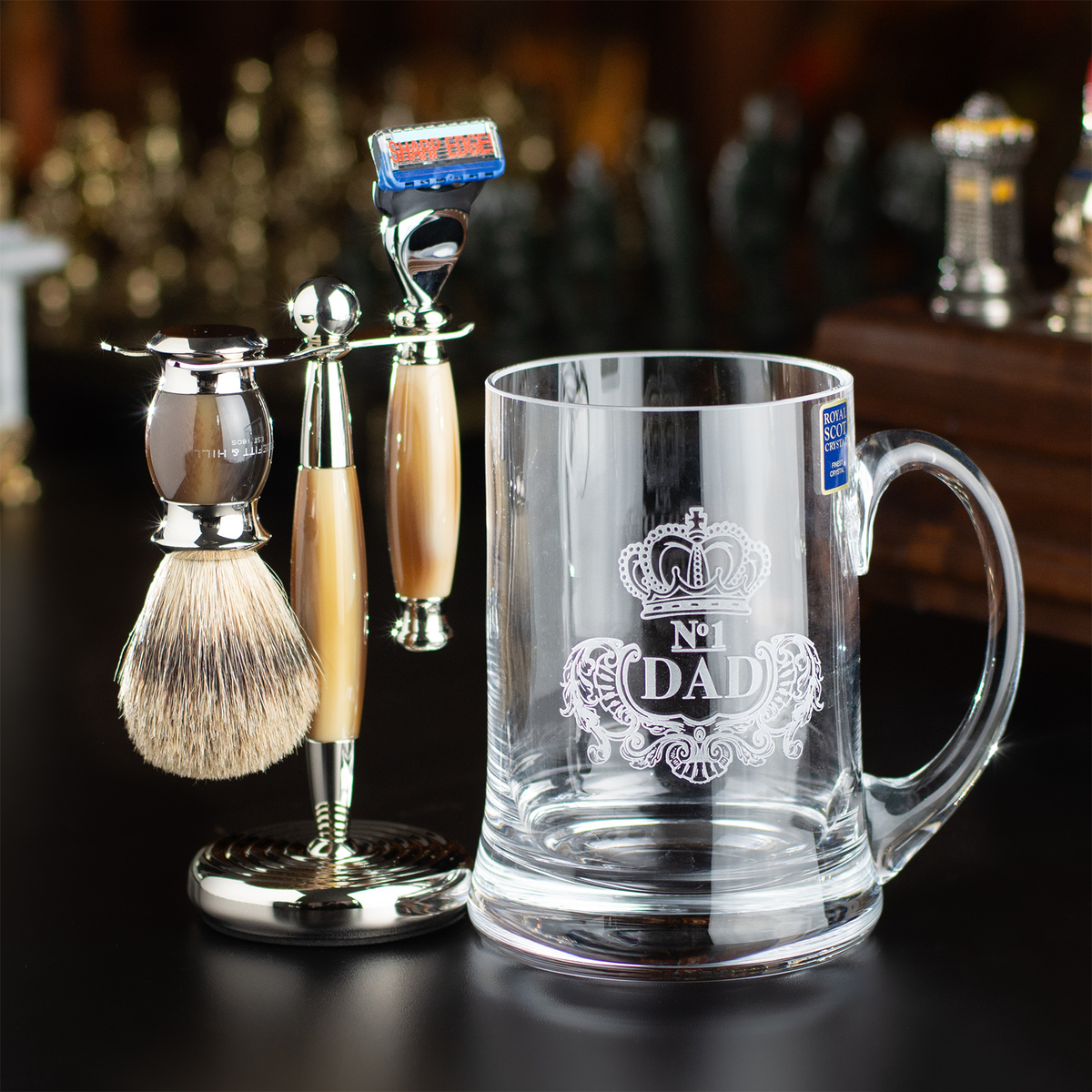 Подарочный комплект набор для бритья Truefitt & Hill Edwardian collection Fusion Horn и хрустальная кружка для пива "Dad №1" от Royal Buckingham