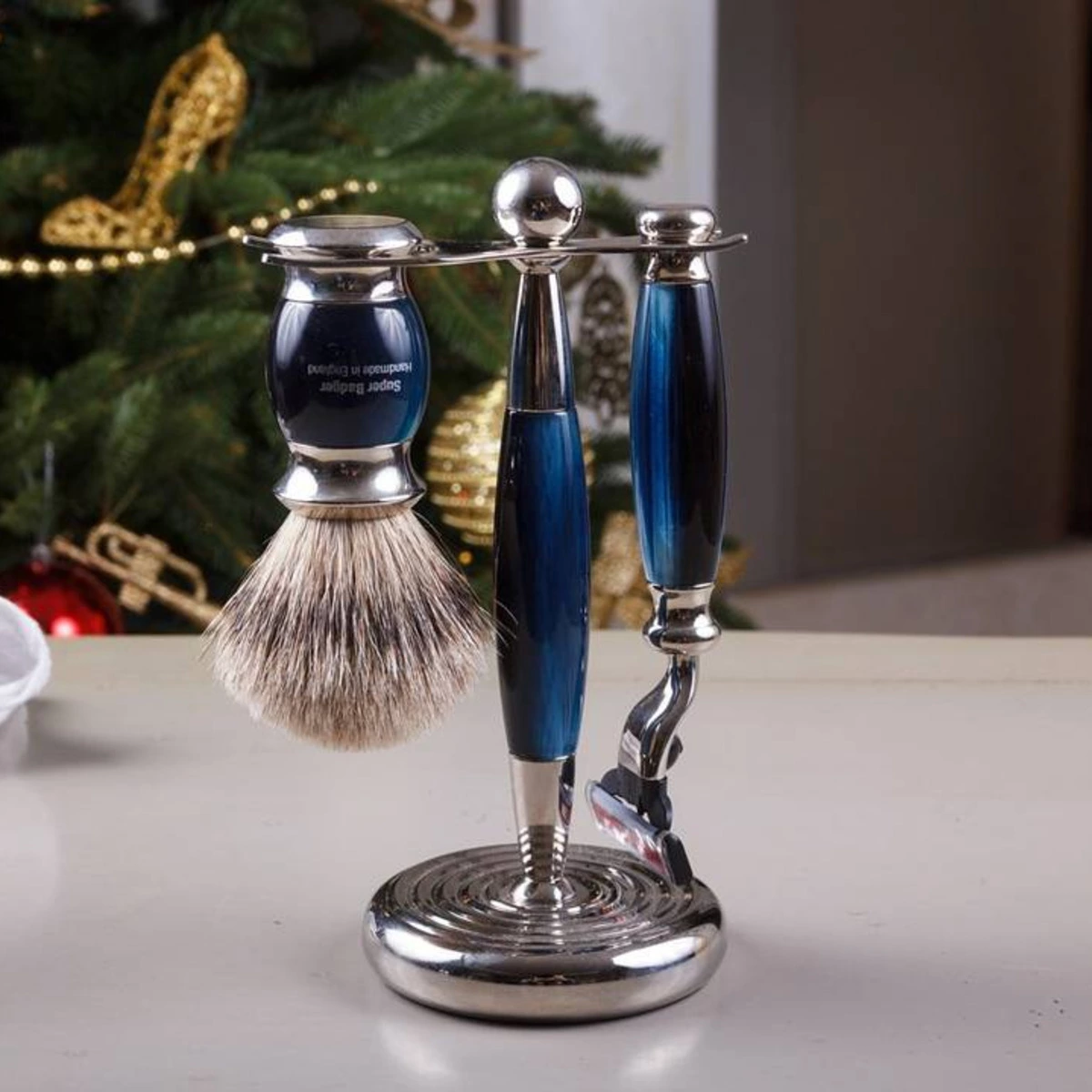 Подарочный набор для бритья Truefitt & Hill Edwardian Collection Fusion Blue Opal и стеклянный бокал для пива "Bull" от Freitas & Dores