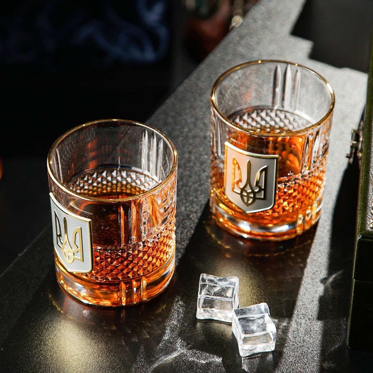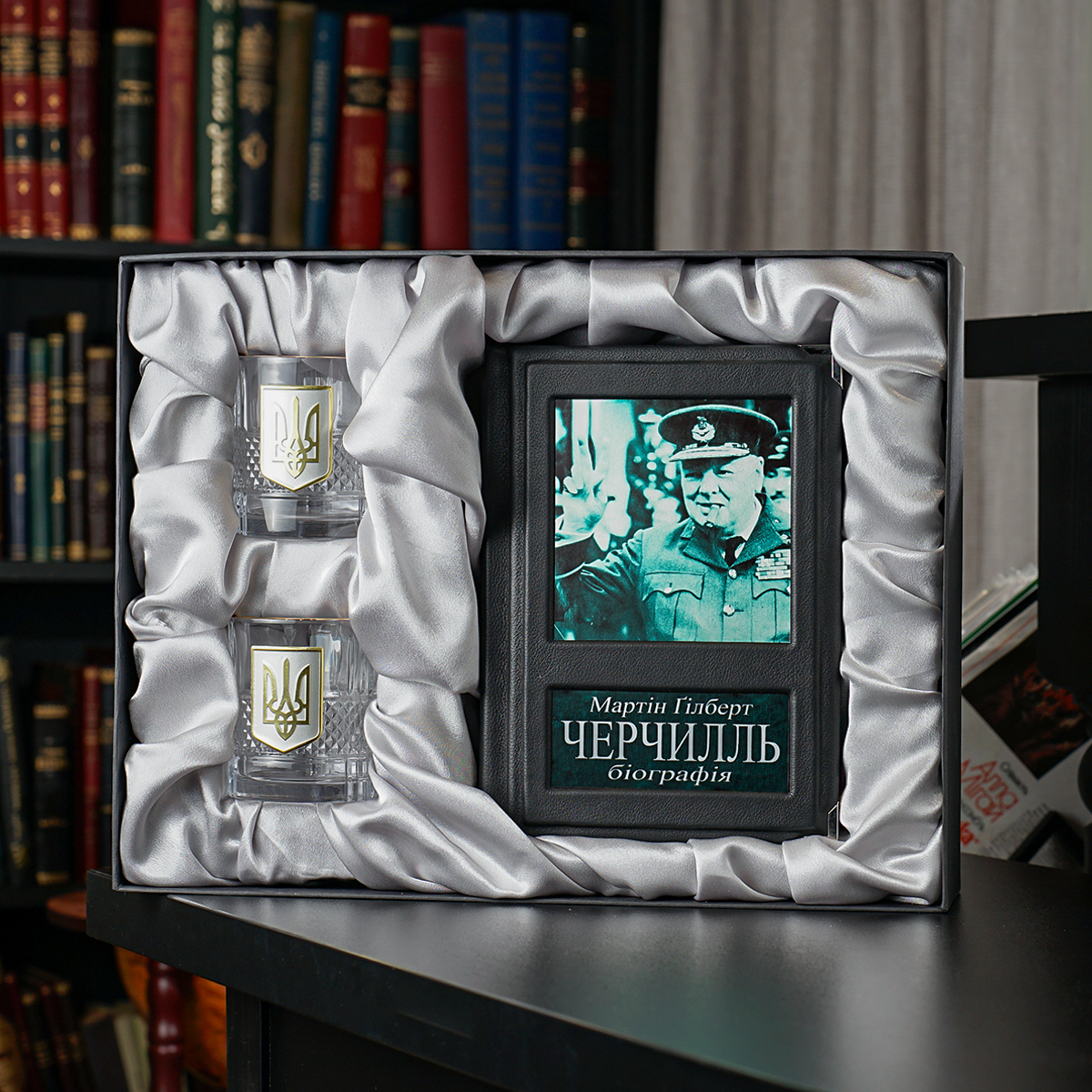 Подарочный комплект - набор для виски "Тризуб" латунь пандора с позолотой и серебром (2 бокала) от BIANCANEVE и книга "Черчилль: биография", Мартин Гилберт (на украинском языке)