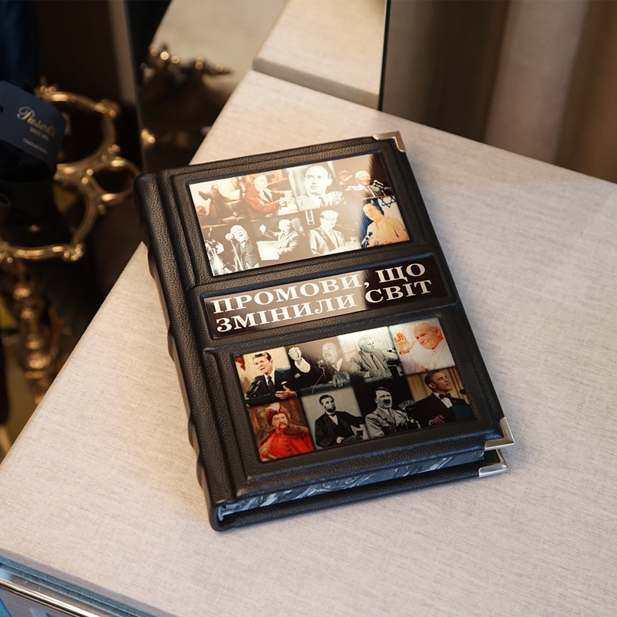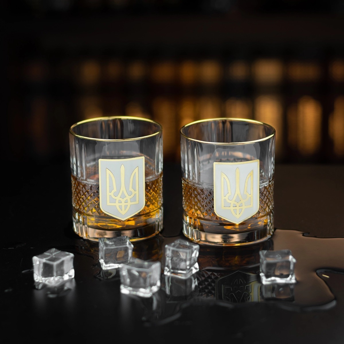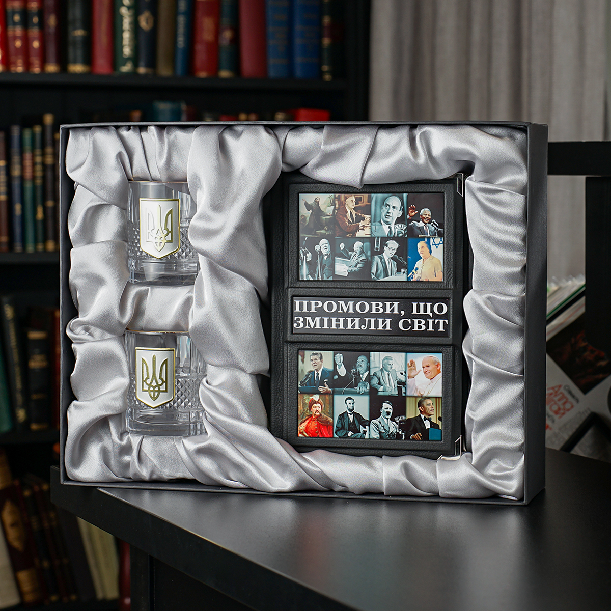 Подарочный комплект - набор для виски "Тризуб" латунь пандора с позолотой и серебром (2 бокала) от BIANCANEVE и подарочная книга «Речи, изменившие мир» (на украинском языке)