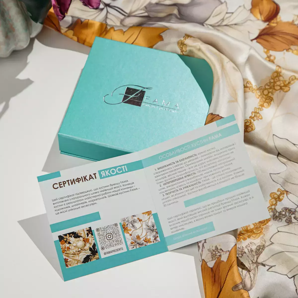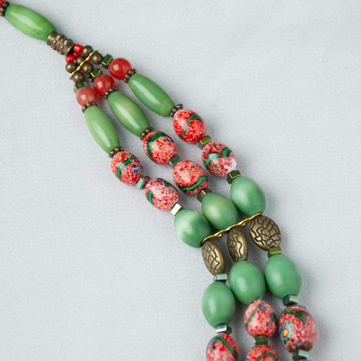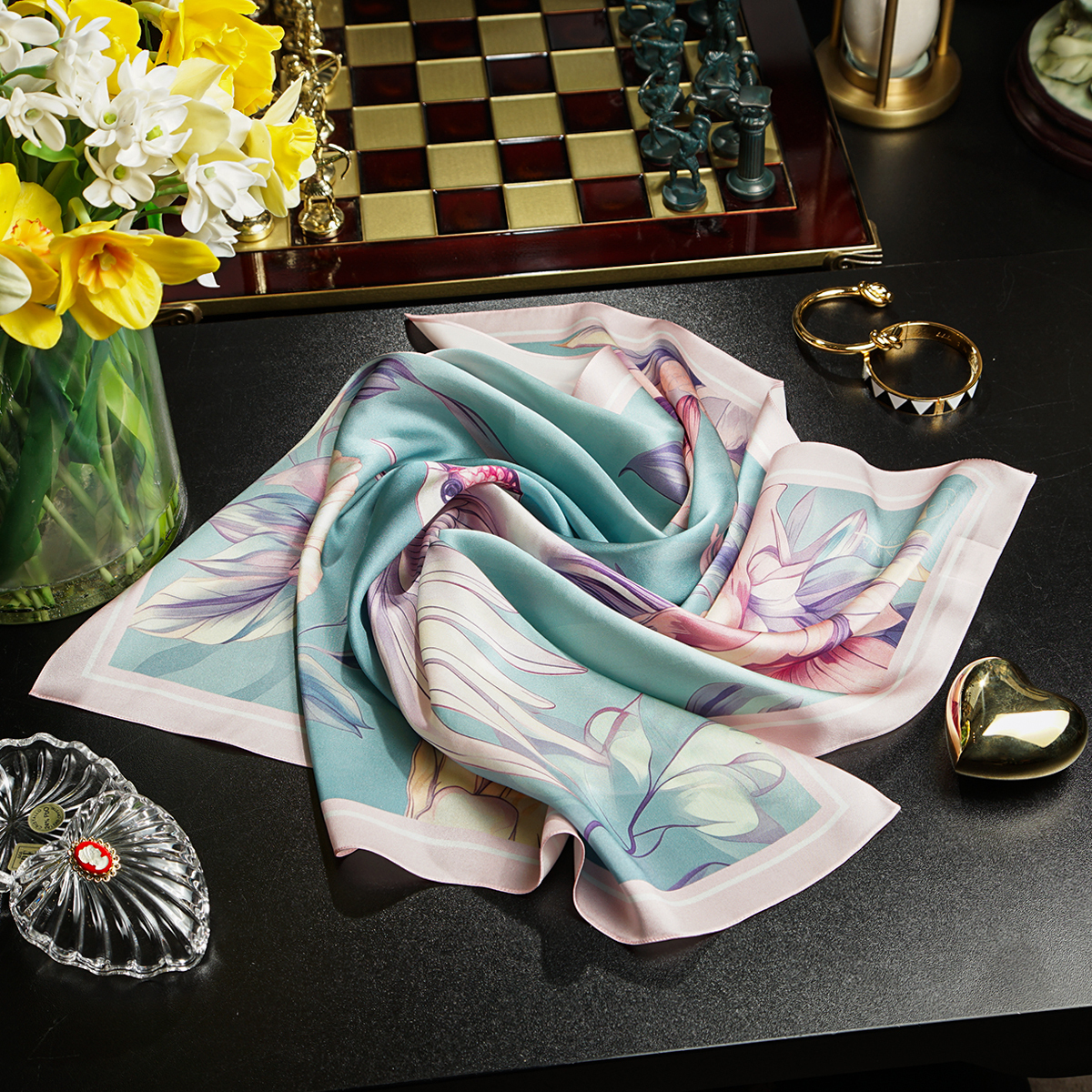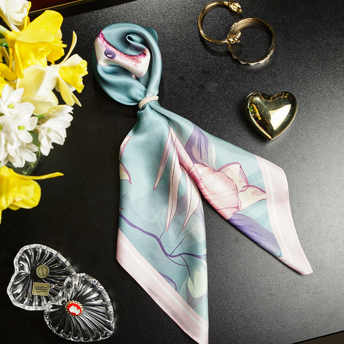Подарочный комплект ожерелье "Загадка" 3-рядное из чешского "богемского" стекла и платок из натурального шелка "Pinky bird" от FAMA