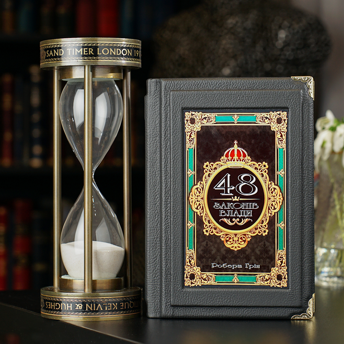 Подарочный комплект песочные часы ручной работы "Tempora Labuntur" от Ross London и книга Роберта Грина "48 законов власти" (на украинском языке)