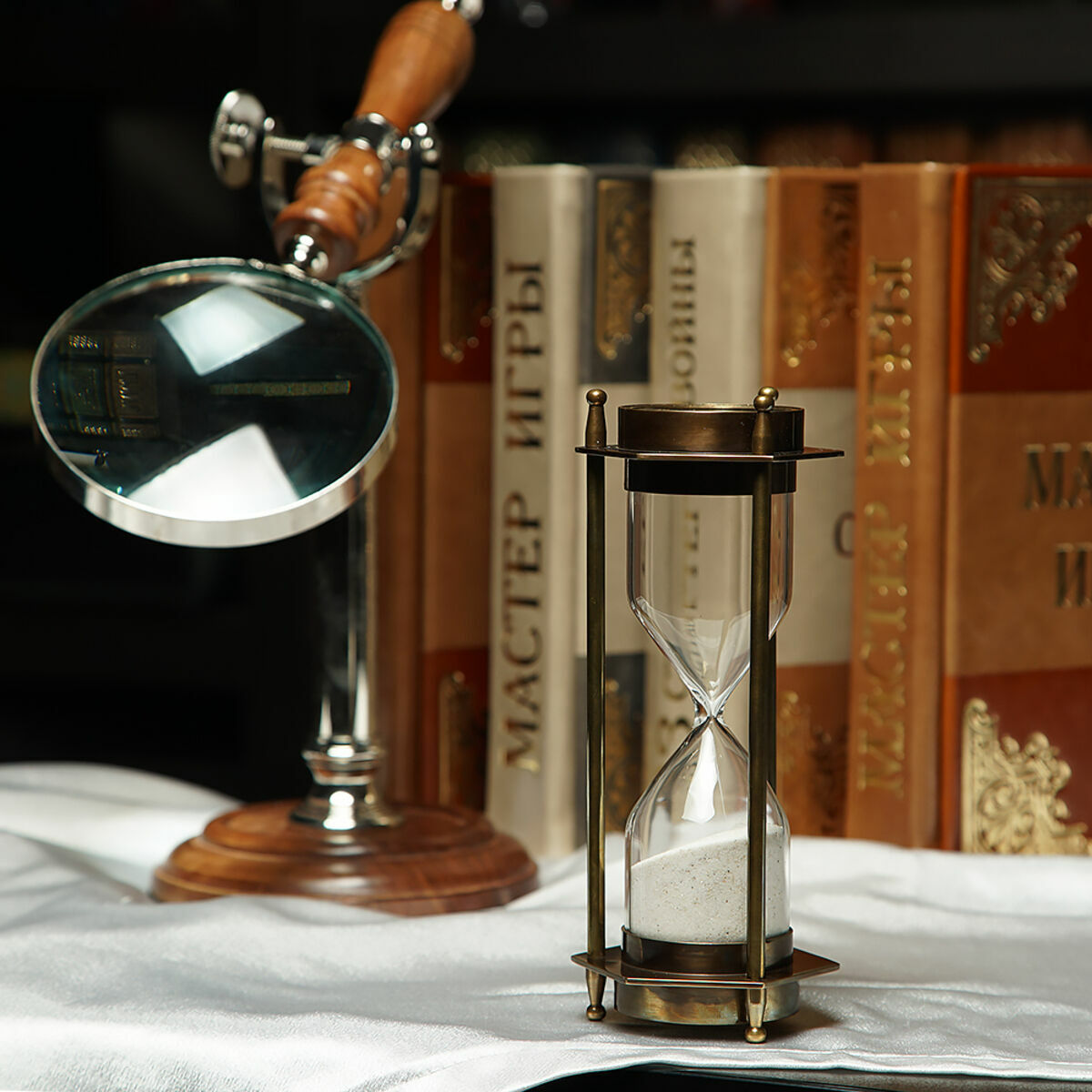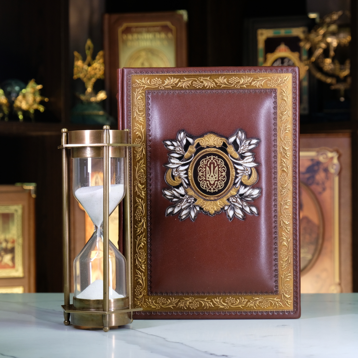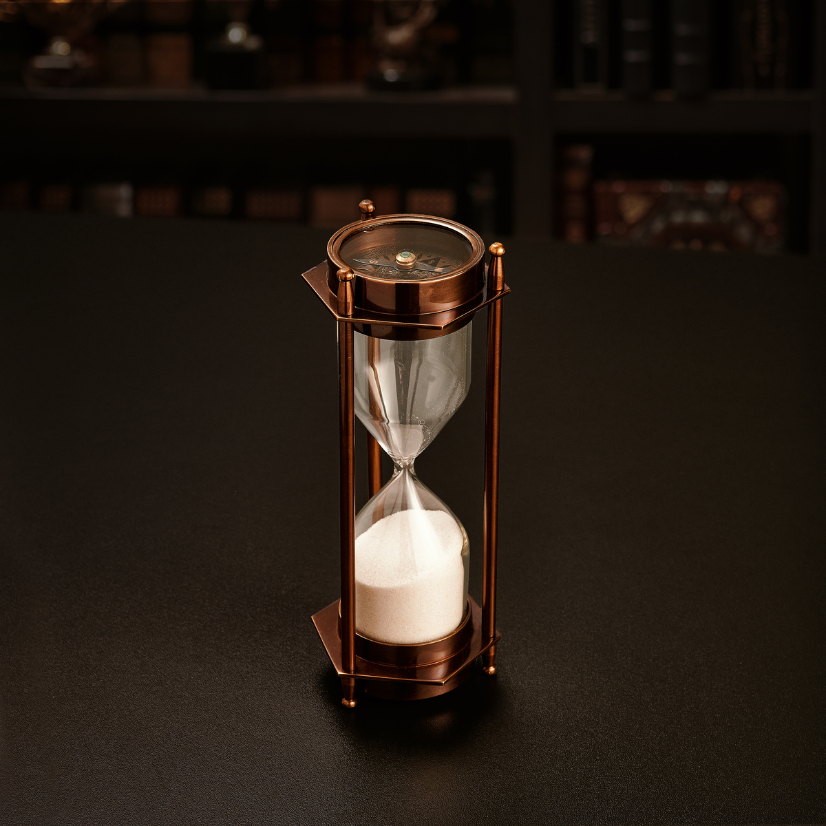 Подарочный комплект ежедневник "Лидер" и винтажные песочные часы с компасом "Загадка времени"