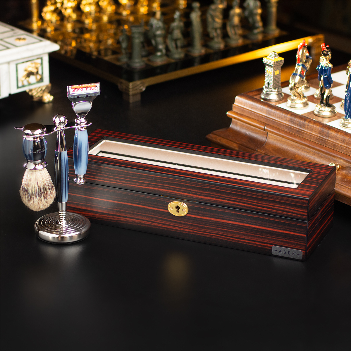 Подарочный комплект шкатулка для неподвижного хранения 6-ти часов от Asen и набор для бритья Truefitt & Hill Edwardian Collection Fusion Blue Opal