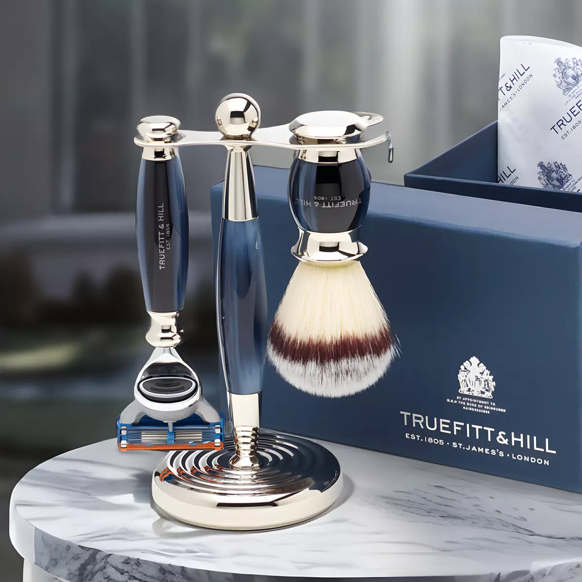 Подарочный комплект шкатулка для хранения часов "Parker" от Asen с автоподзаводом и набор для бритья Truefitt & Hill Edwardian Collection Fusion Blue Opal