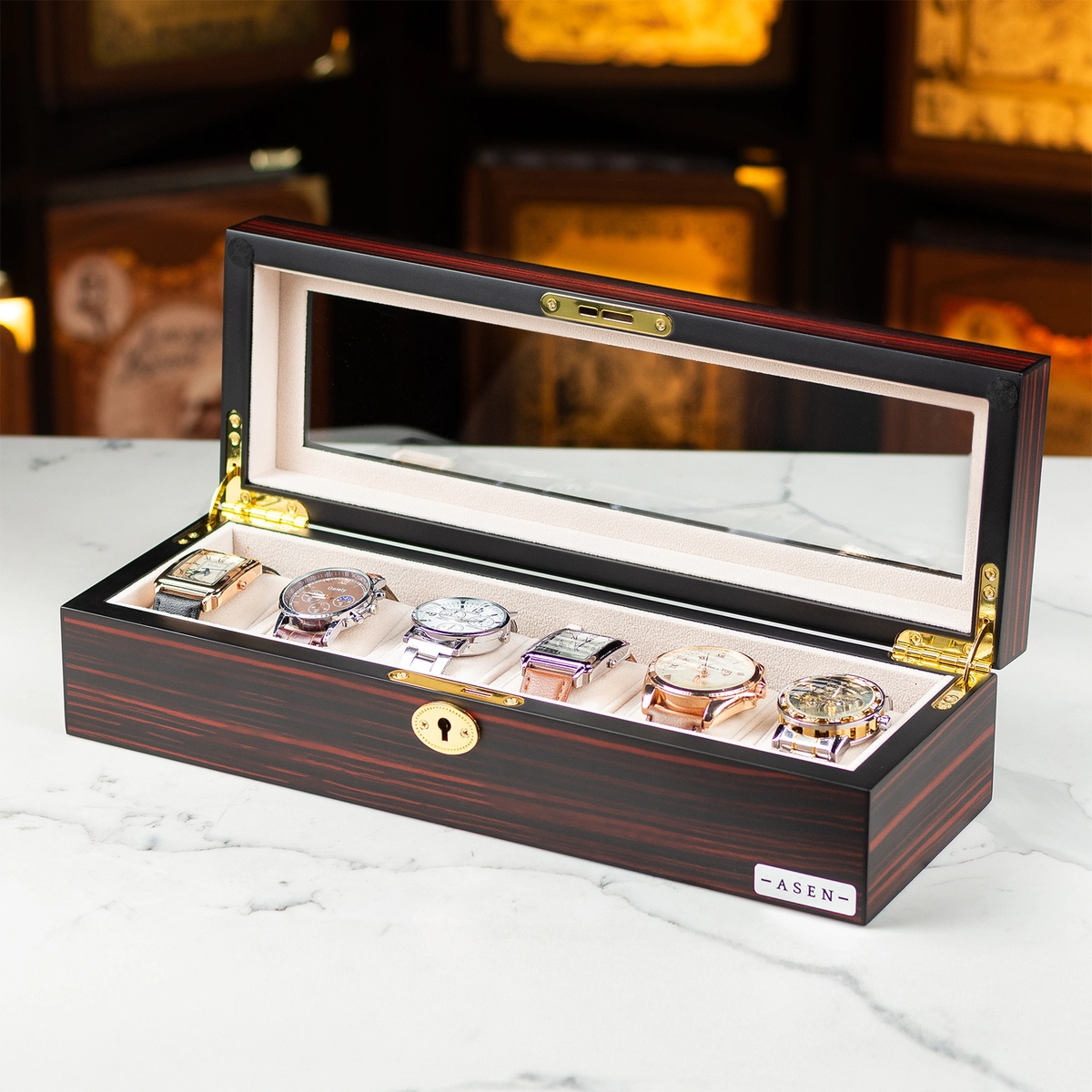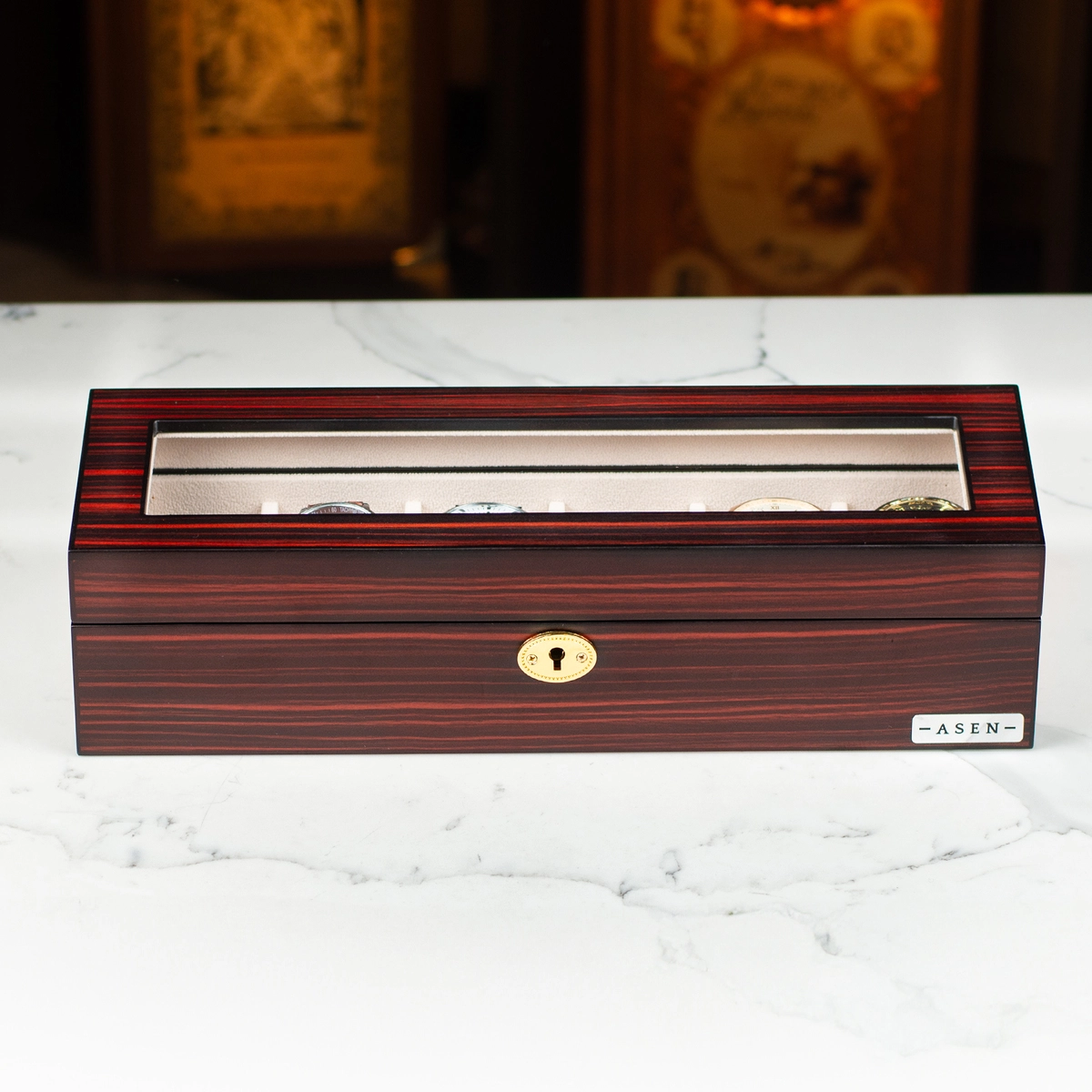 Подарочный комплект шкатулка для неподвижного хранения 6-ти часов от Asen и набор для бритья Truefitt & Hill Edwardian collection Fusion Horn