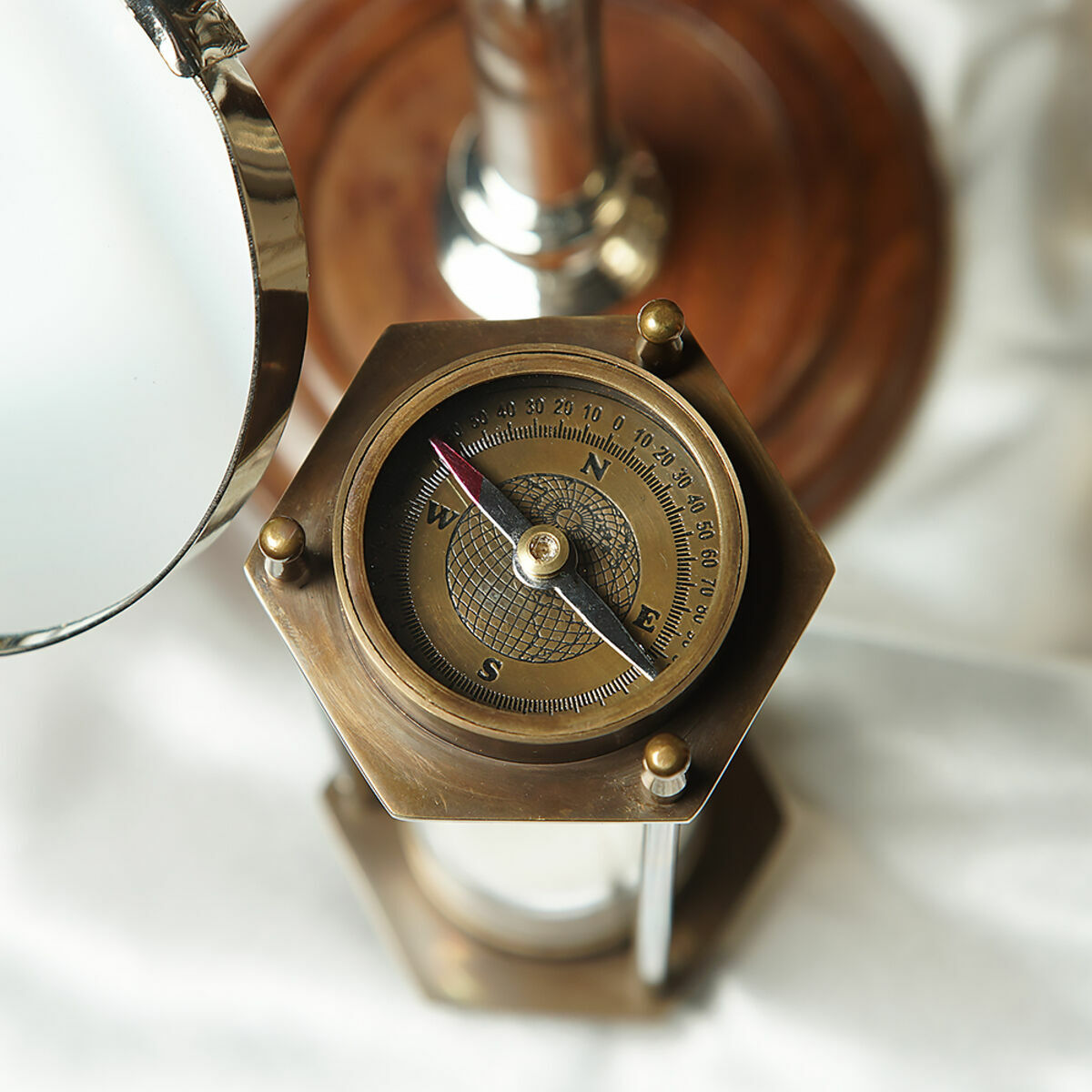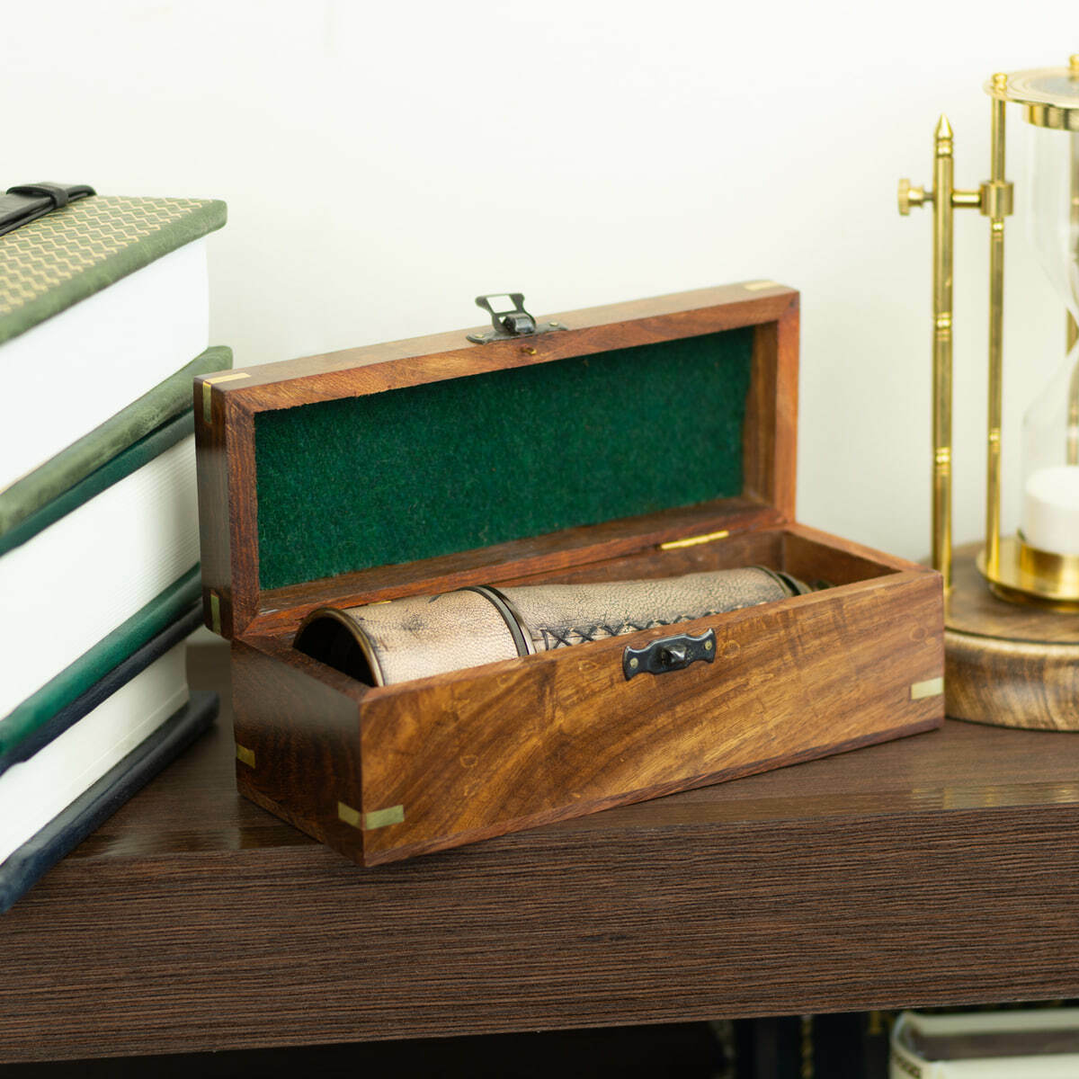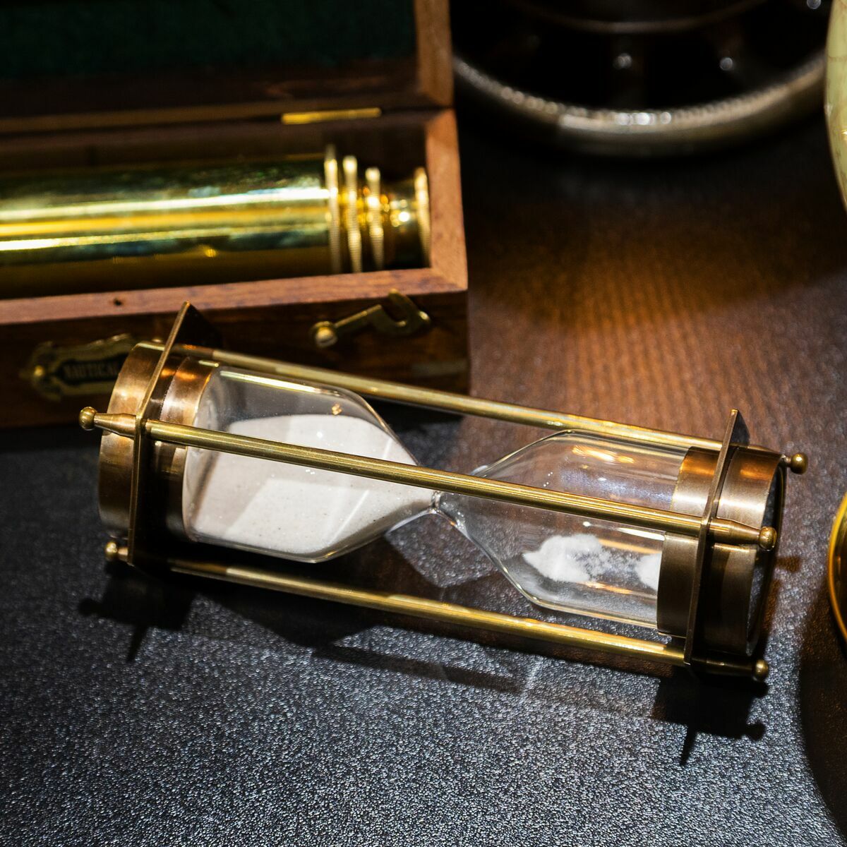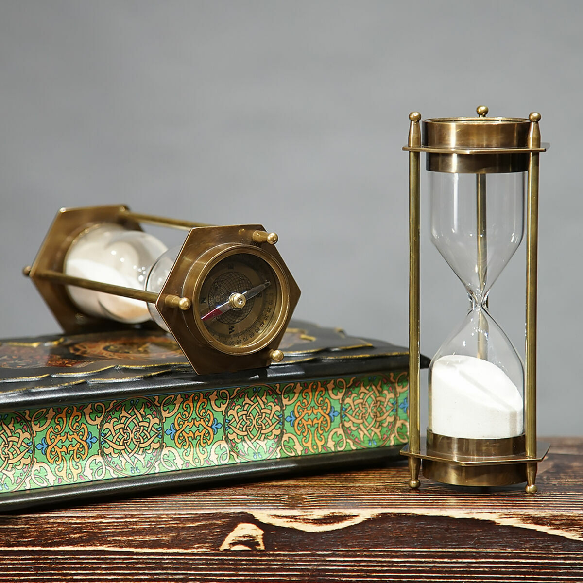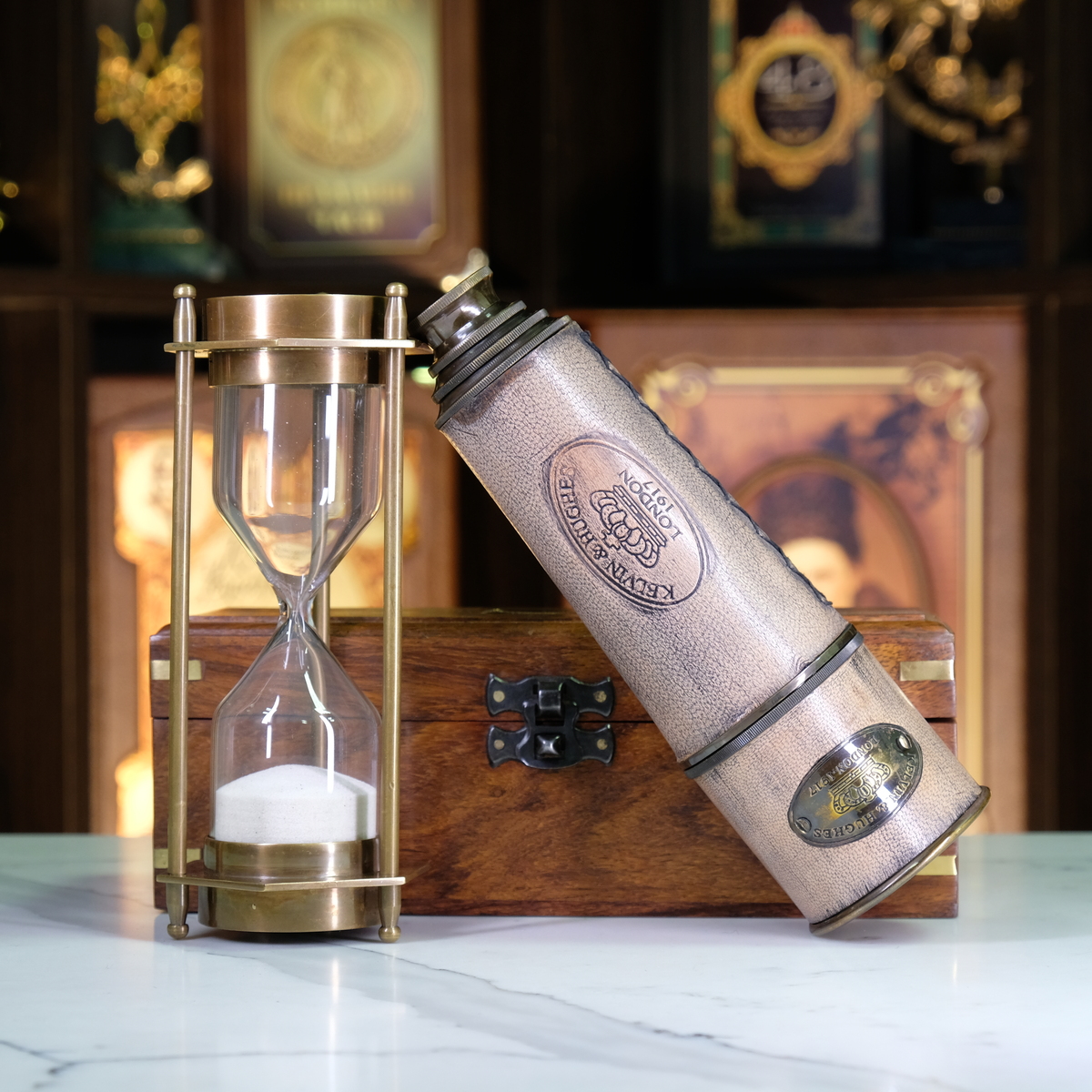 Подарочный комплект винтажная подзорная труба "Sea voyage London 1917" и винтажные песочные часы с компасом "Загадка времени"