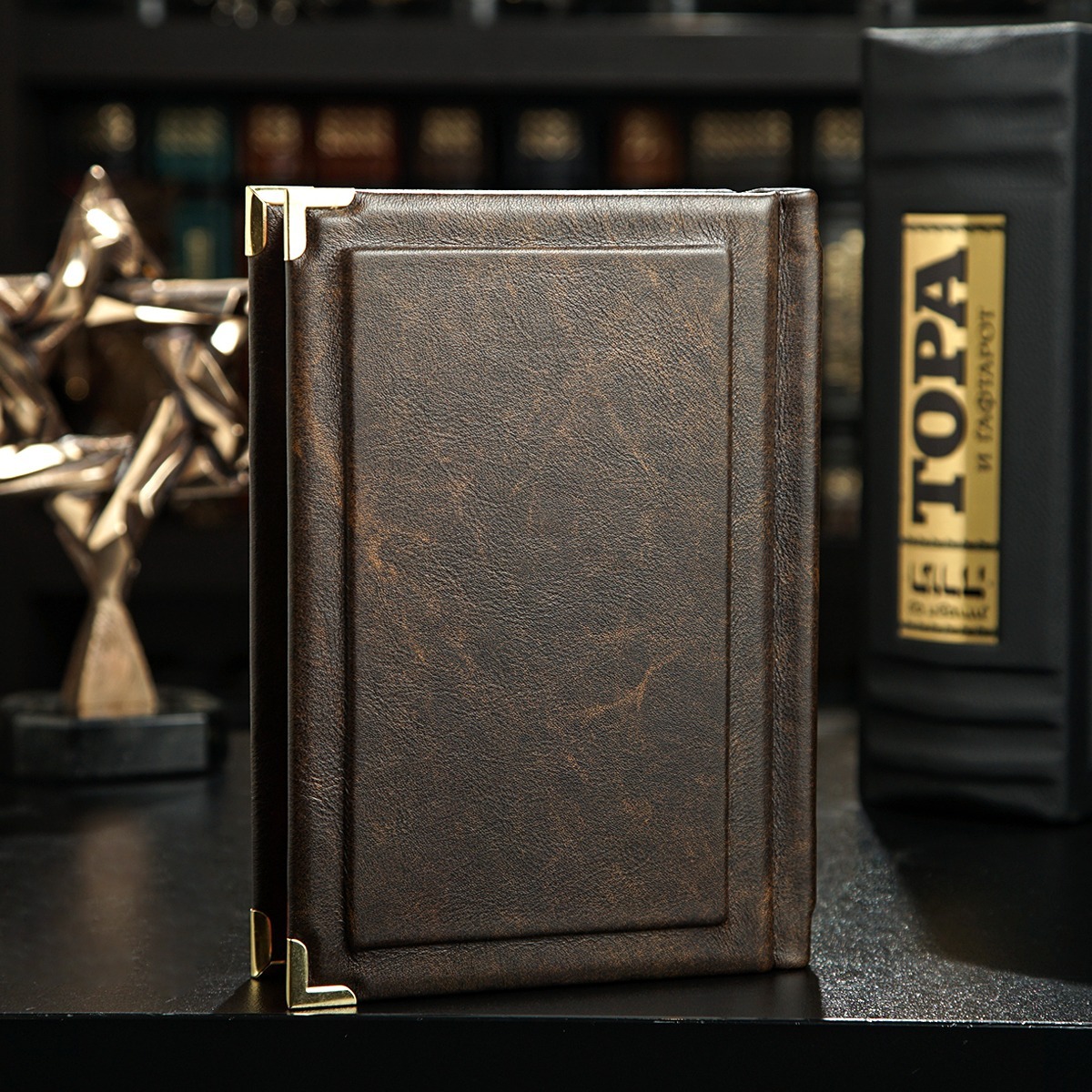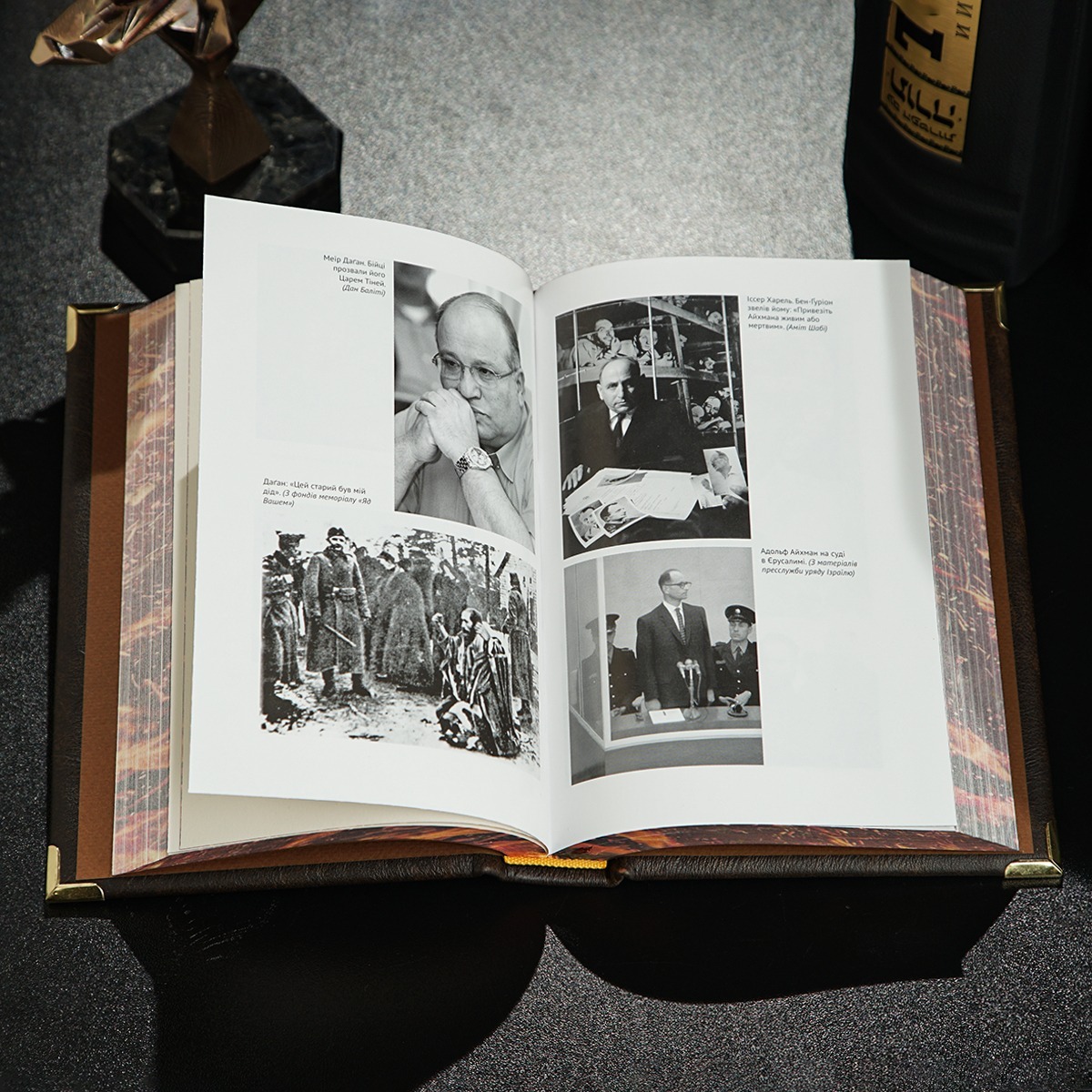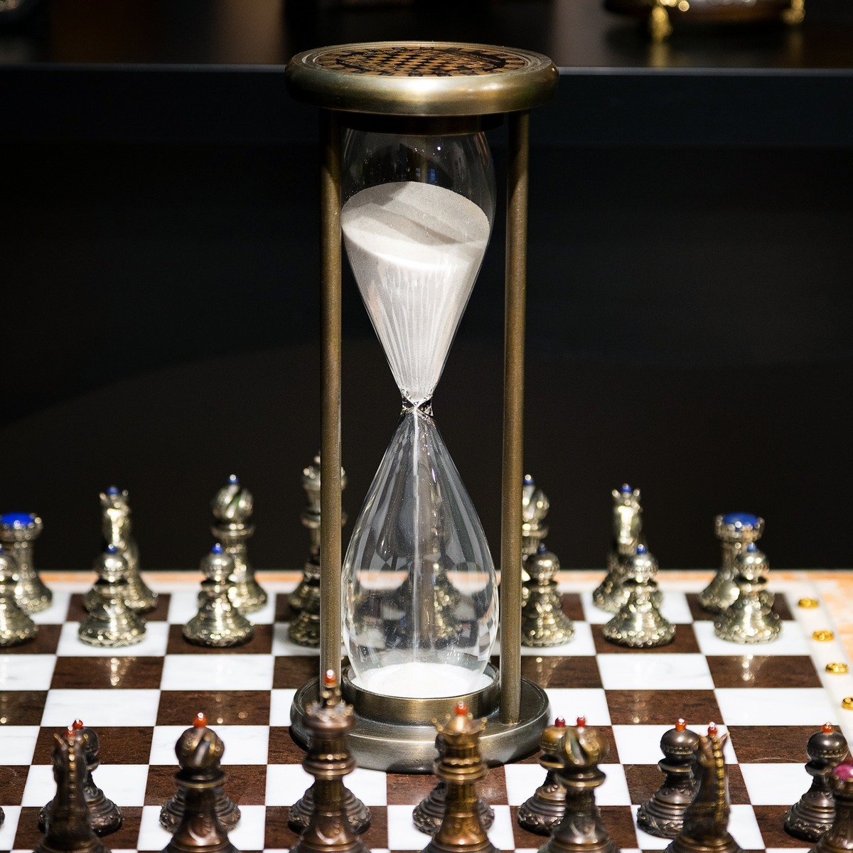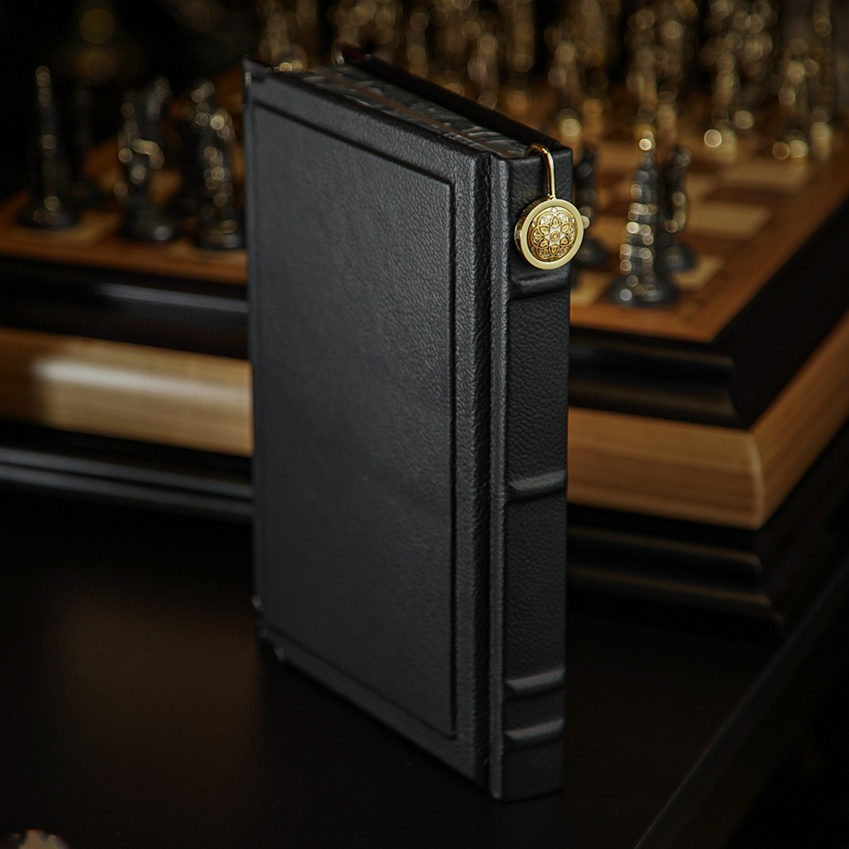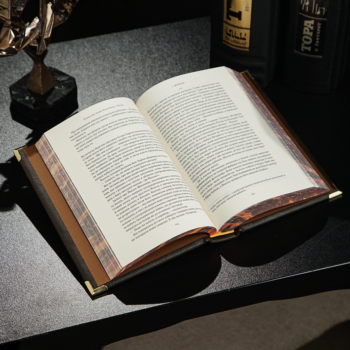 Подарочный комплект - винтажные песочные часы "Время шахмат", закладка для книги с восточным орнаментом от Anframa и книга в кожаном переплете "Моссад. Самые выдающиеся операции израильской разведки", Михаэль Бар-Зохар, Ниссим Мишаль (на украинском языке)