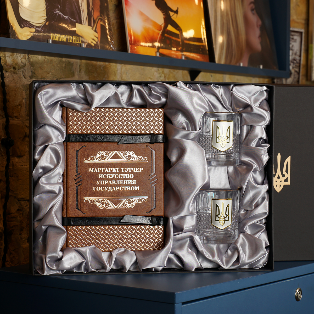 Подарочный комплект – Издание «Искусство управления государством», Маргарет Тэтчер и Набор для виски "Тризуб" латунь пандора с позолотой и серебром (2 бокала) от BIANCANEVE