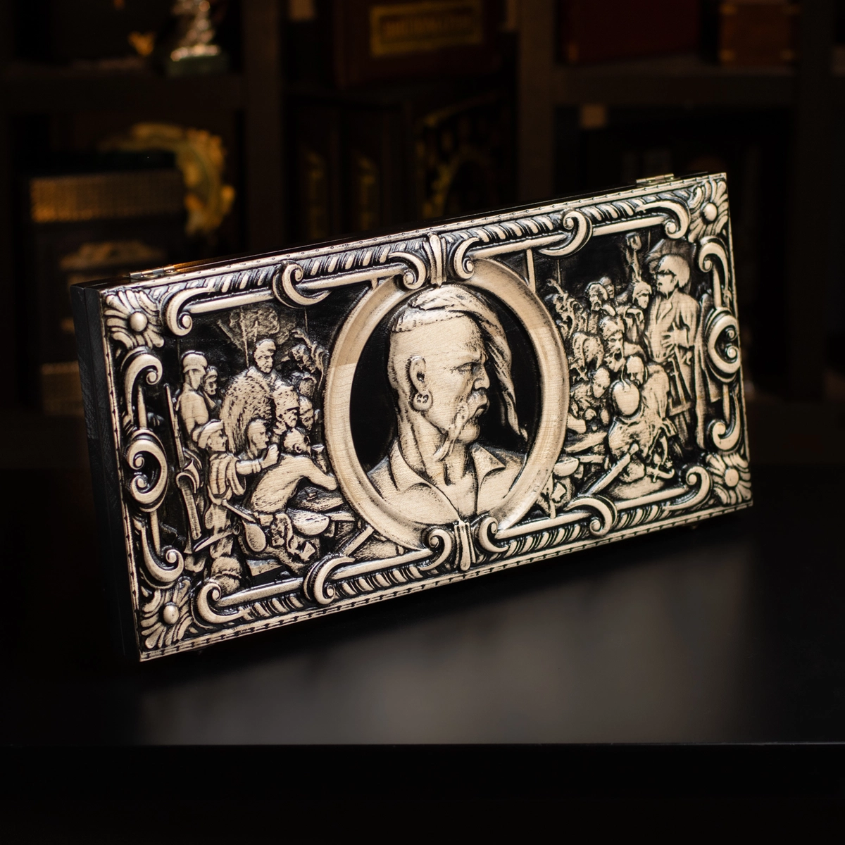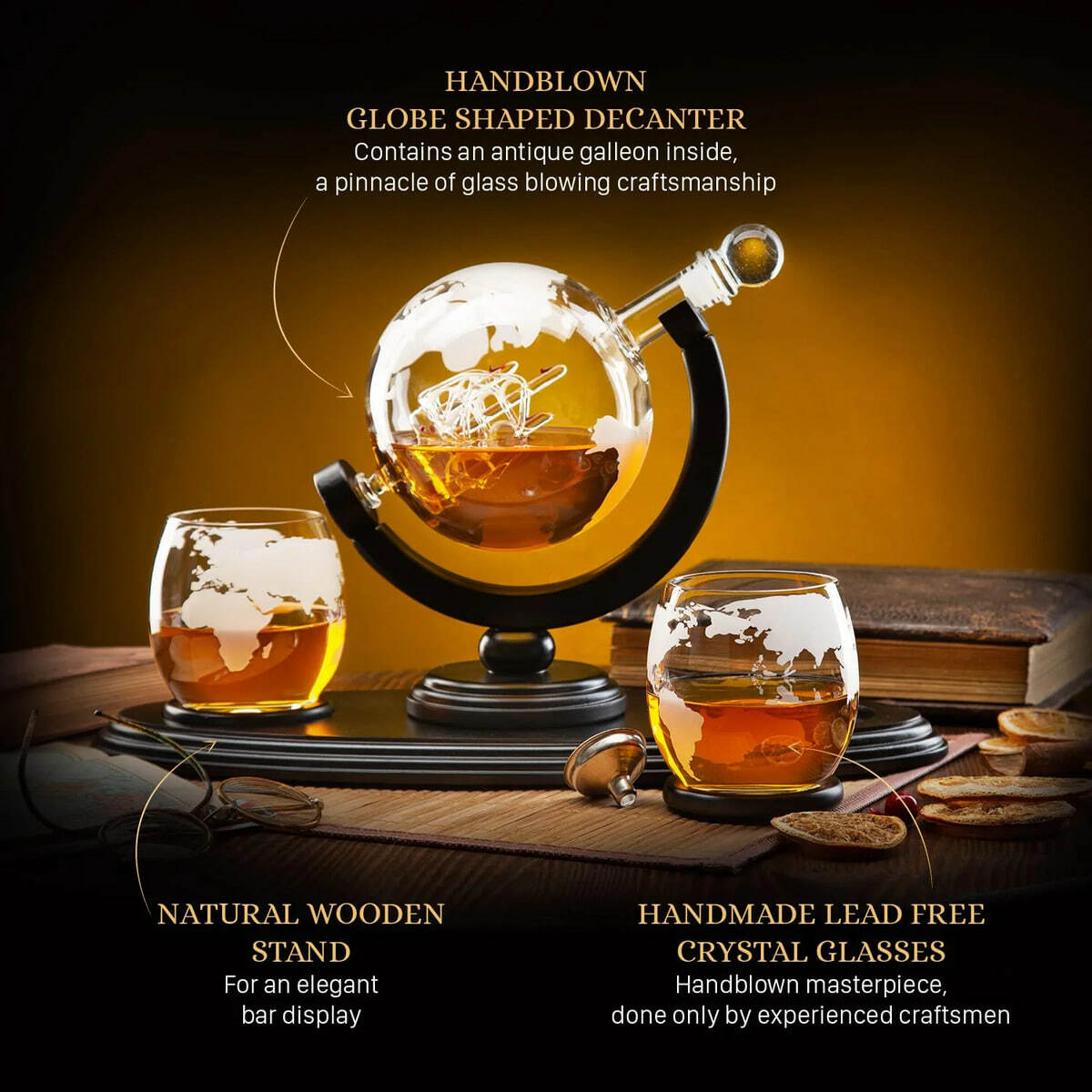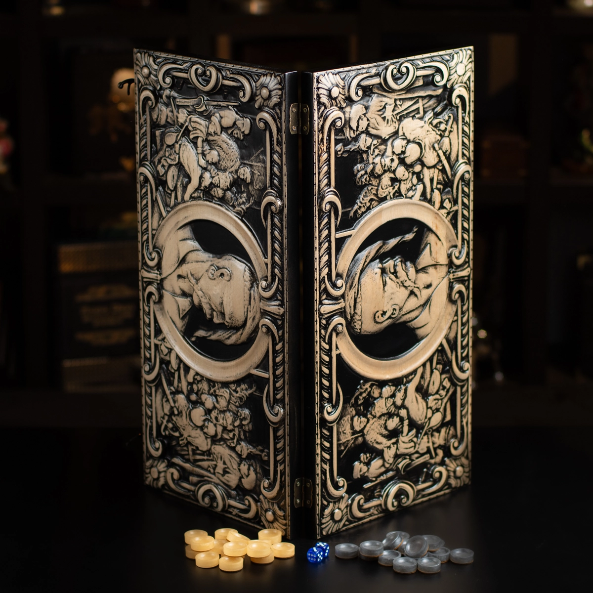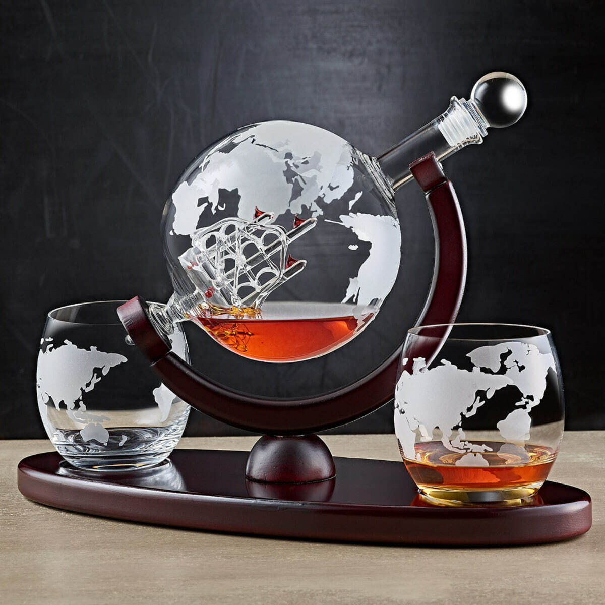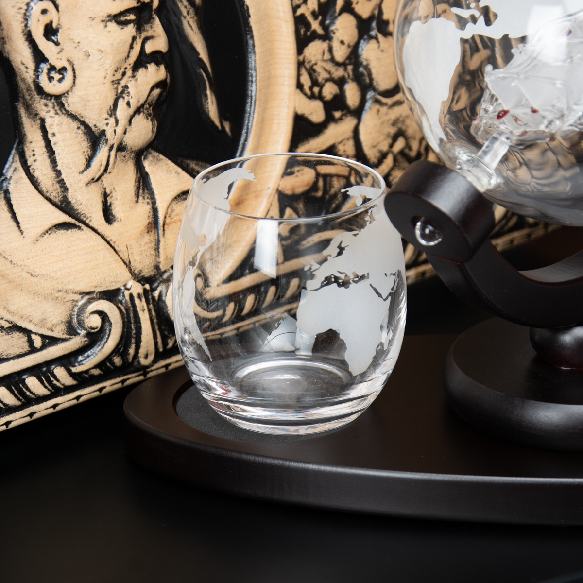 Подарочный комплект из деревянных нард "Казак" ручной работы и набора для виски «Globe» от Wine Enthusiast