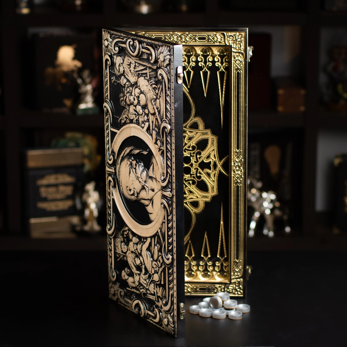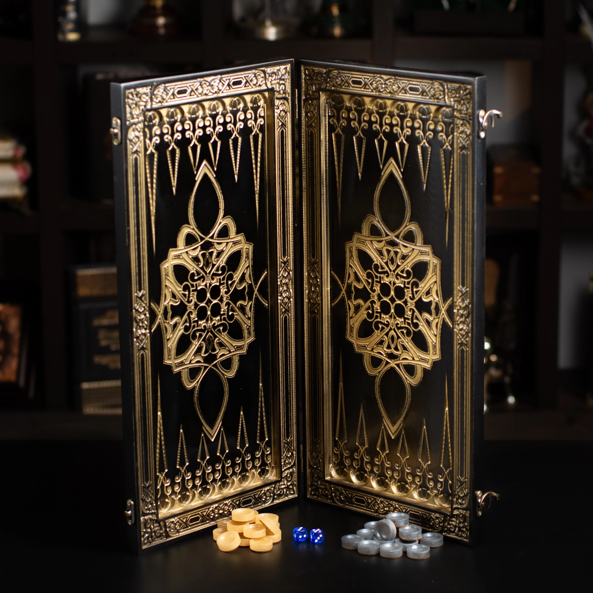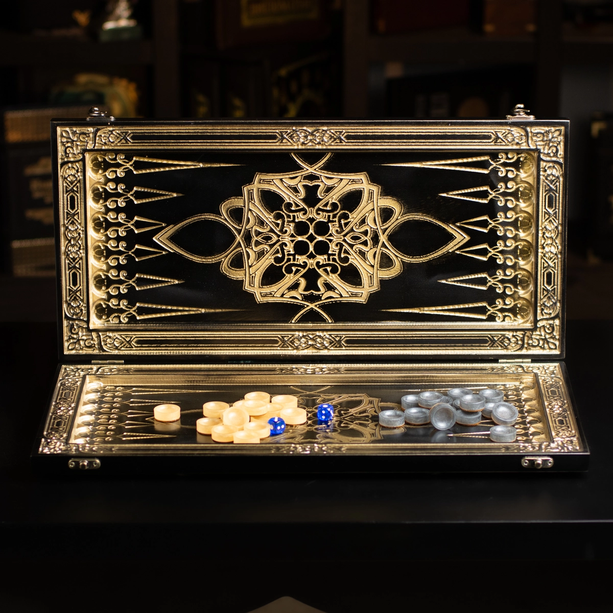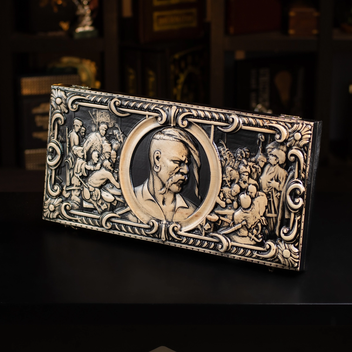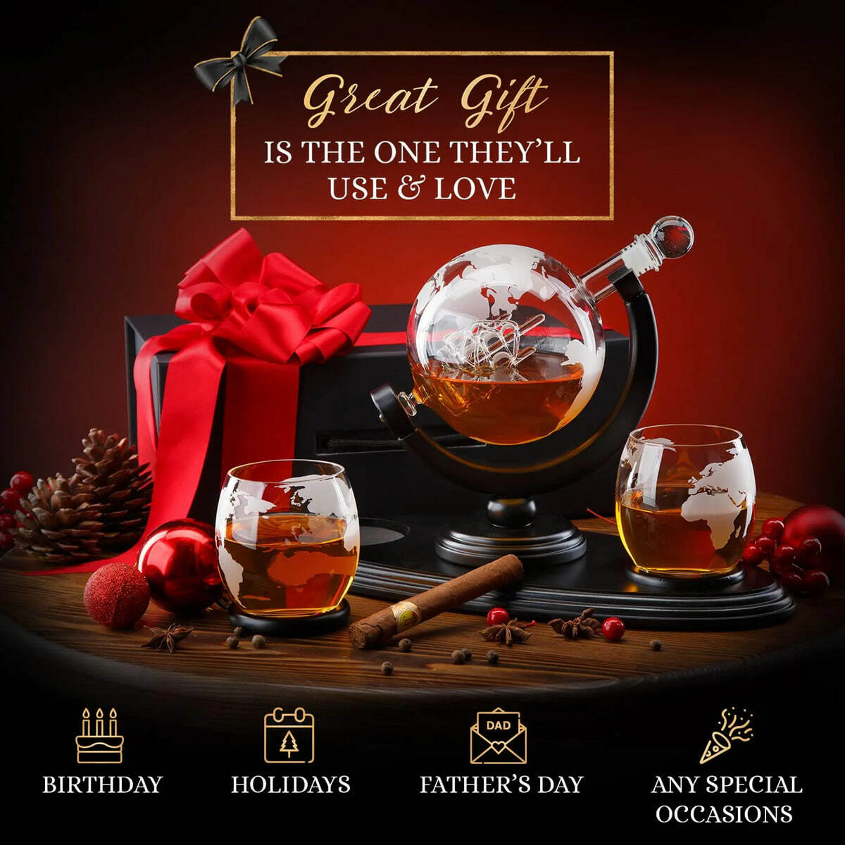 Подарочный комплект из деревянных нард "Казак" ручной работы и набора для виски «Globe» от Wine Enthusiast