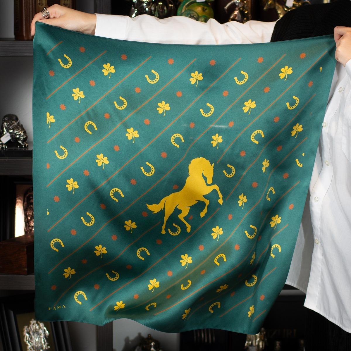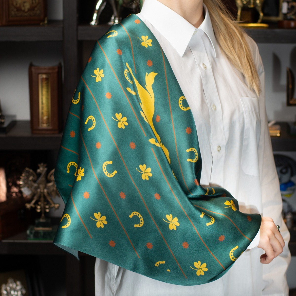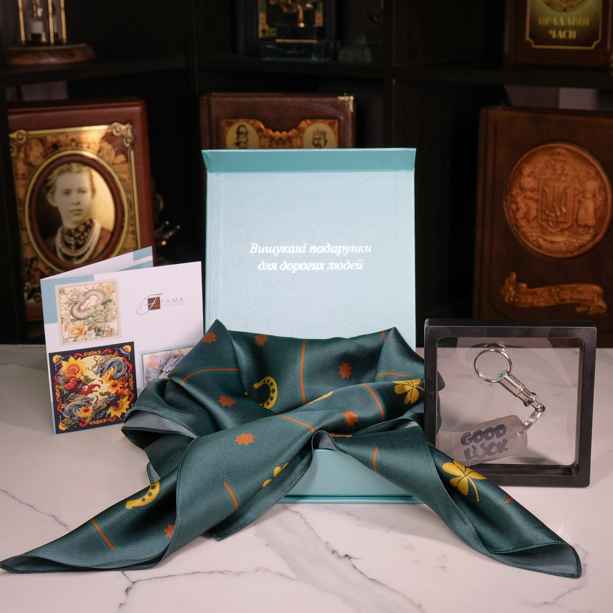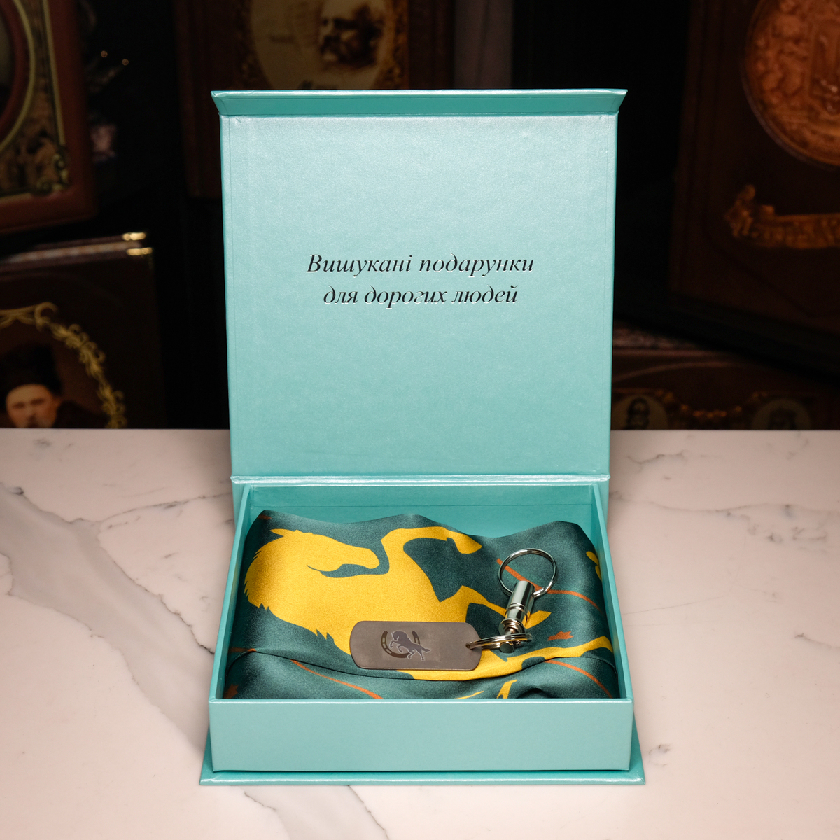 Подарочный комплект из платка "Символ удачи" от FAMA и брелока "Конь: год удачи 2026" от Calti