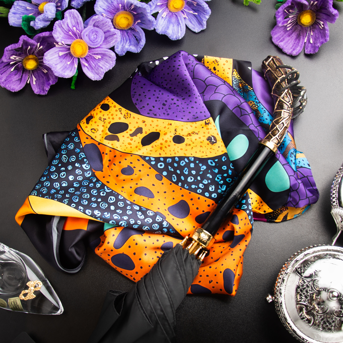 Подарочный комплект из зонта «Tarantula» от Pasotti и платка «Змеиный вихрь» от FAMA