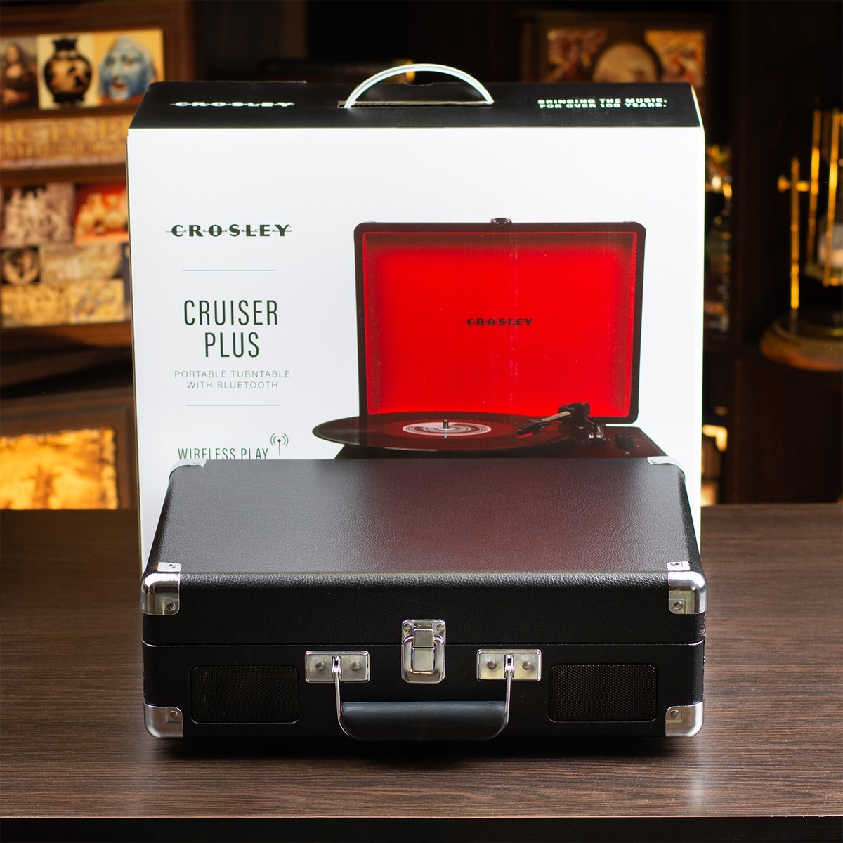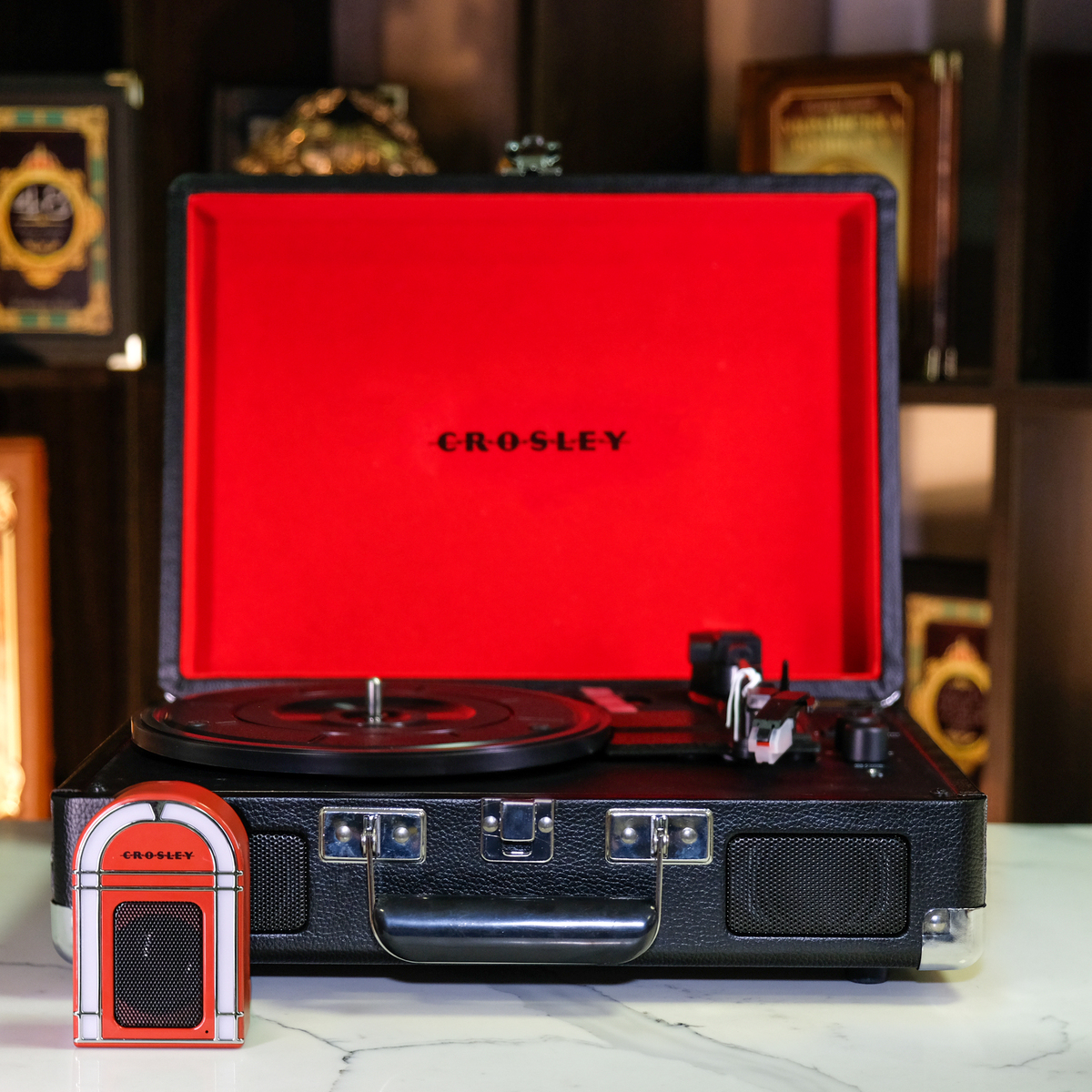 Подарочный комплект из винилового проигрывателя Cruiser Plus Portable Turntable with Bluetooth Out и портативного Bluetooth-динамика Mini Jukebox Red от Crosley